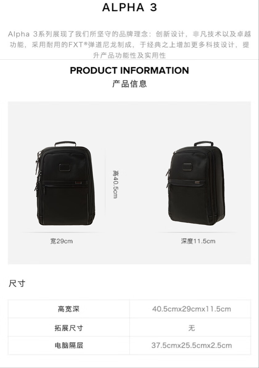 途明(TUMI)男包ALPHA3双肩包商务通勤电脑背包02603581D3 礼物