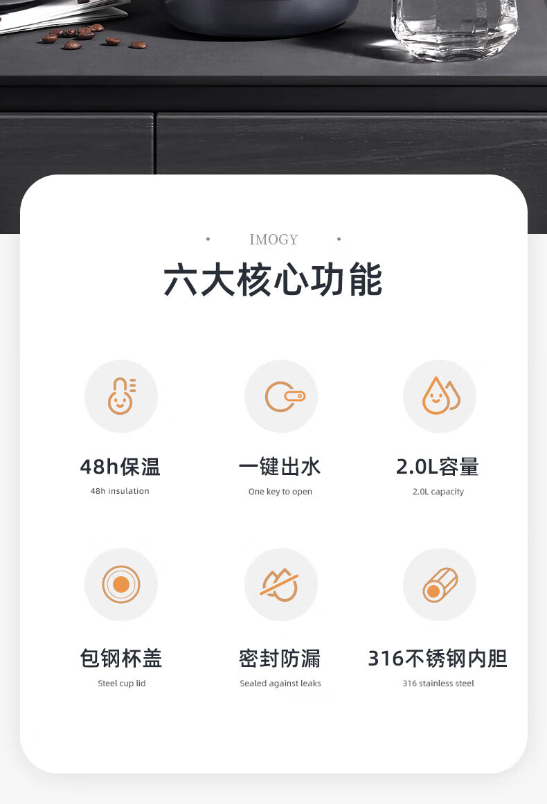 艾曼格(IMOGY)德国艾曼格保温壶家用保温水壶暖壶大容量热水壶316L不锈钢保暖瓶