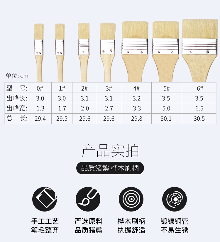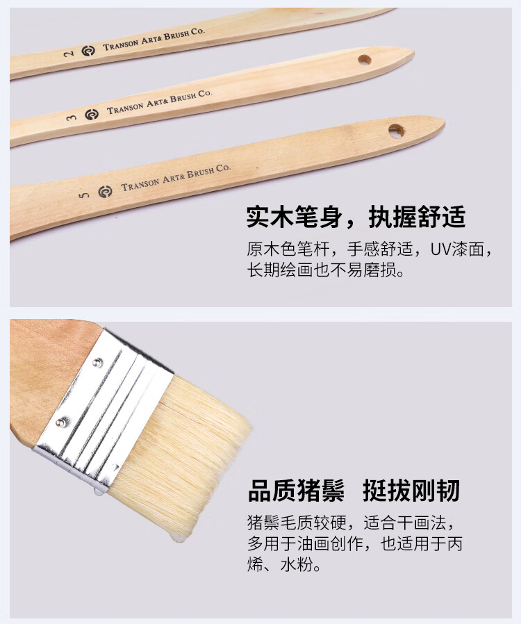 中盛画材 4#水粉油画丙烯颜料水彩画笔套装笔刷猪鬃手绘画墙绘板刷排刷底纹美术彩绘色彩全套排笔单支刷子 速写 马克笔绘画