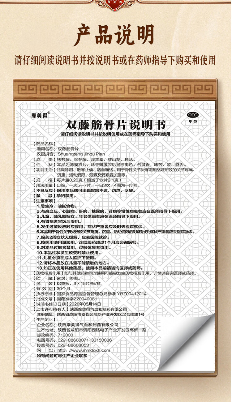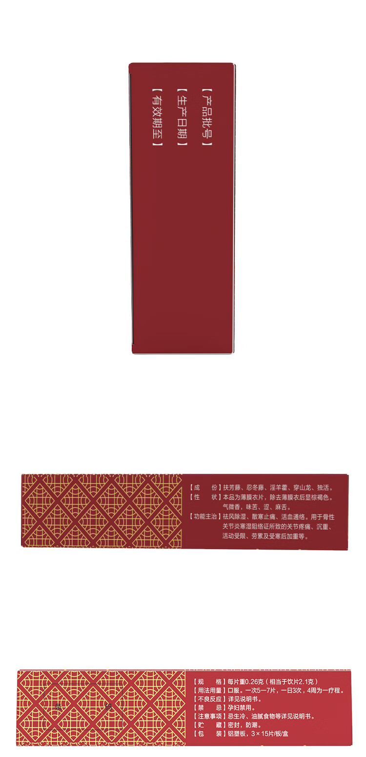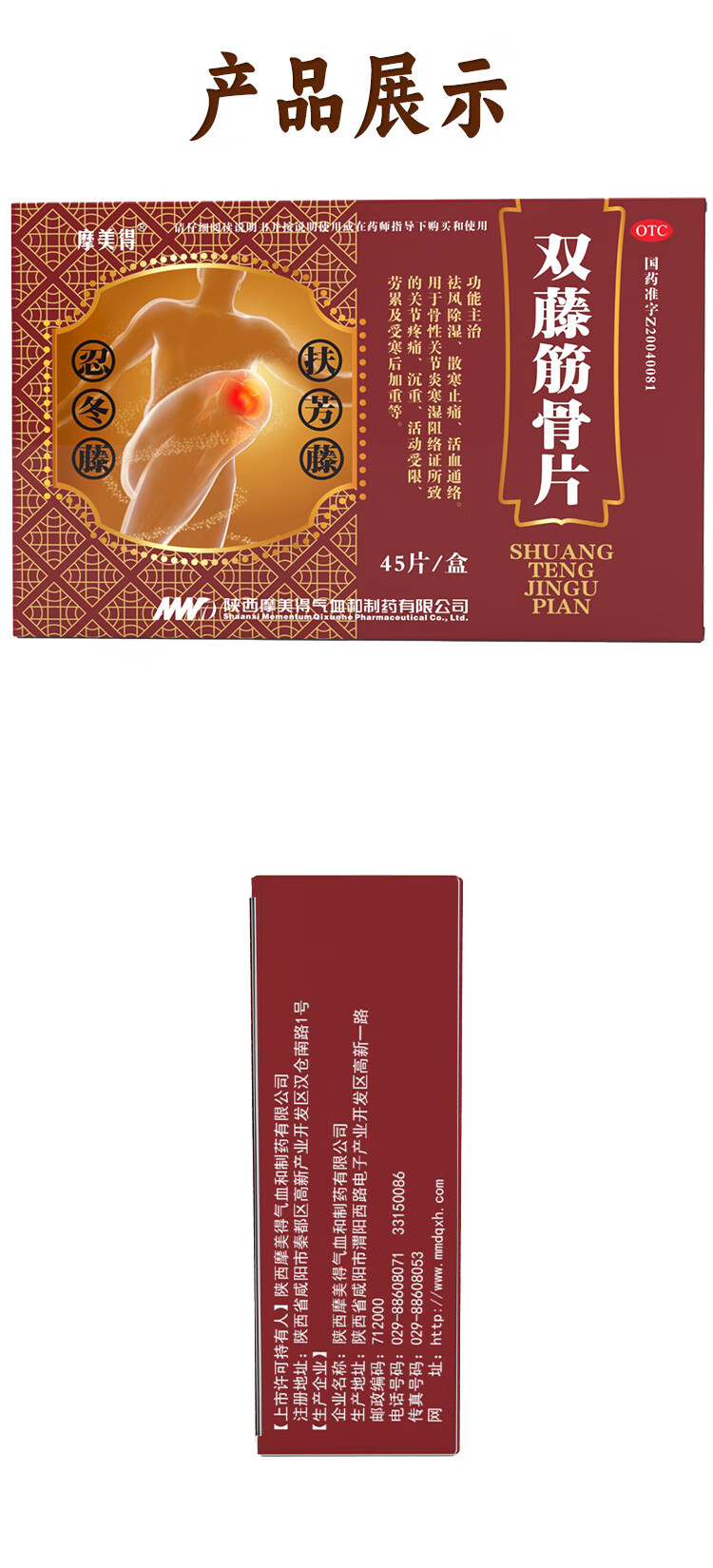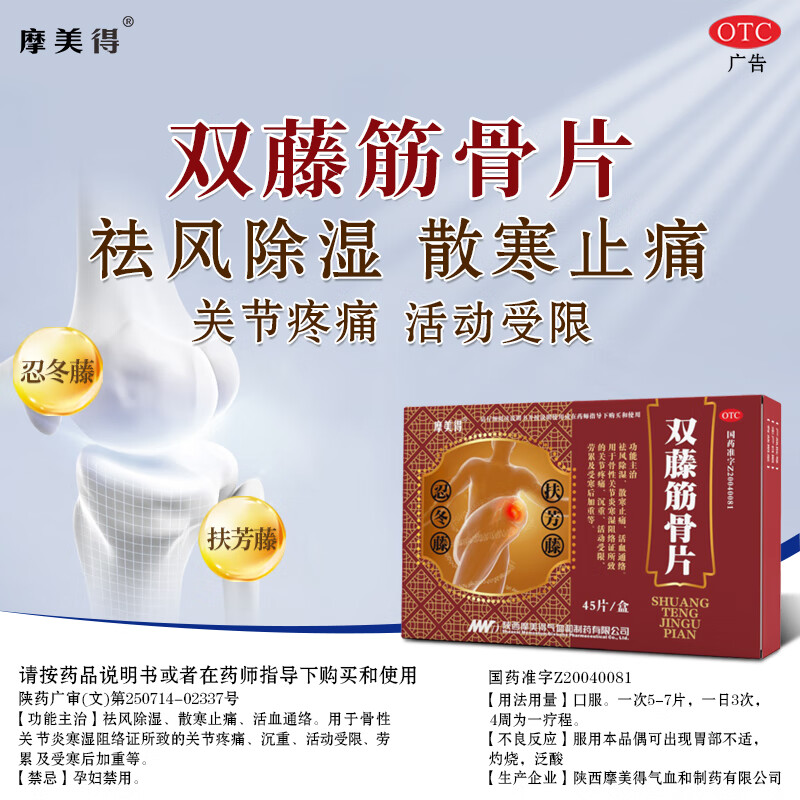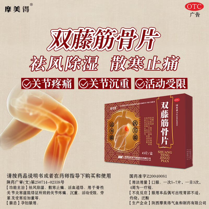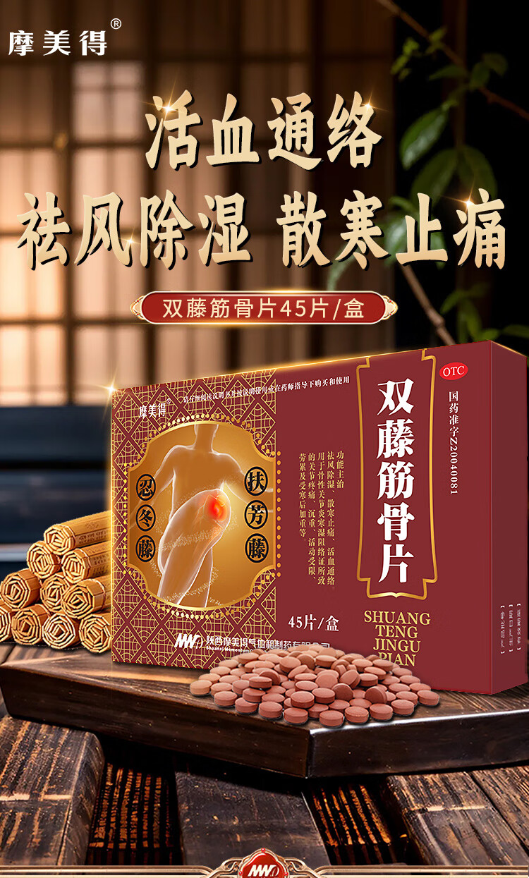 摩美得 双藤筋骨片 0.26g*45片/盒 祛风除湿 散寒止痛 活血通络 骨性关节炎 关节疼痛 劳累 寒湿阻络证