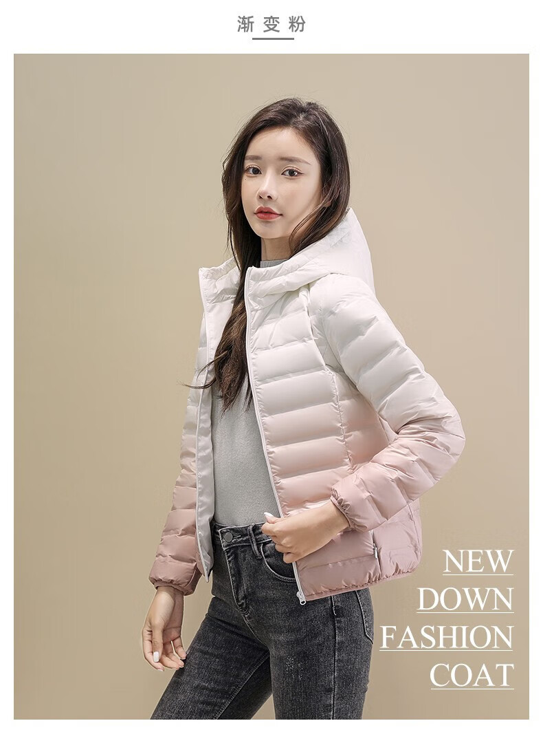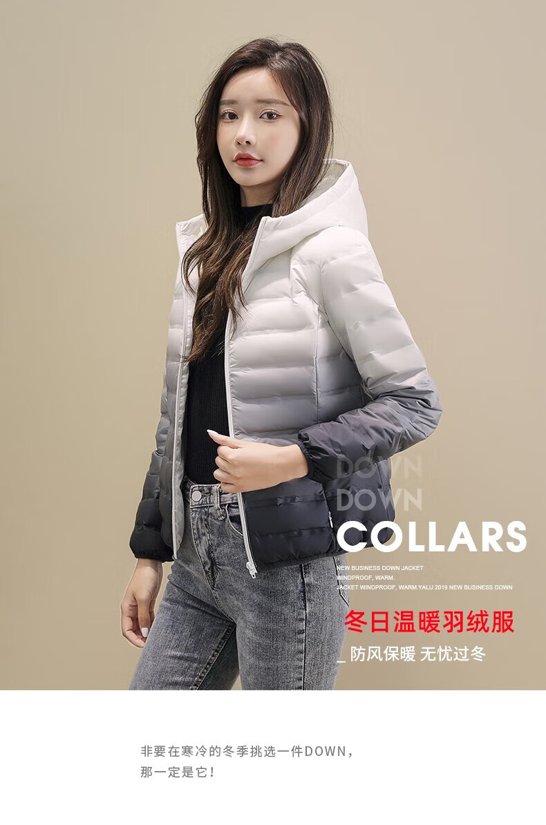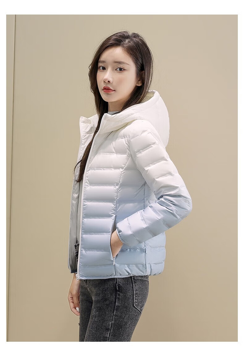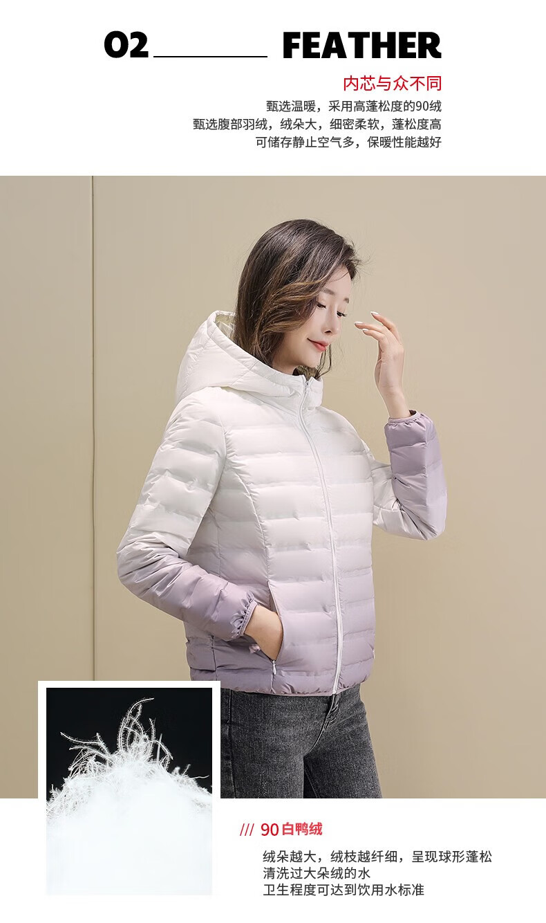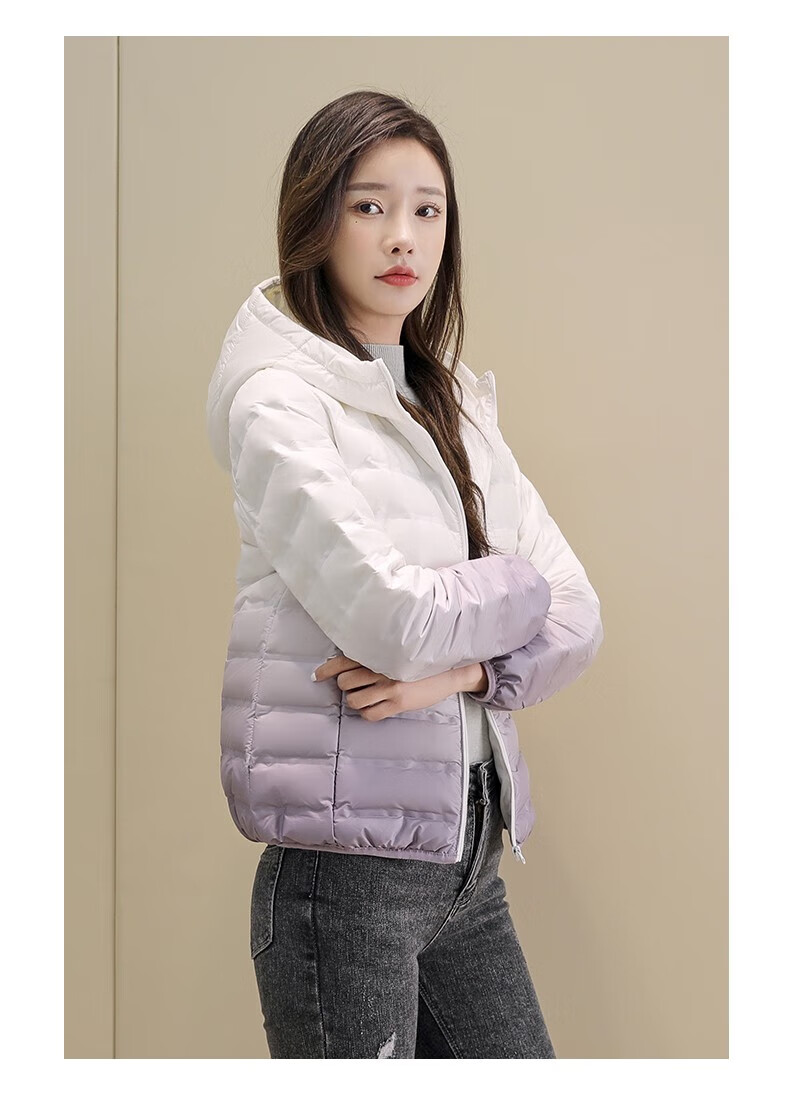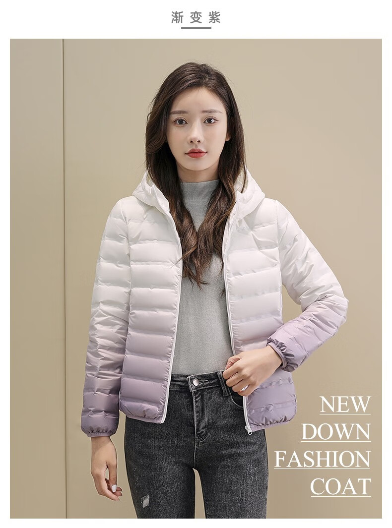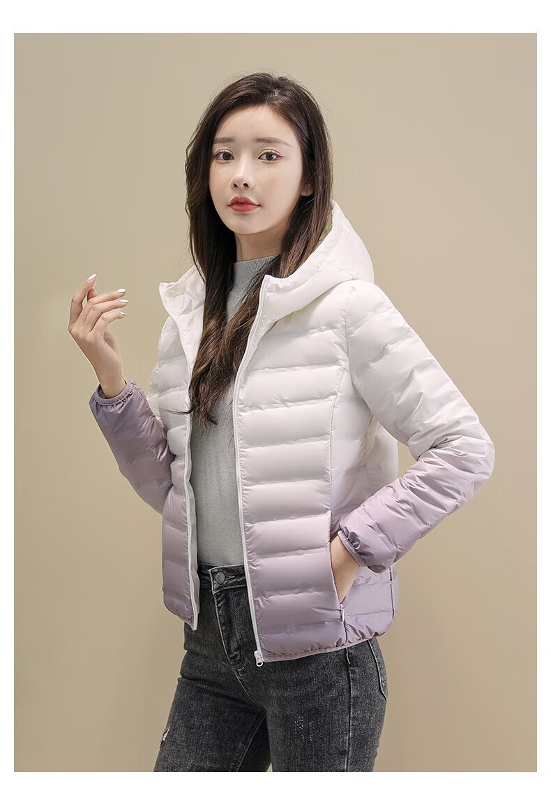 鸭鸭(YAYA)2025冬季新品轻薄羽绒服女短款连帽时尚韩版潮流渐变情侣款外套女 渐变紫色 L