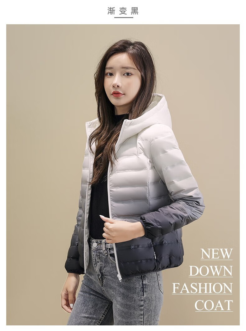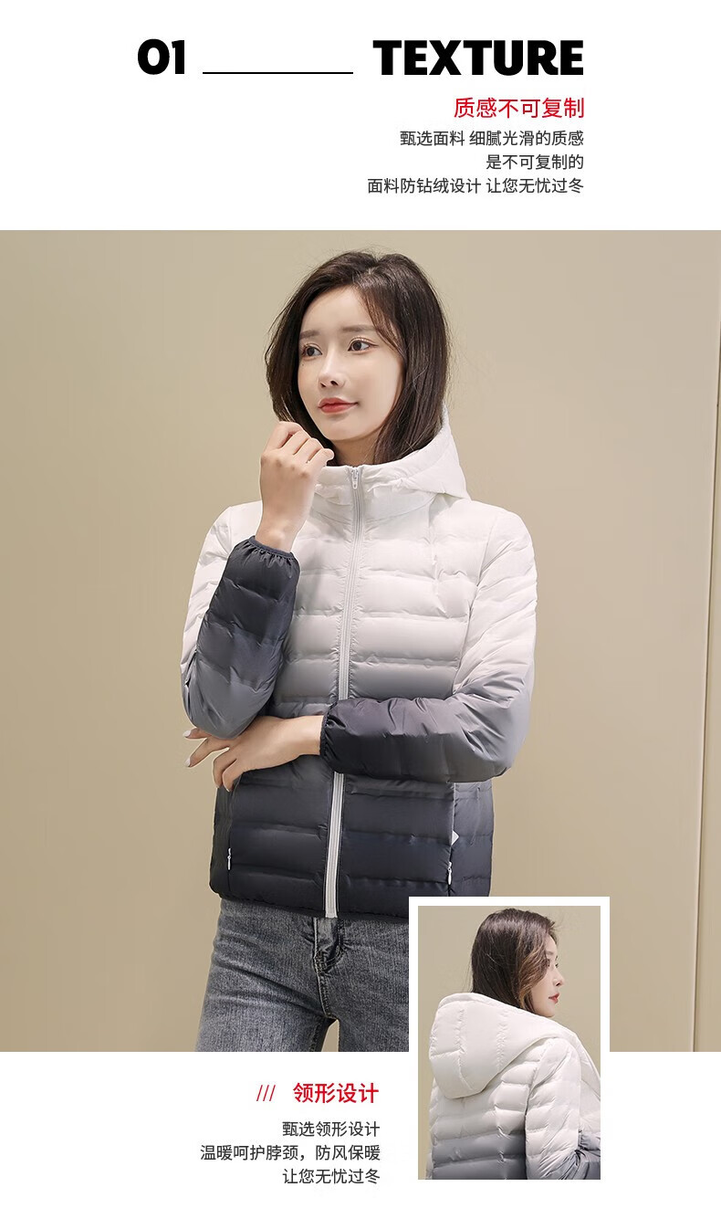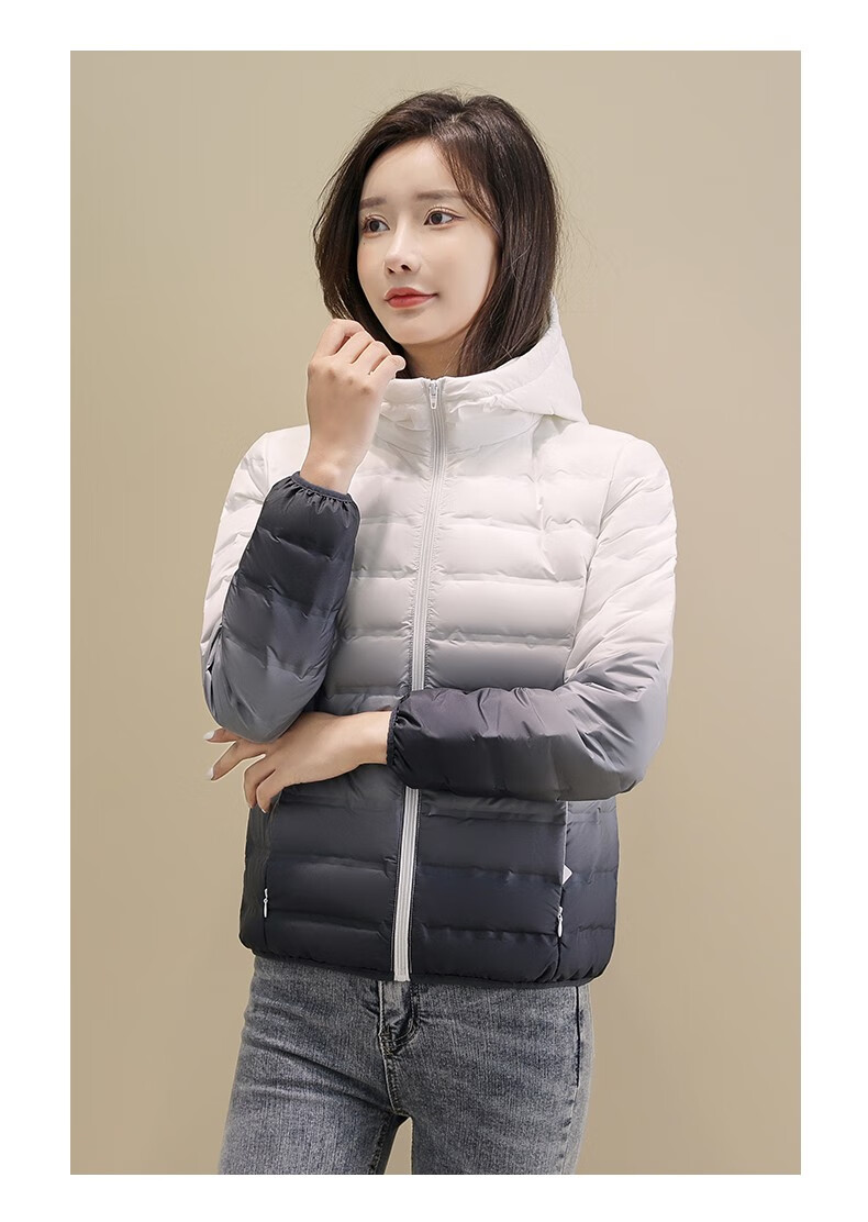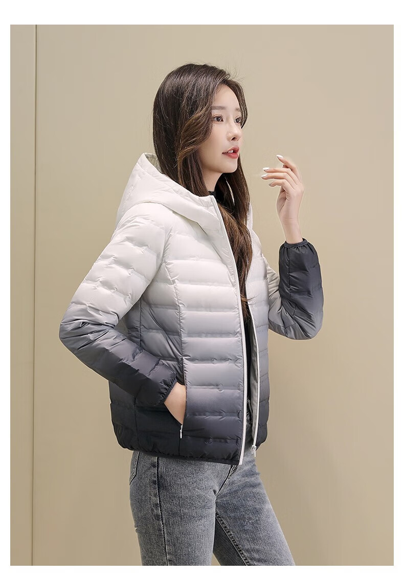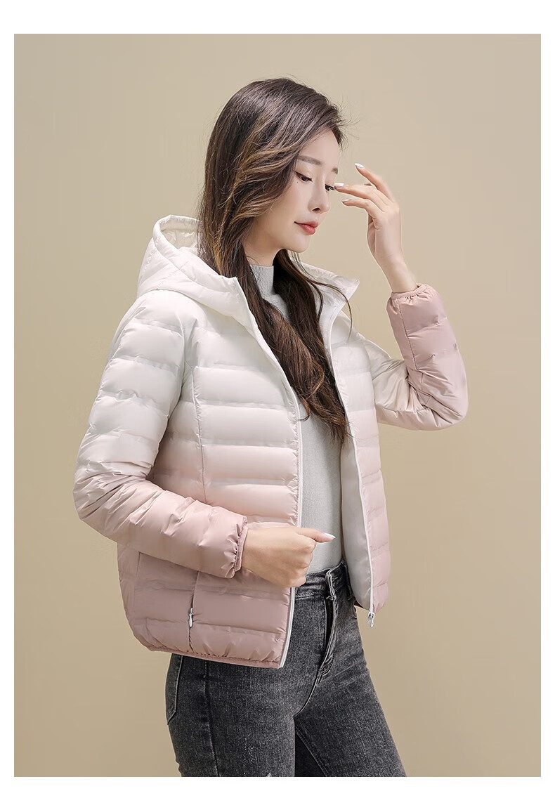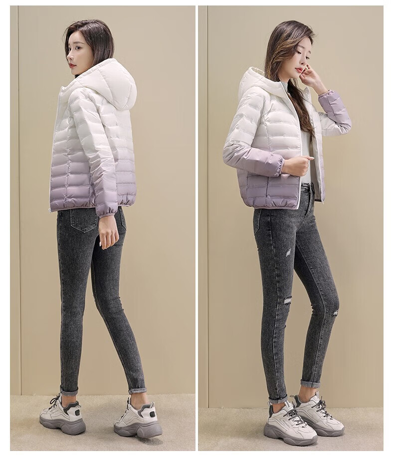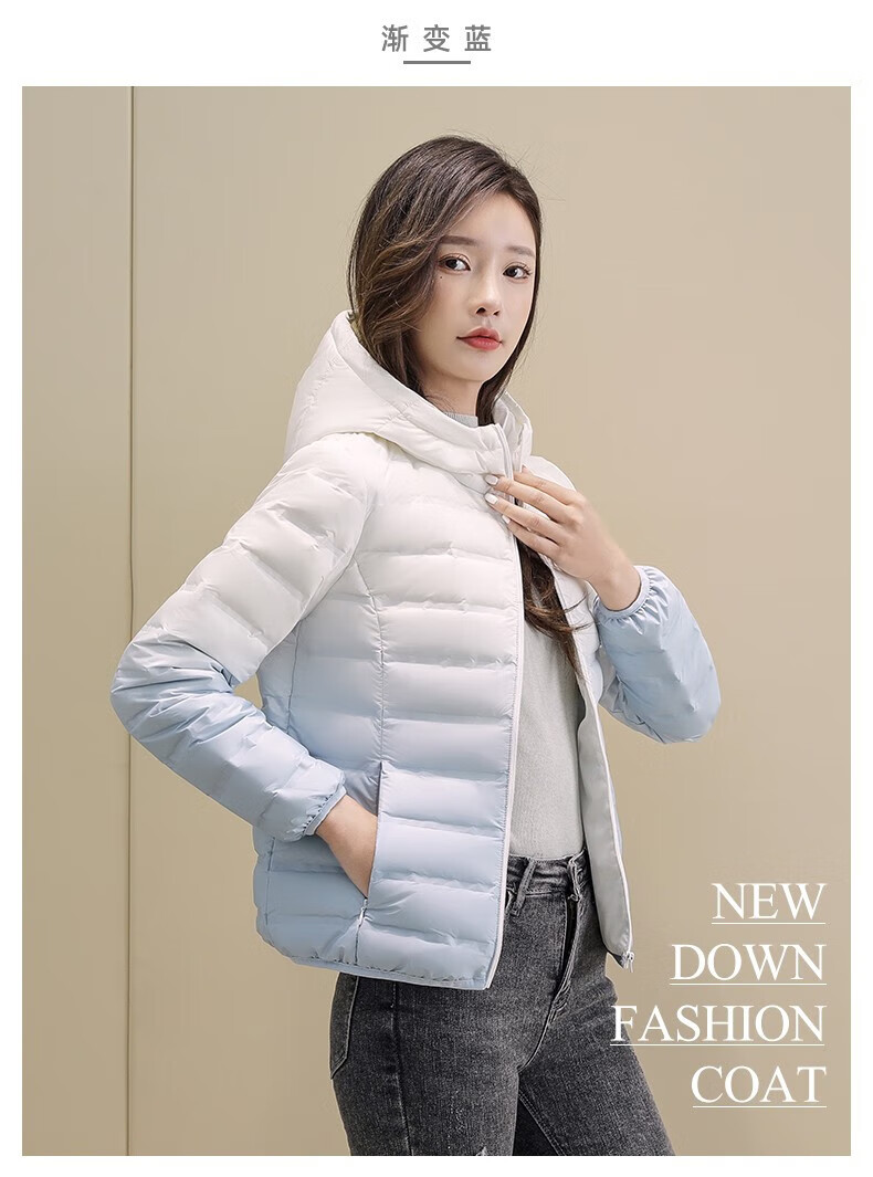 鸭鸭(YAYA)2025冬季新品轻薄羽绒服女短款连帽时尚韩版潮流渐变情侣款外套女 渐变紫色 L