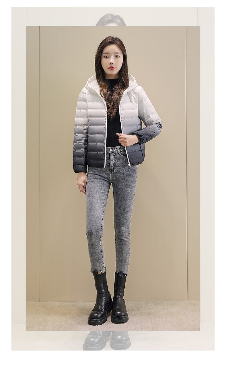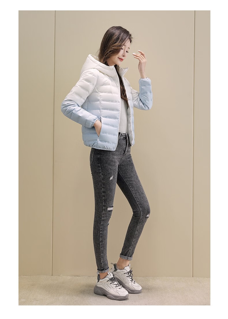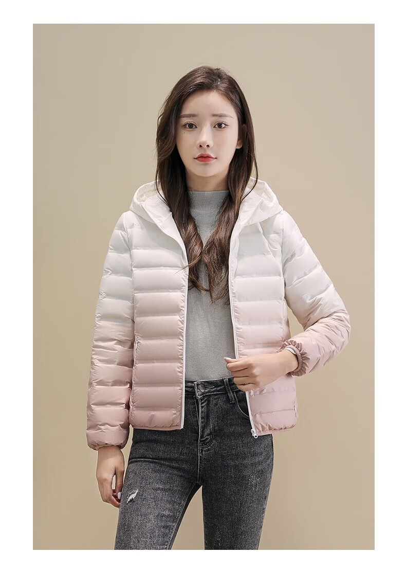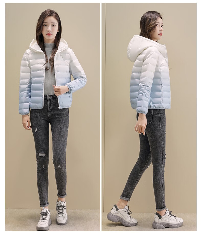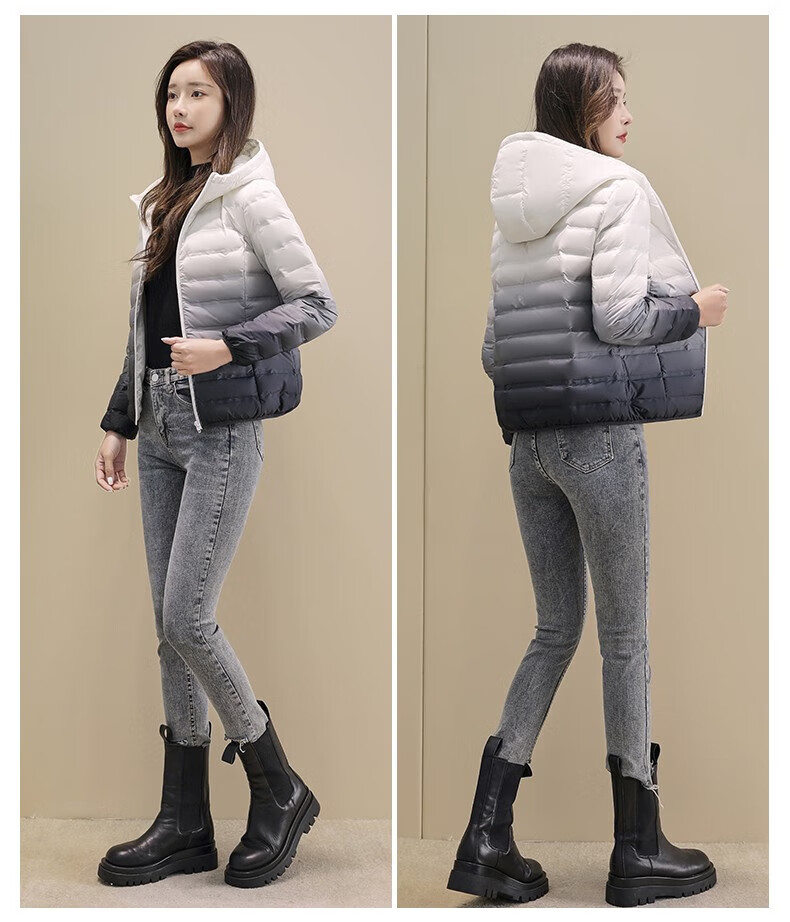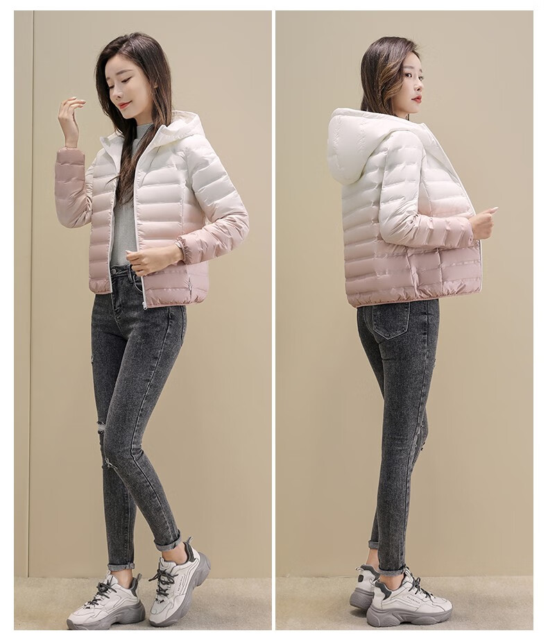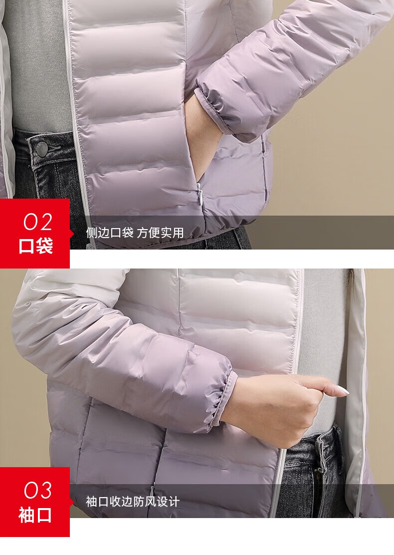 鸭鸭(YAYA)2025冬季新品轻薄羽绒服女短款连帽时尚韩版潮流渐变情侣款外套女 渐变紫色 L
