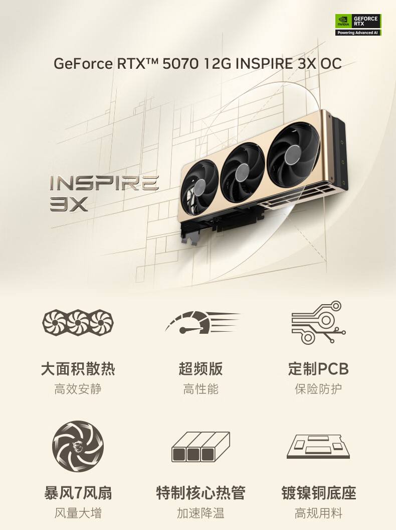 微星(MSI)硬派师 GeForce RTX 5070 12G INSPIRE 3X OC AI推理 电竞游戏设计智能学习独立显卡