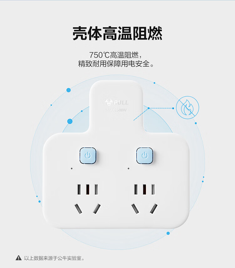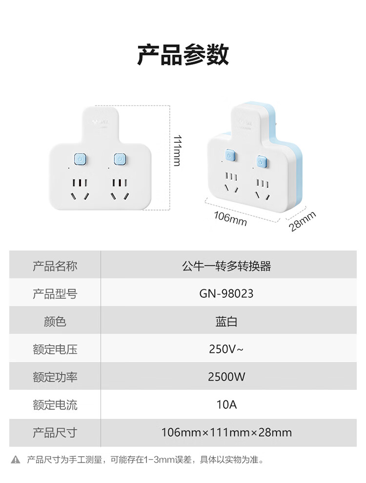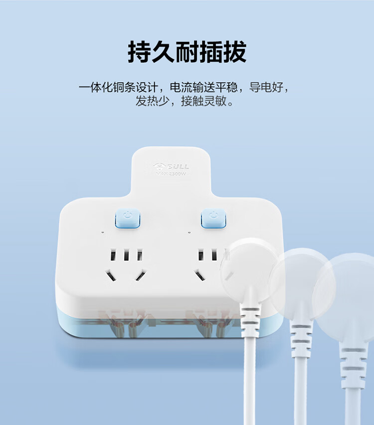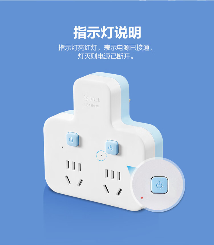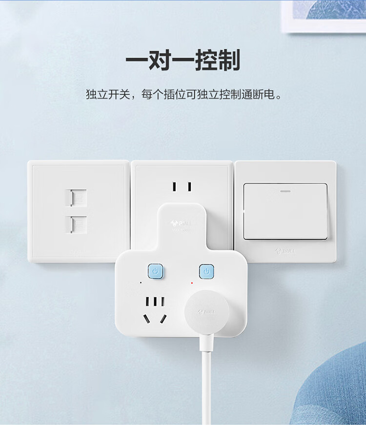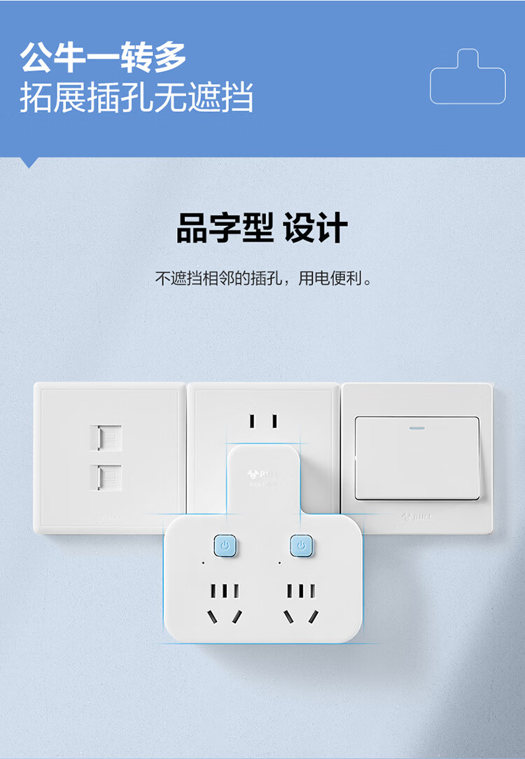 公牛(BULL)转换插头/品字形一转二插座/无线转换插座/电源转换器 适用于卧室、厨房 2位分控开关插座 蓝白