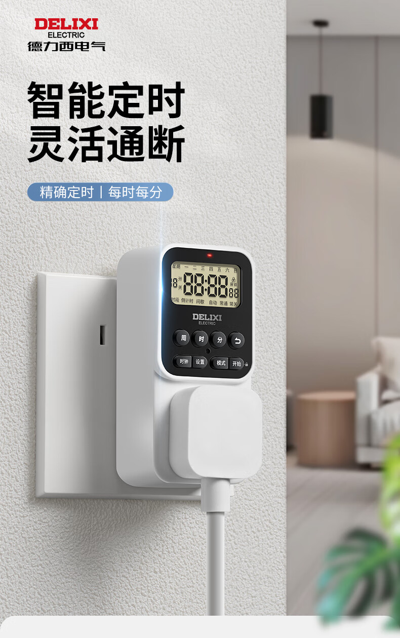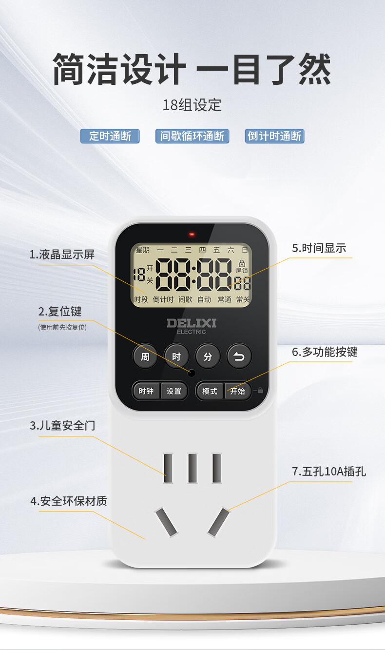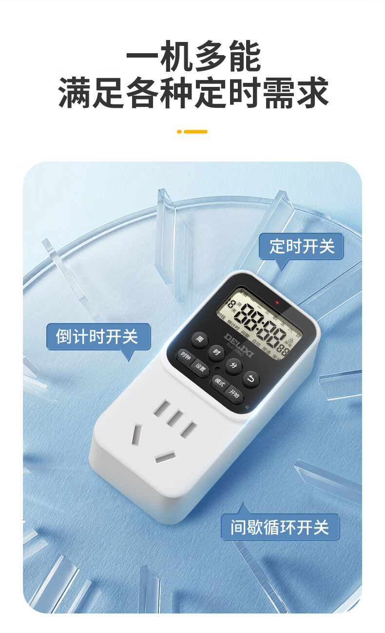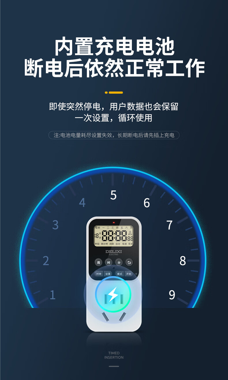 德力西(DELIXI)定时器插座 国标数显电子定时器 定时/倒计时/间歇循环通断电 内置电池含断电记忆无开关