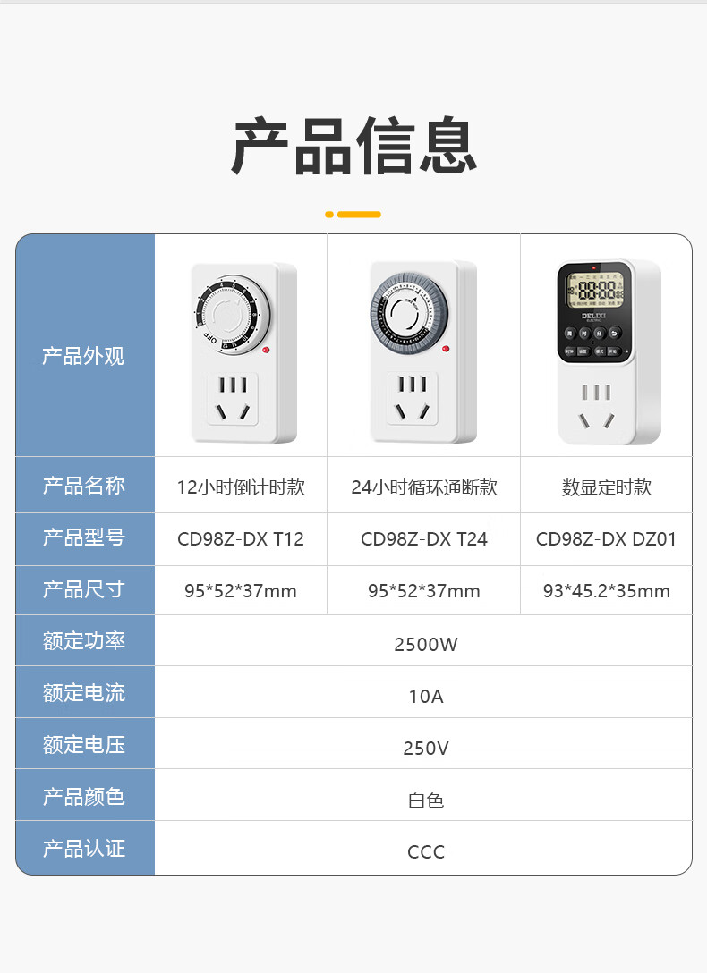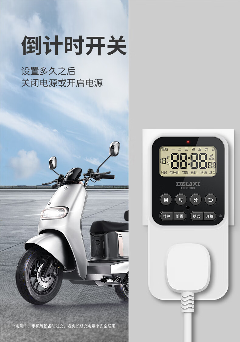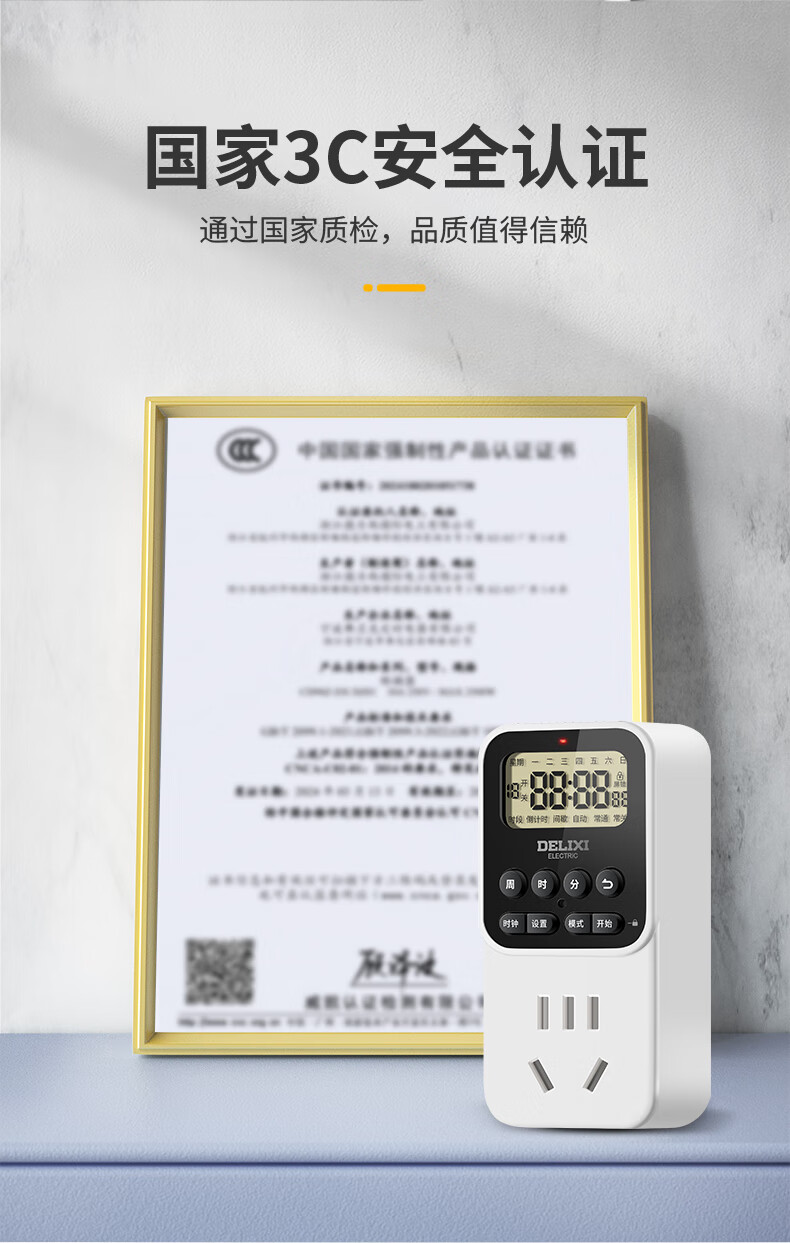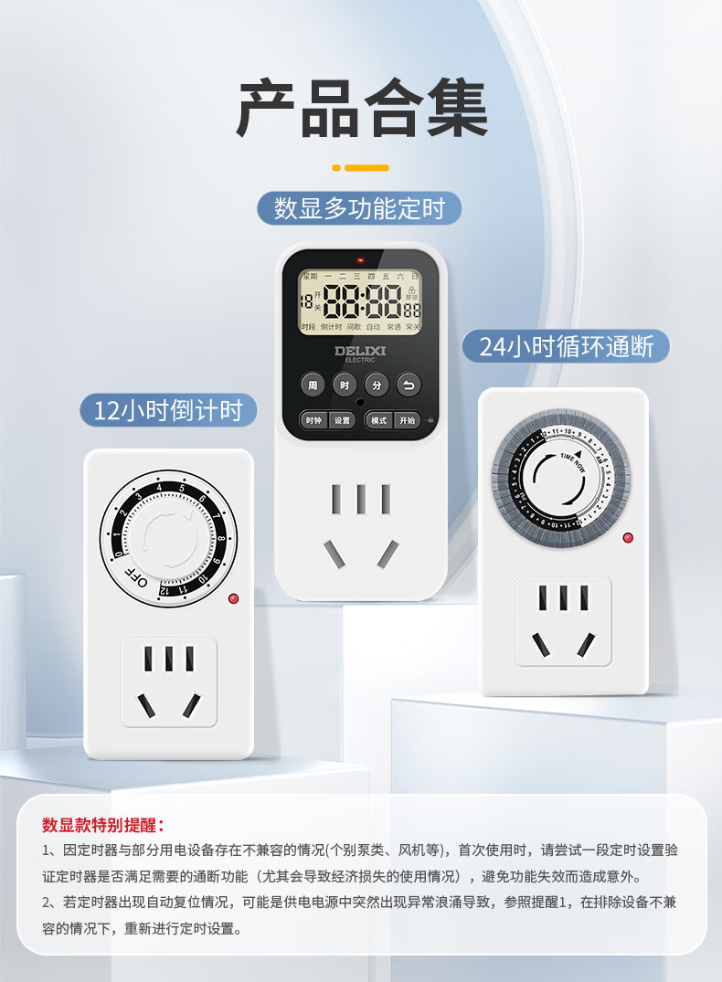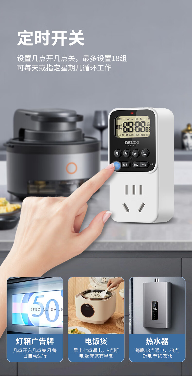 德力西(DELIXI)定时器插座 国标数显电子定时器 定时/倒计时/间歇循环通断电 内置电池含断电记忆无开关
