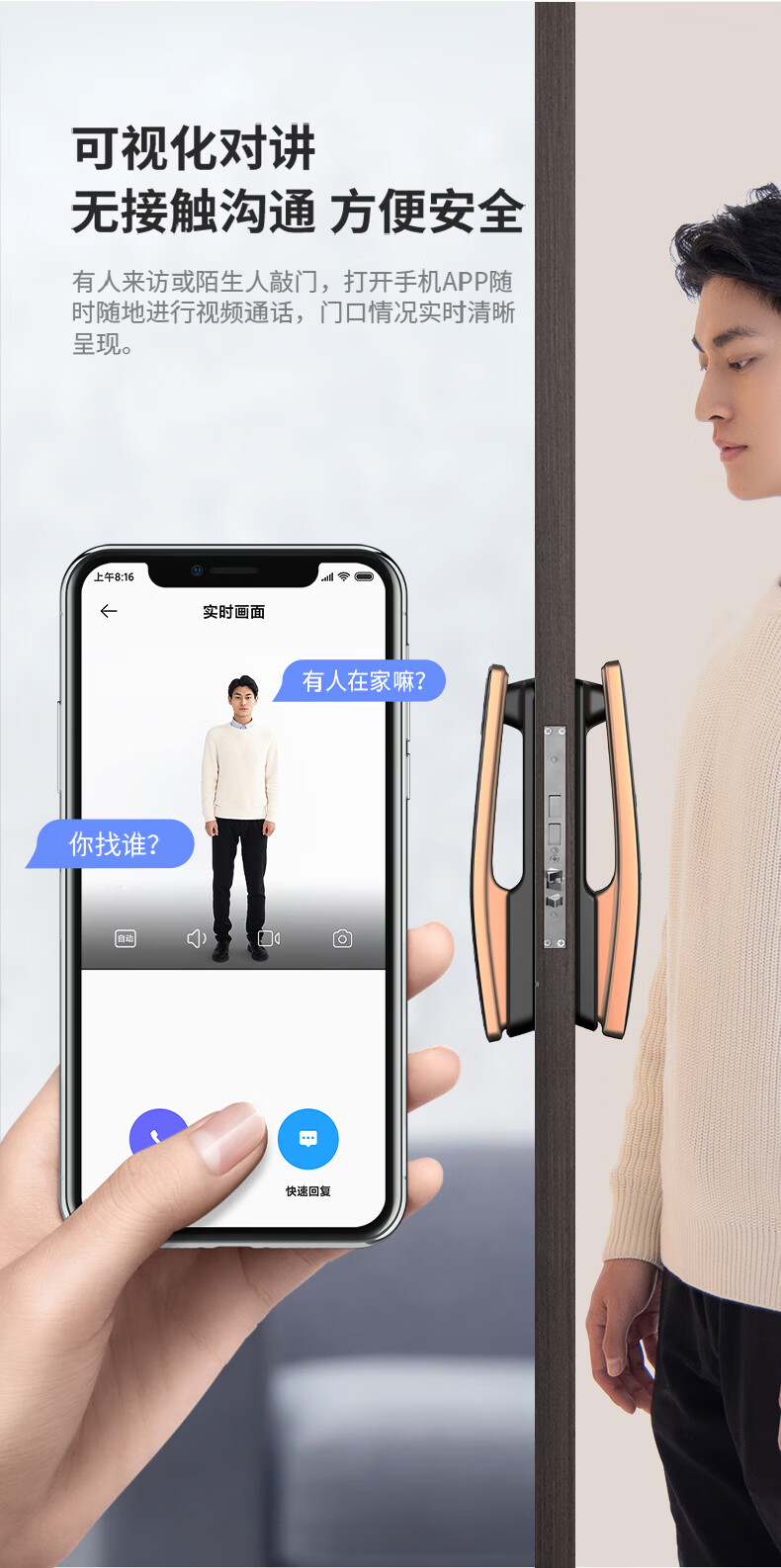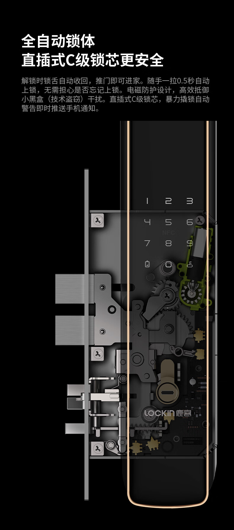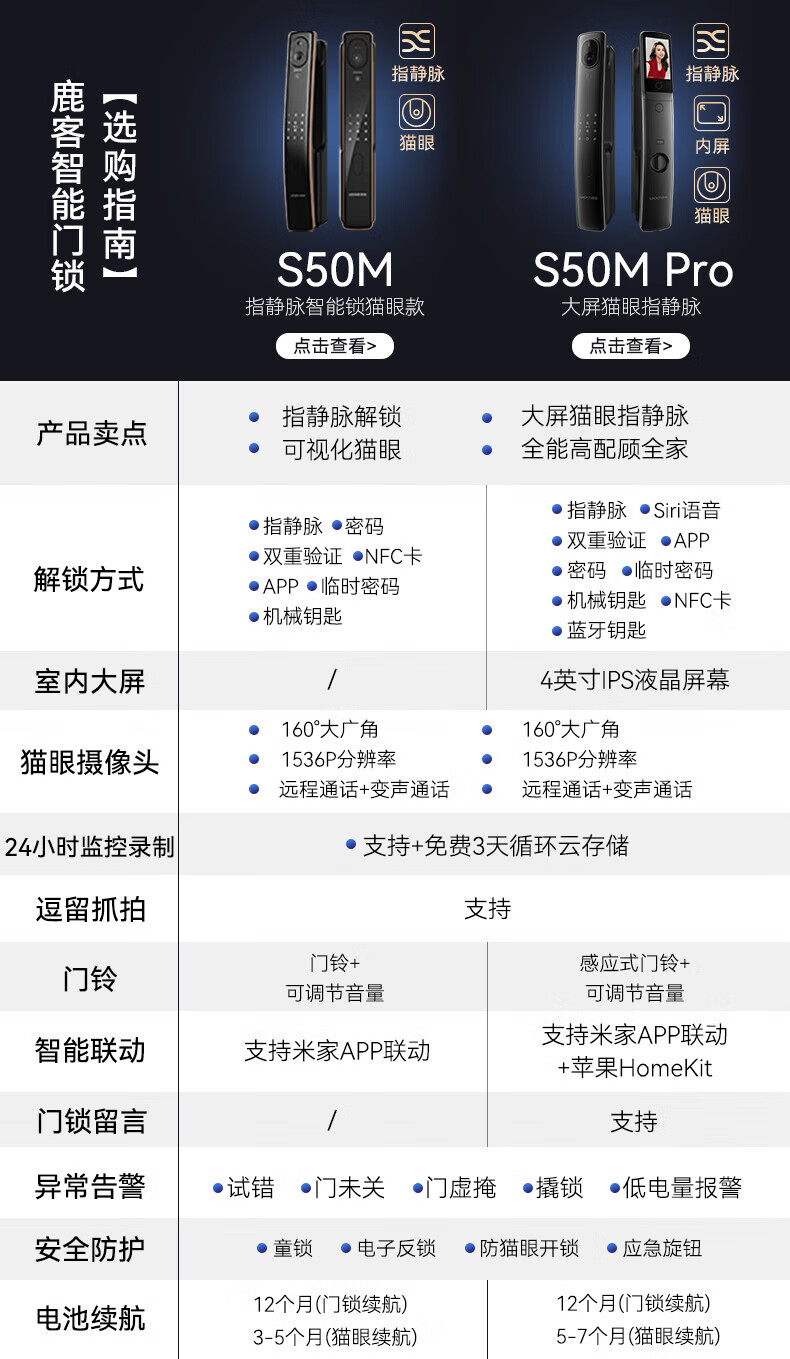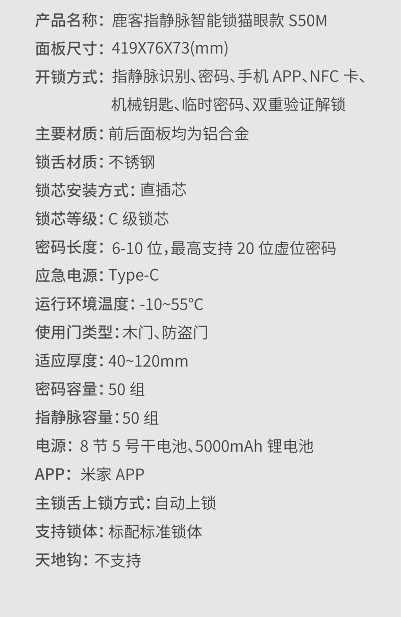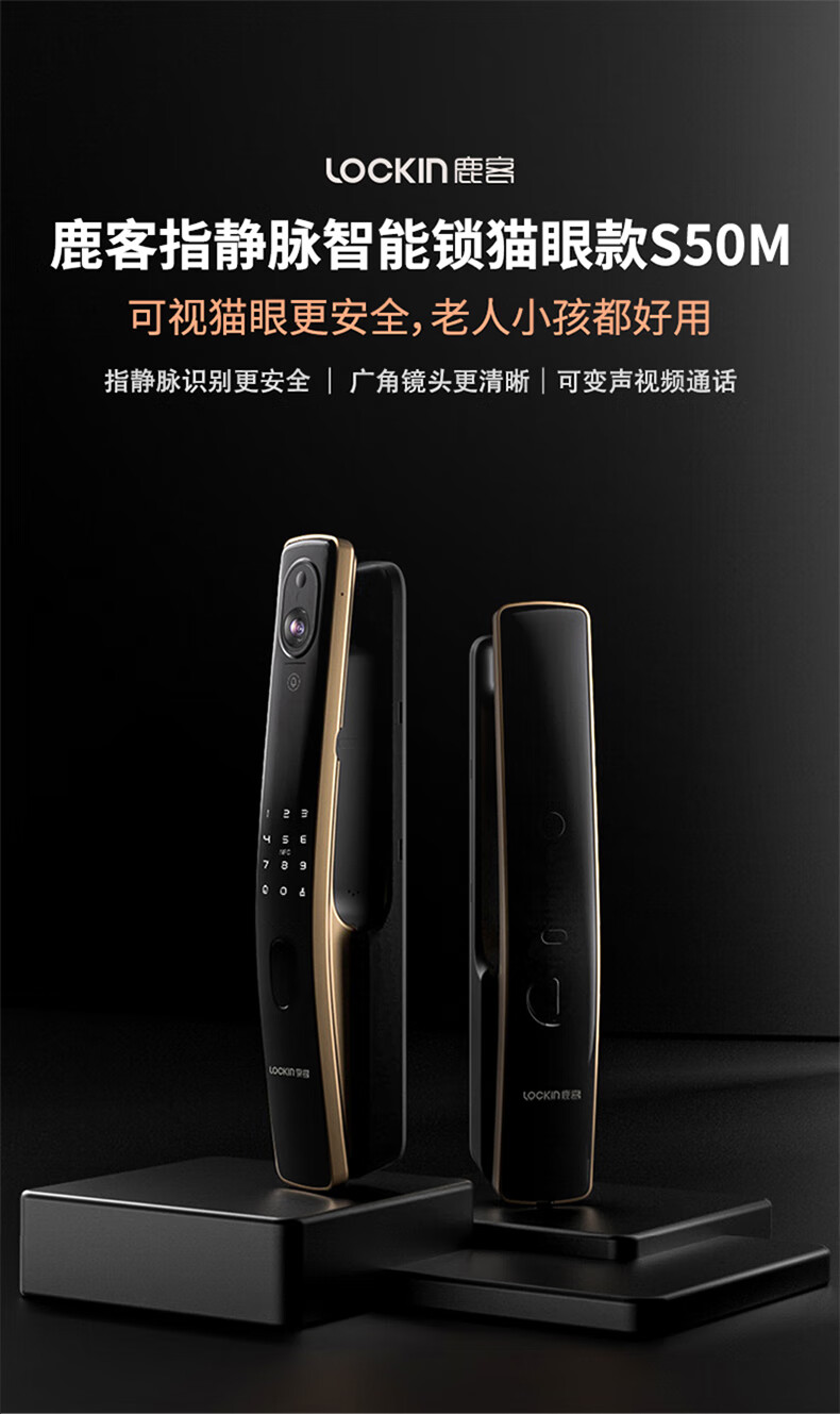 鹿客(lockin)指静脉智能门锁可视猫眼密码锁电子锁入户门APP智联S50M