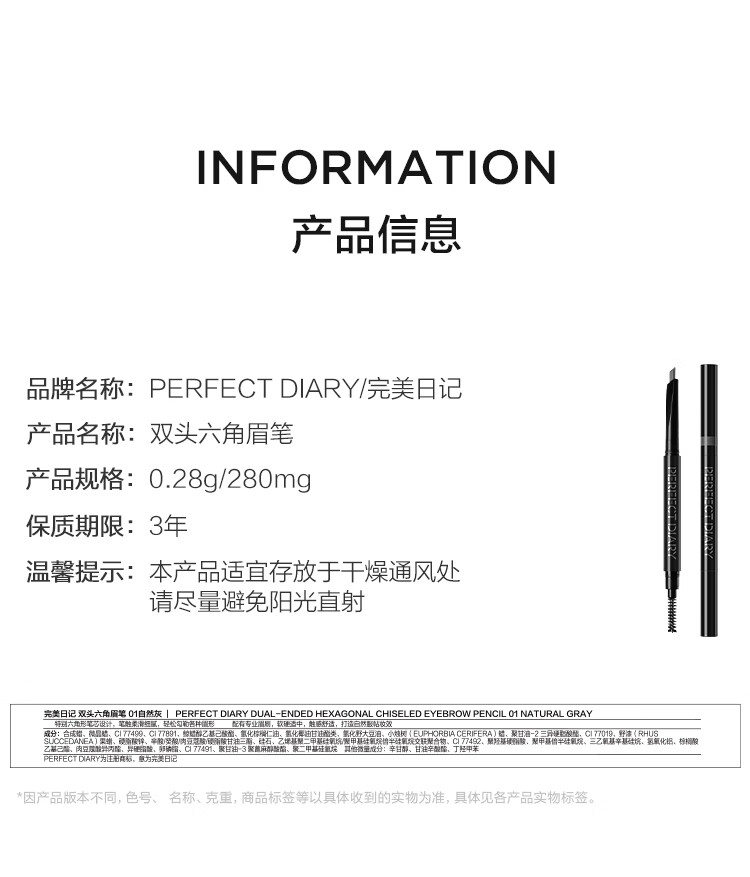 完美日记双头六角眉笔02深棕色防水防汗顺滑易上色生日礼物送女友