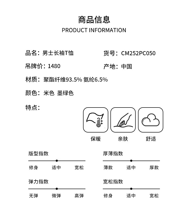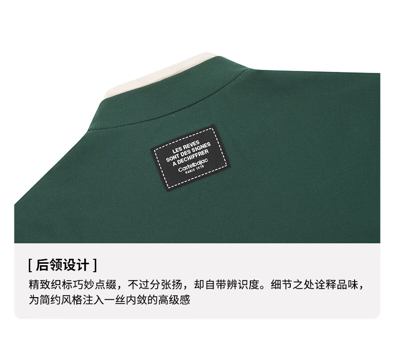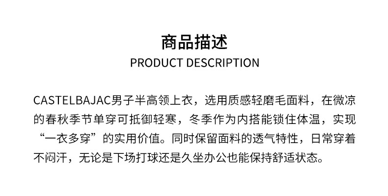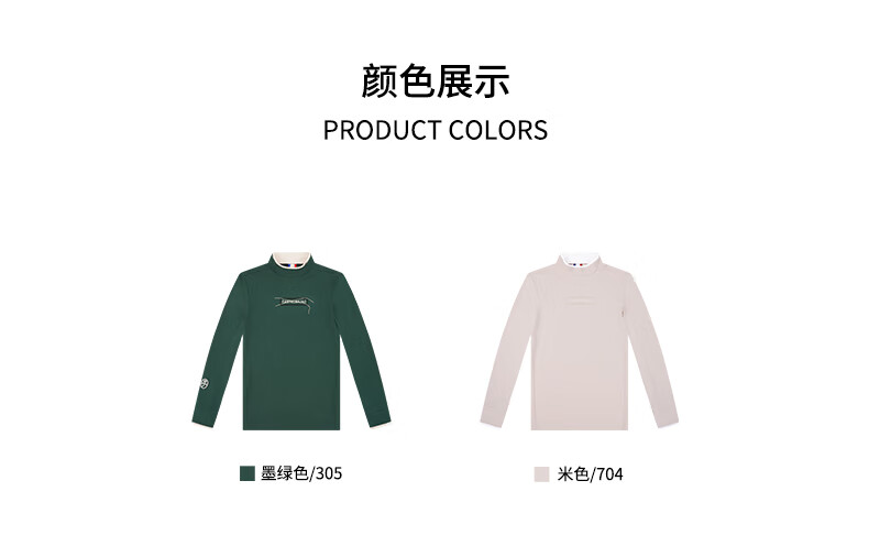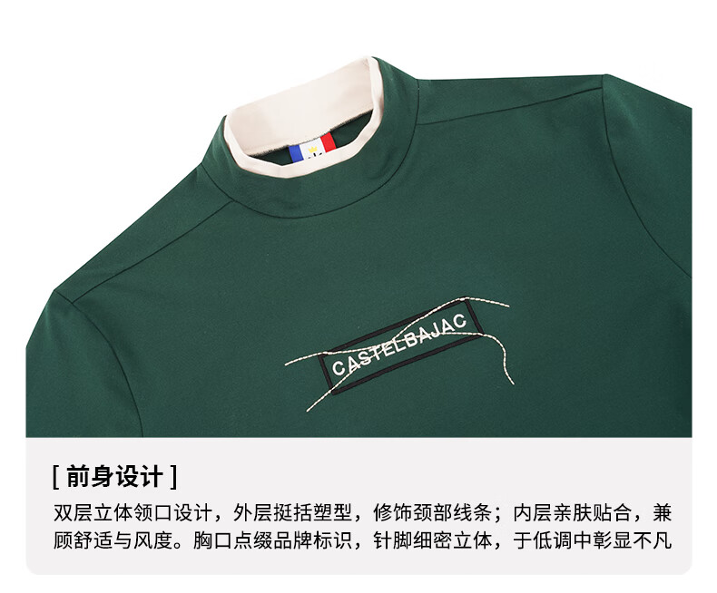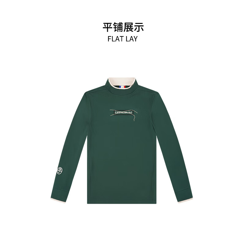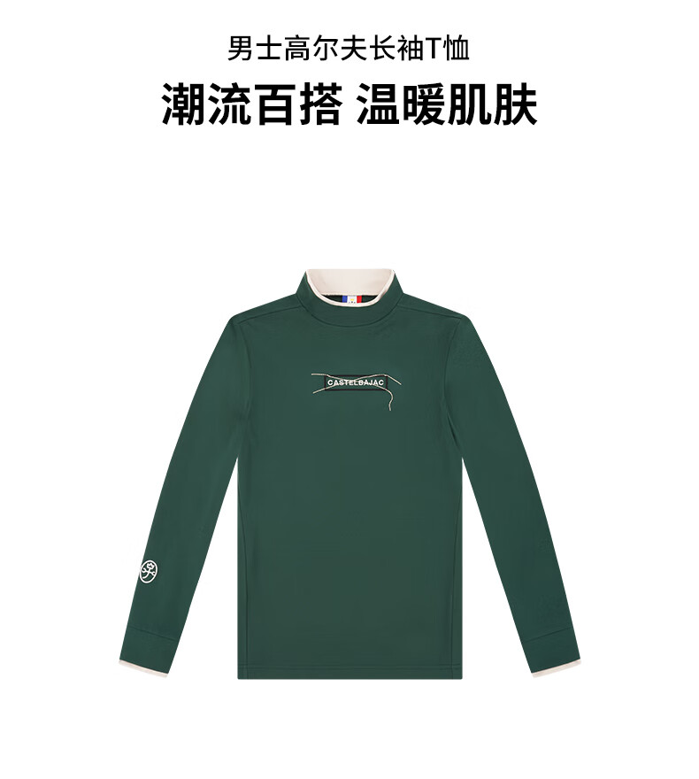 CASTELBAJAC(C牌)高尔夫服装男长袖T恤25秋冬弹力舒适磨毛保暖立领运动打底衫 墨绿色 S (推荐120-135斤)