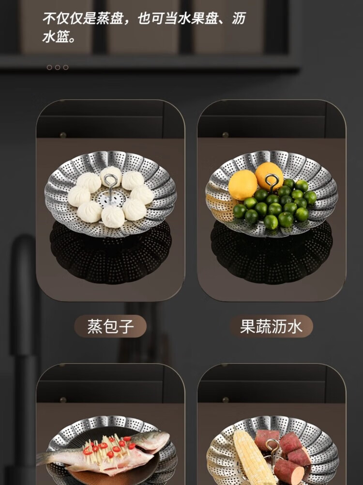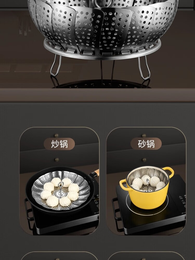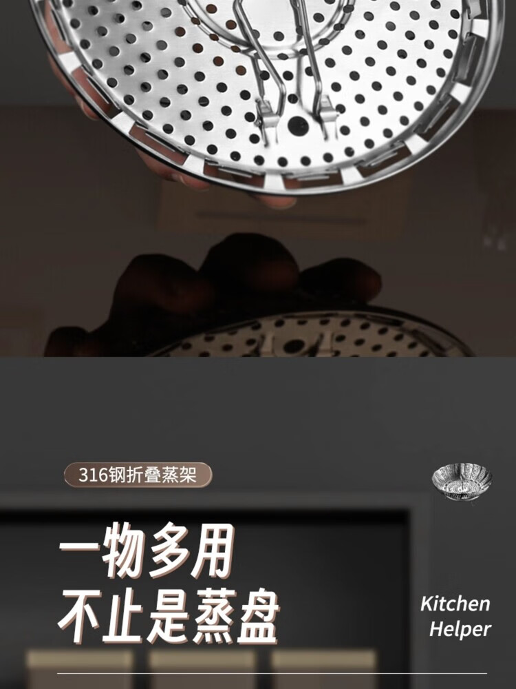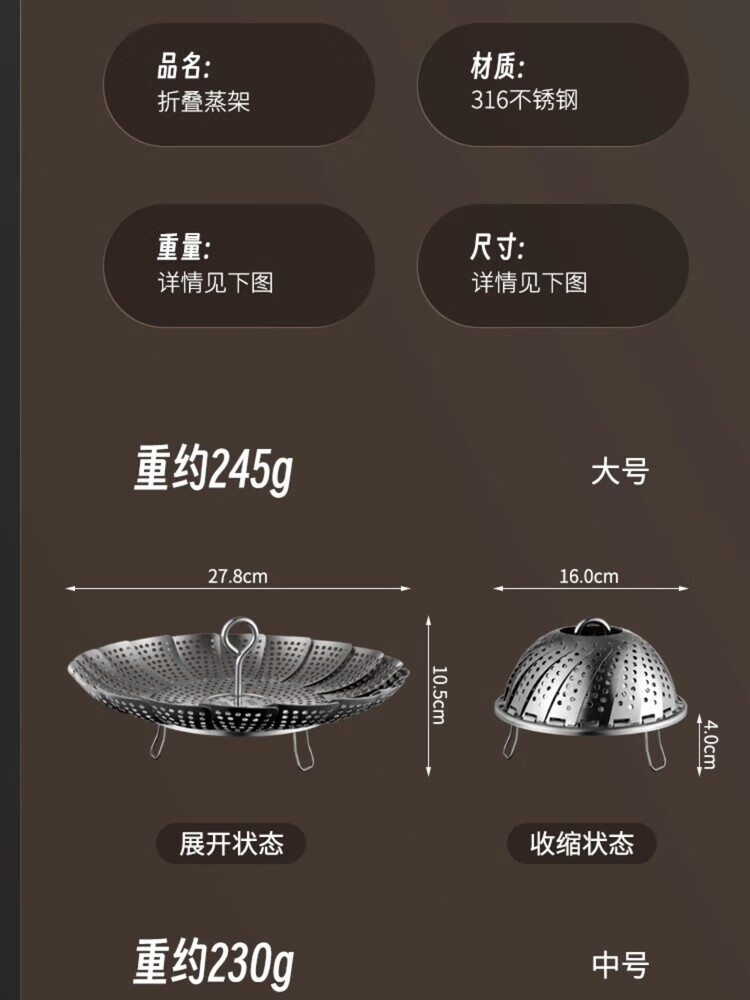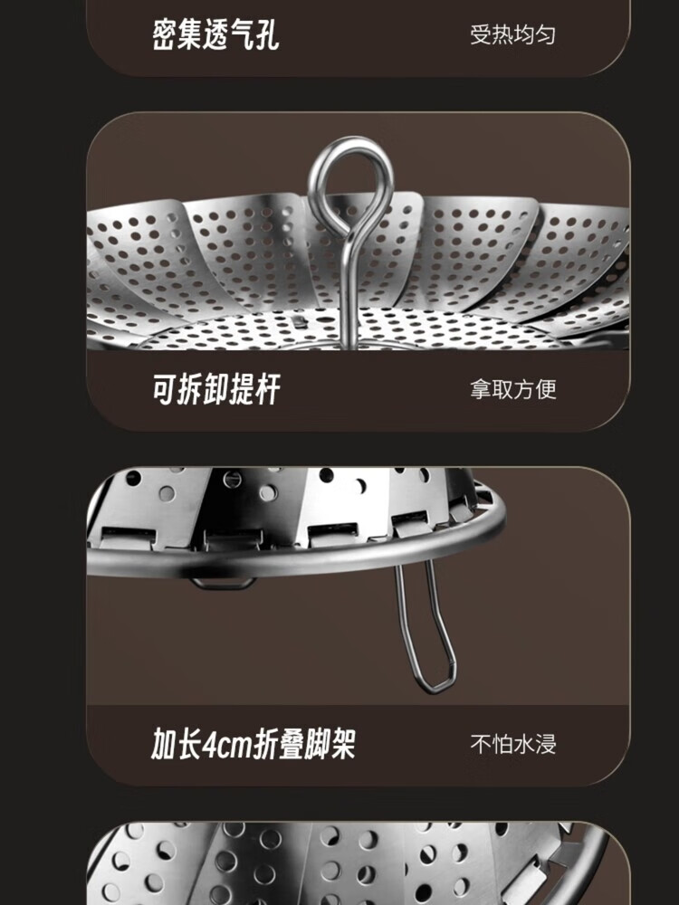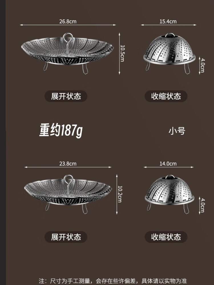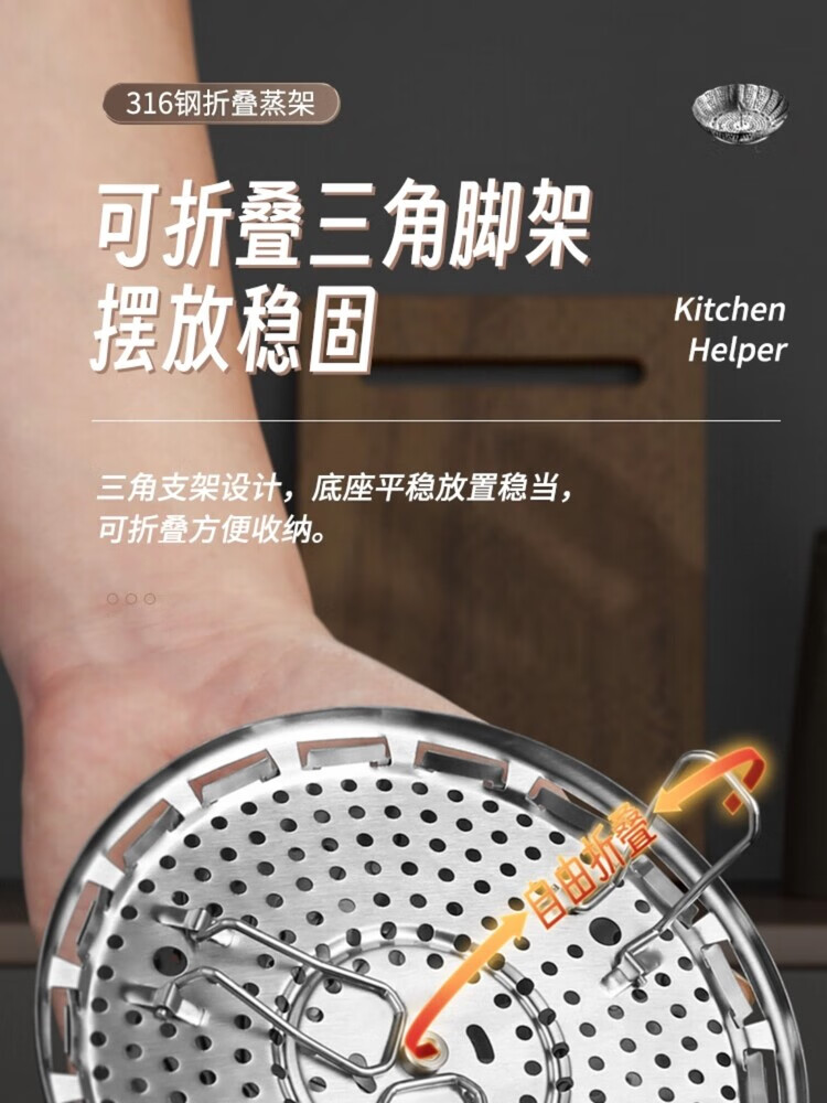 DEATKN德国316不锈钢折叠蒸架家用笼屉厨房多功能伸缩蒸笼蒸格隔水蒸盘 316小号24cm