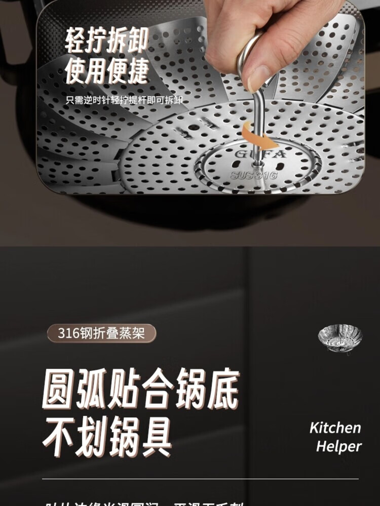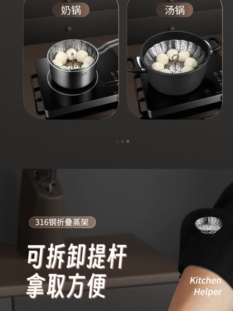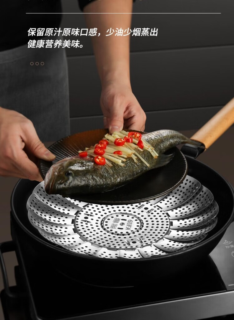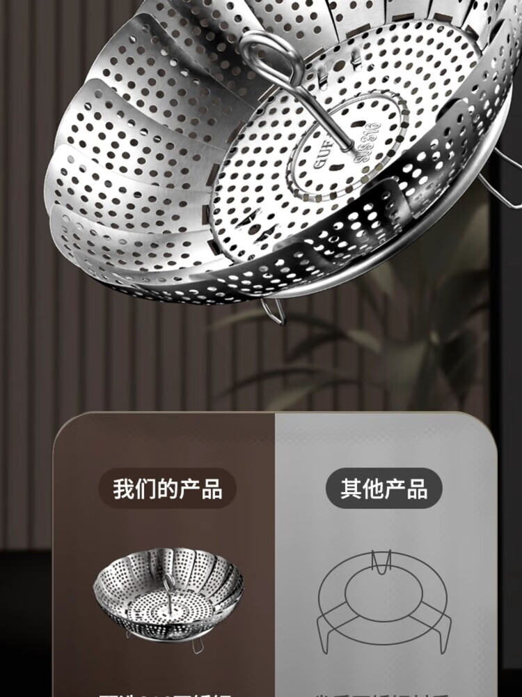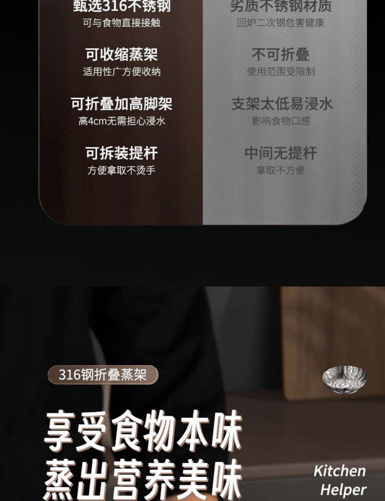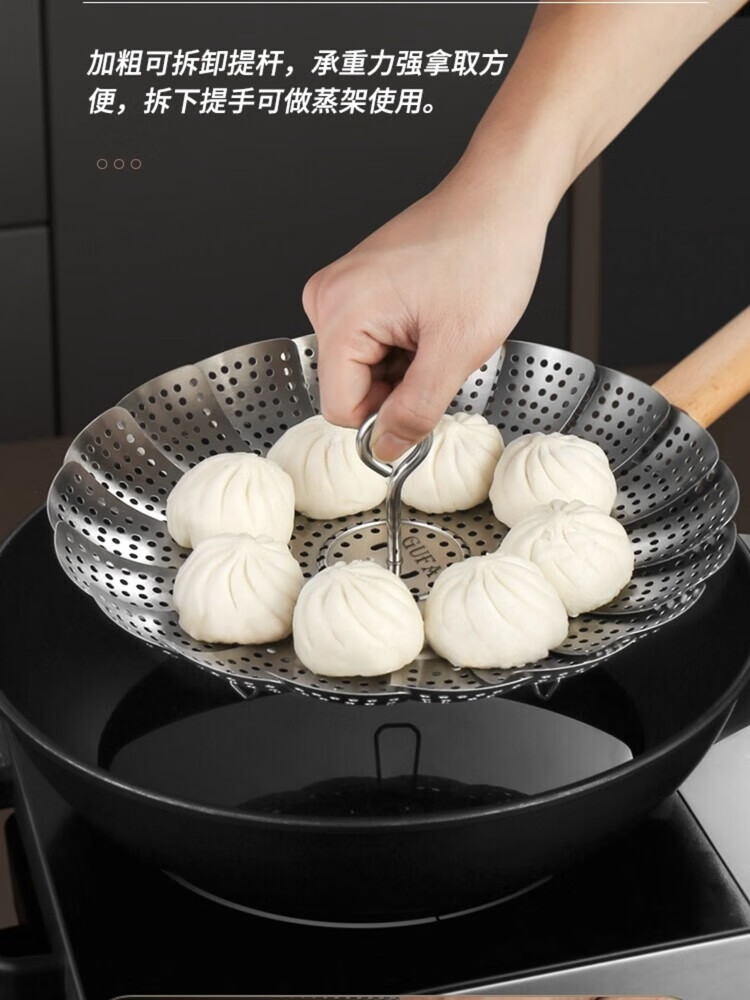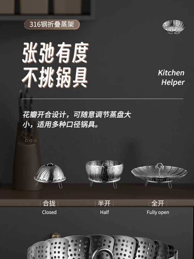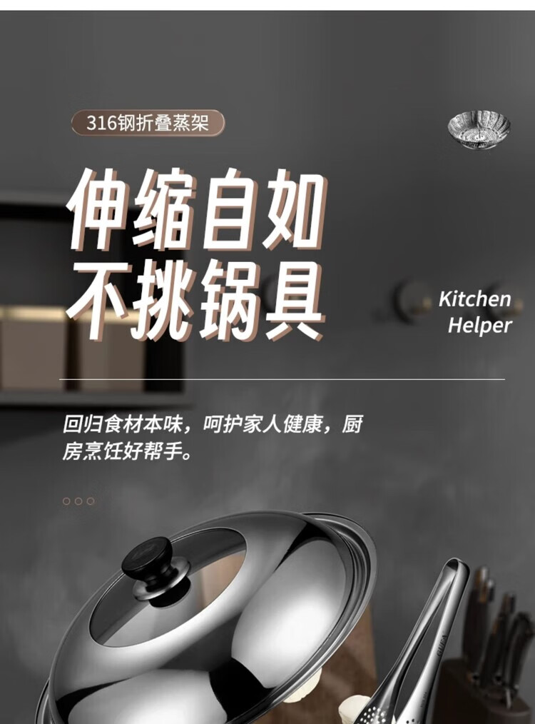 DEATKN德国316不锈钢折叠蒸架家用笼屉厨房多功能伸缩蒸笼蒸格隔水蒸盘 316小号24cm