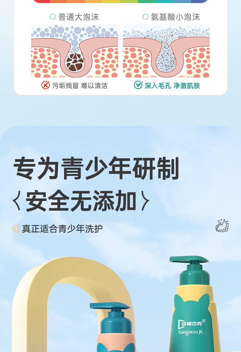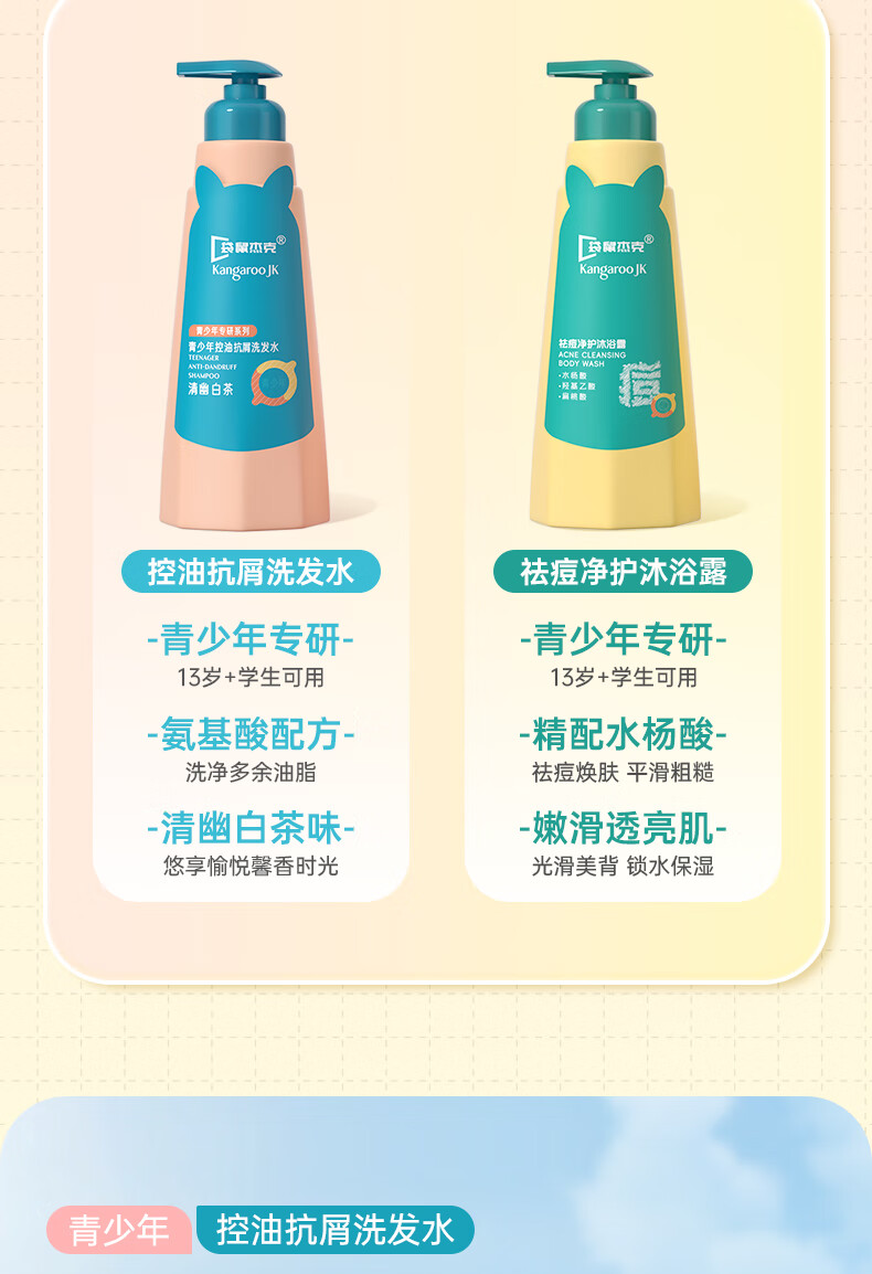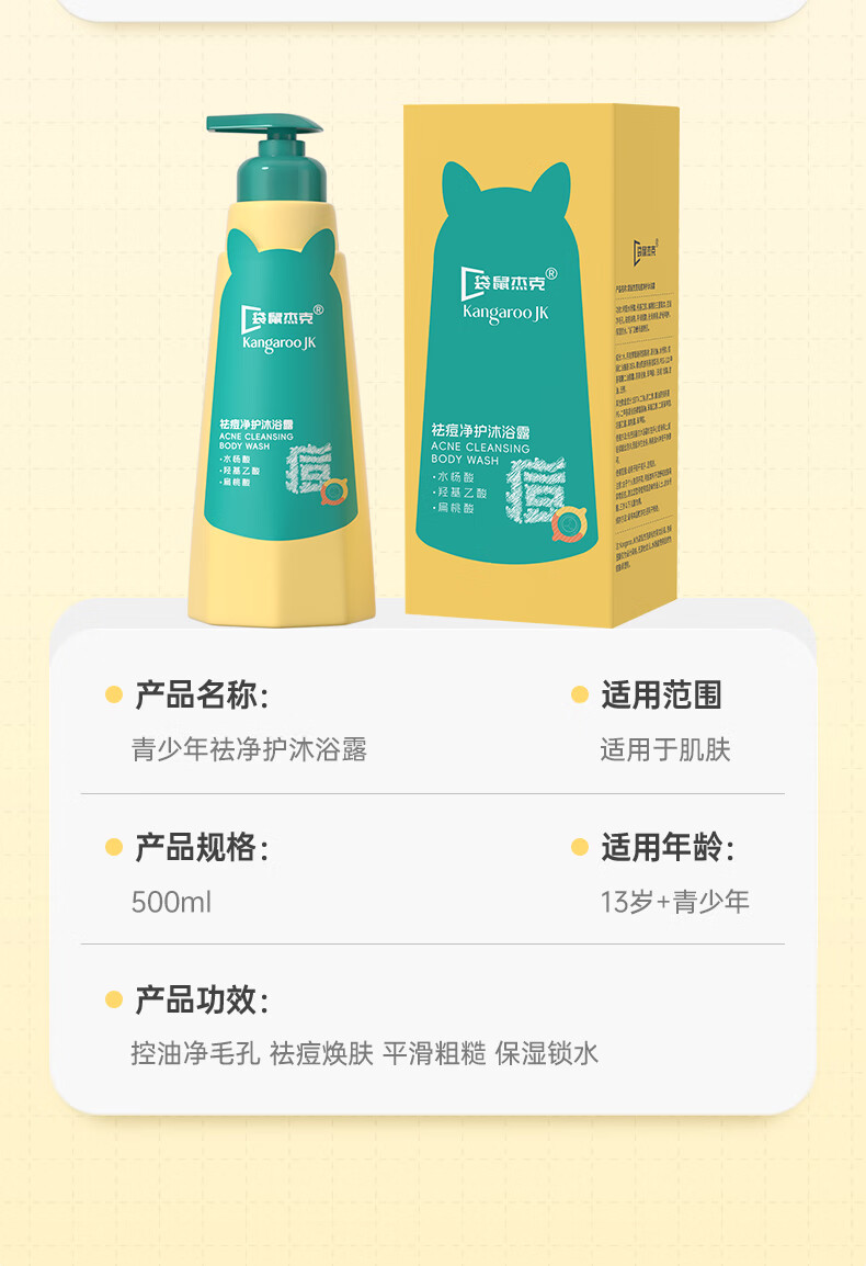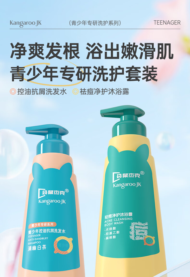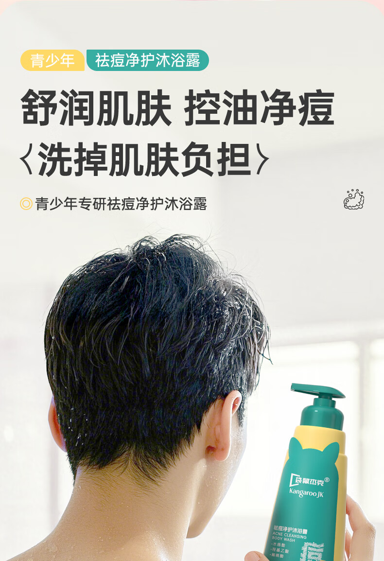 袋鼠杰克青少年儿童祛痘消螨沐浴露控油痘抗屑洗发水蓬松洗发水清爽沐浴乳 【祛痘净螨】青少年沐浴露500ml*1