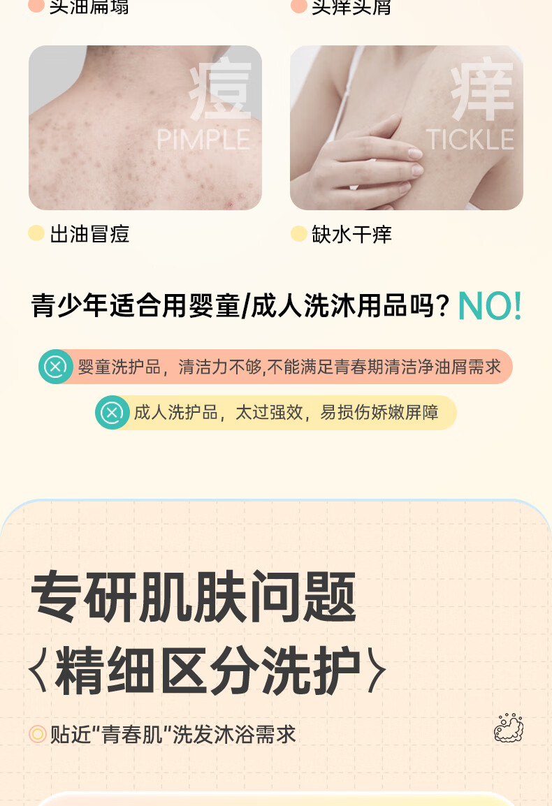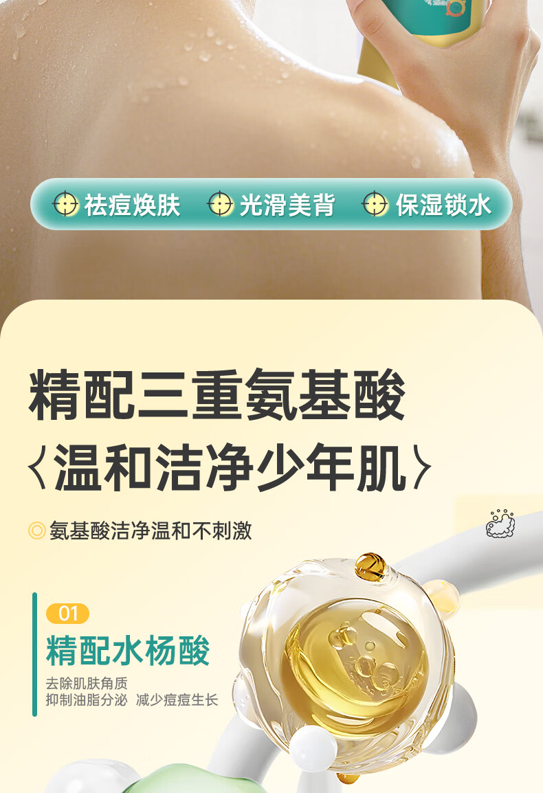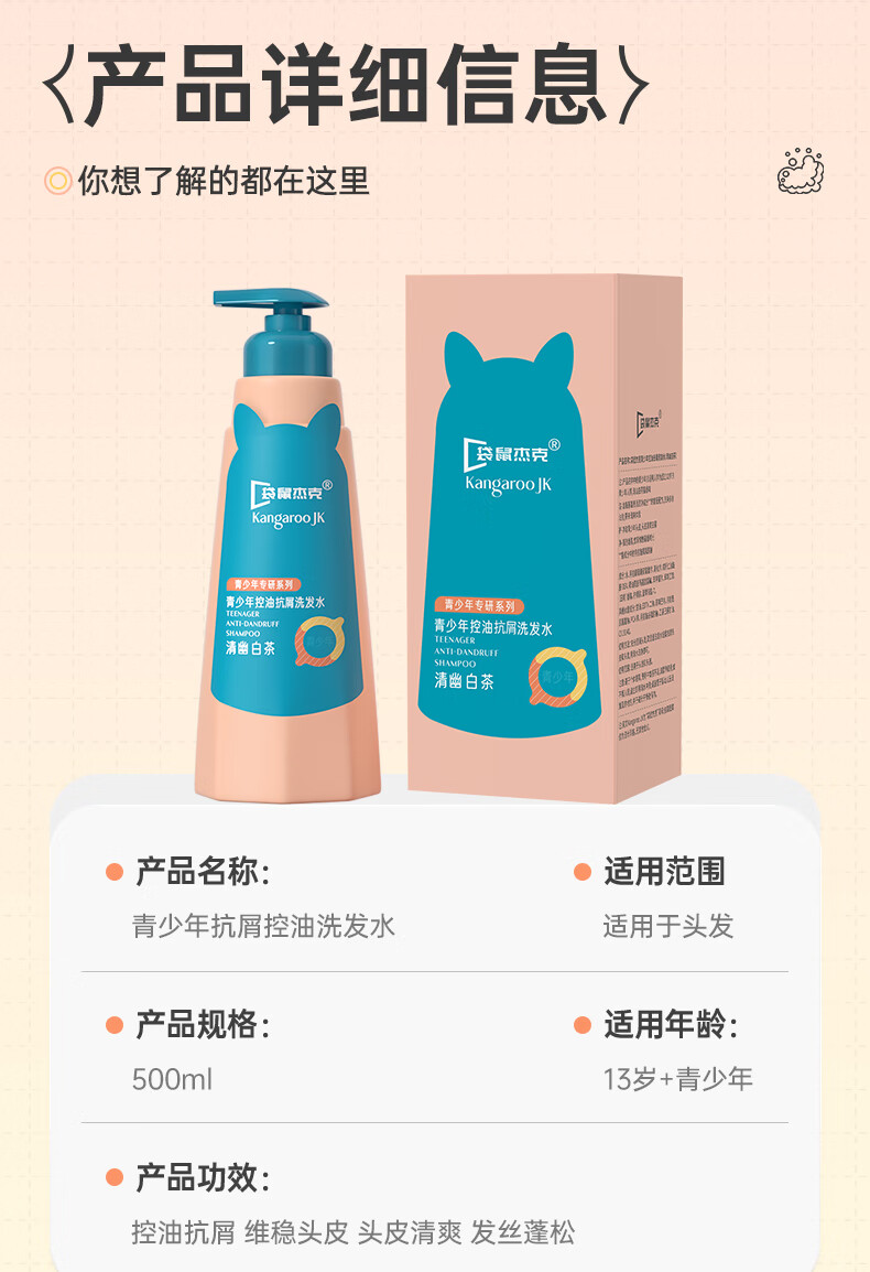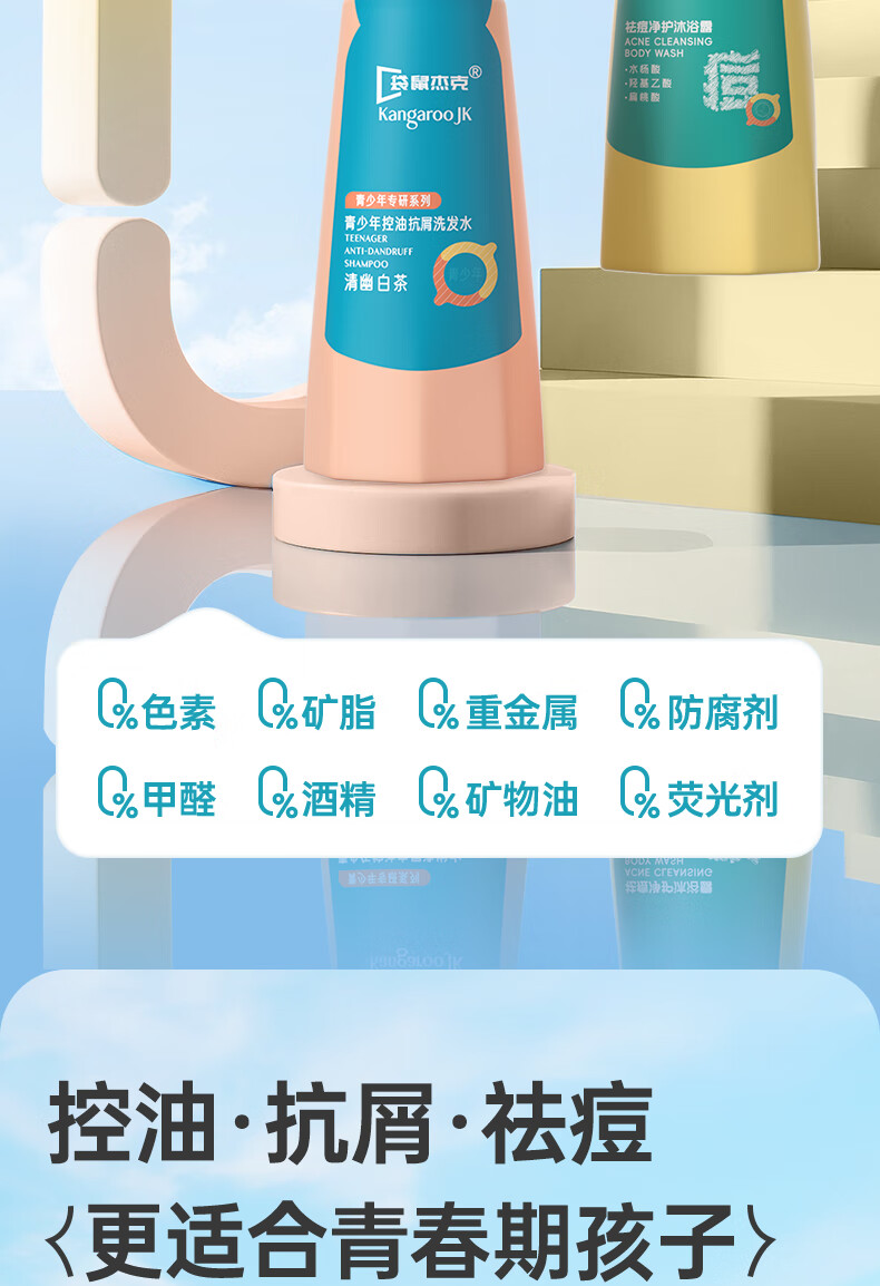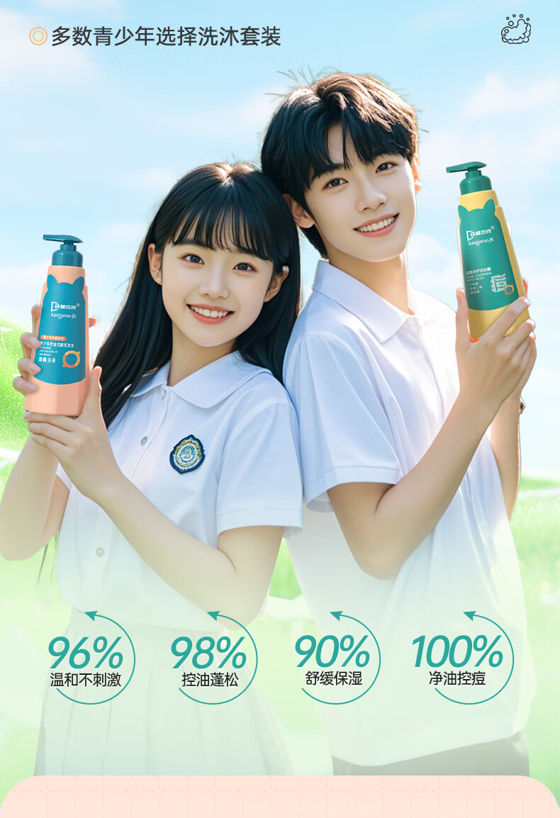 袋鼠杰克青少年儿童祛痘消螨沐浴露控油痘抗屑洗发水蓬松洗发水清爽沐浴乳 【祛痘净螨】青少年沐浴露500ml*1