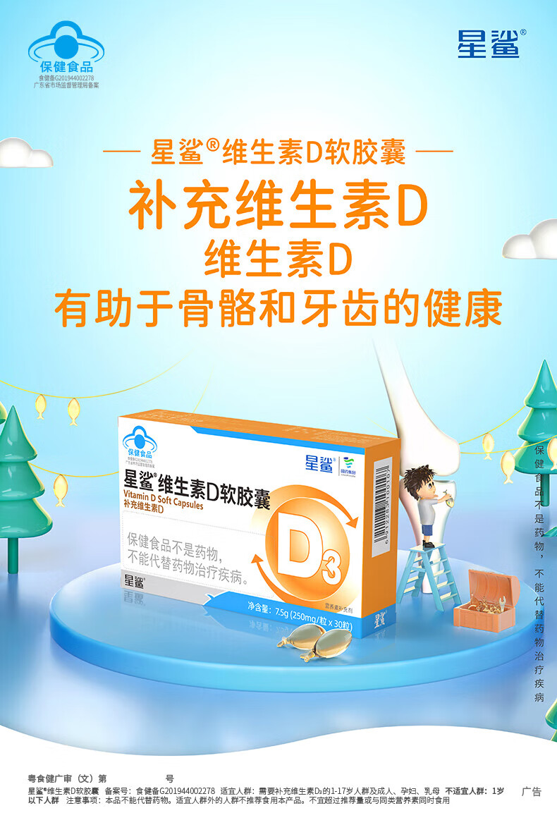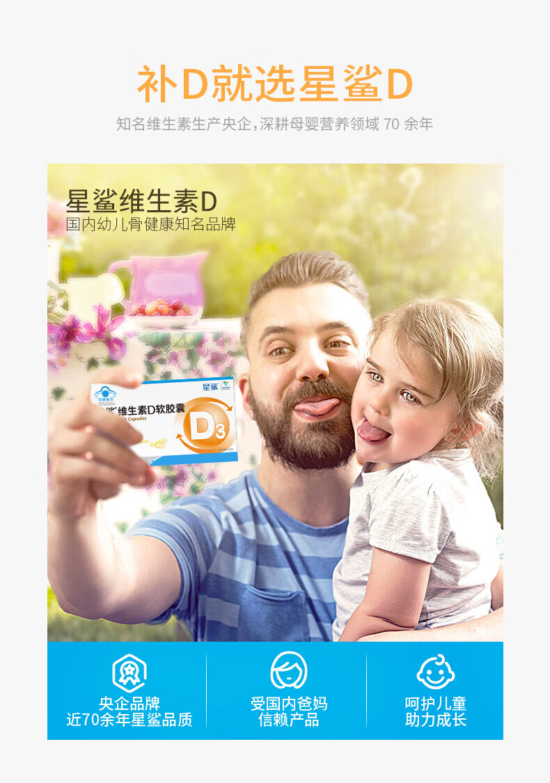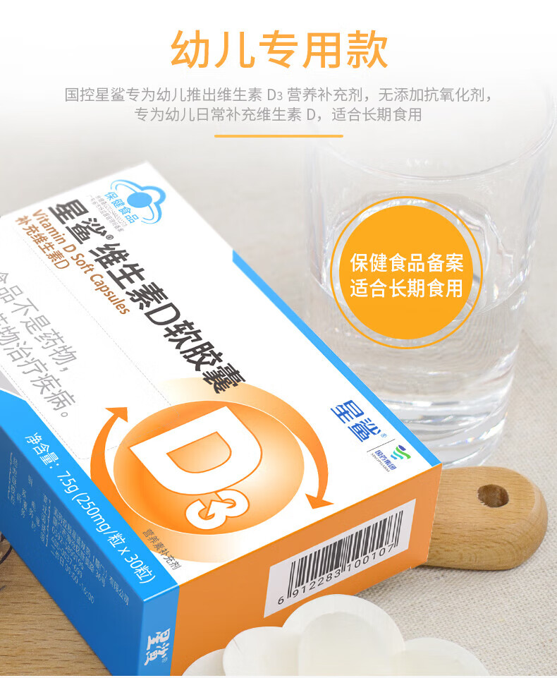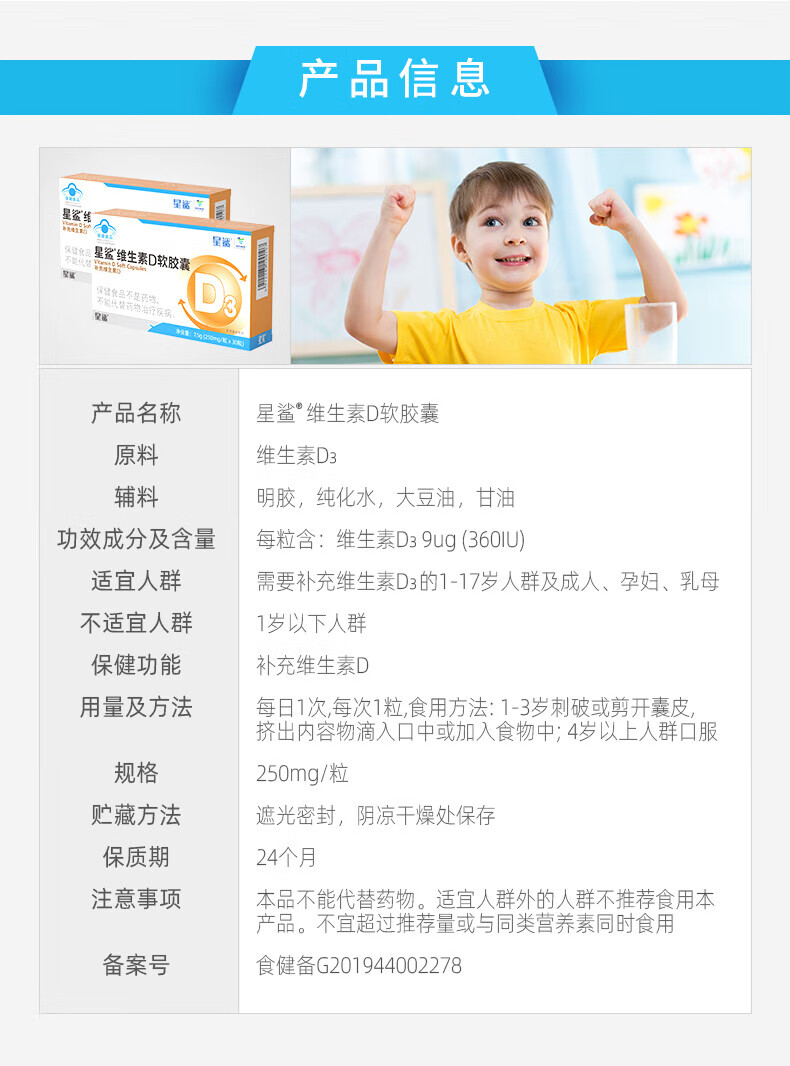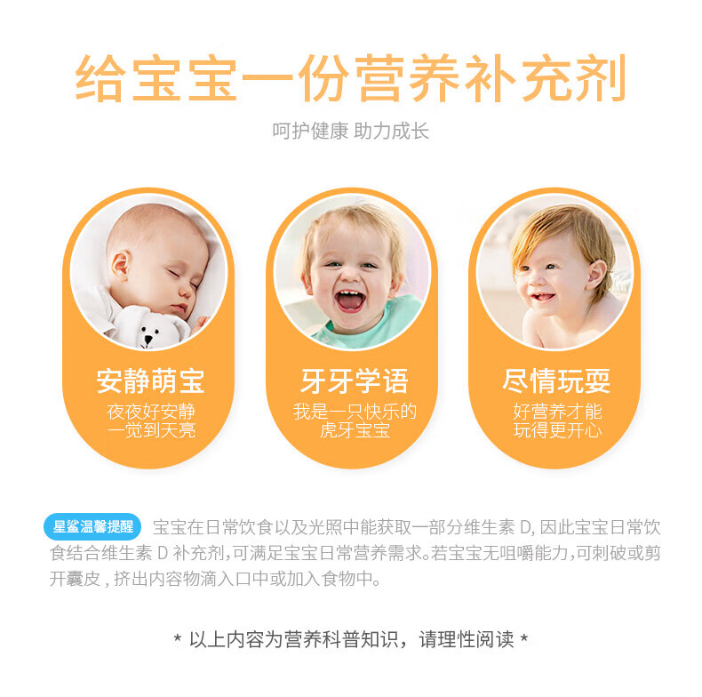 星鲨幼儿童维生素D3滴剂软胶囊1岁以上 维生素D30粒 360iu*8盒