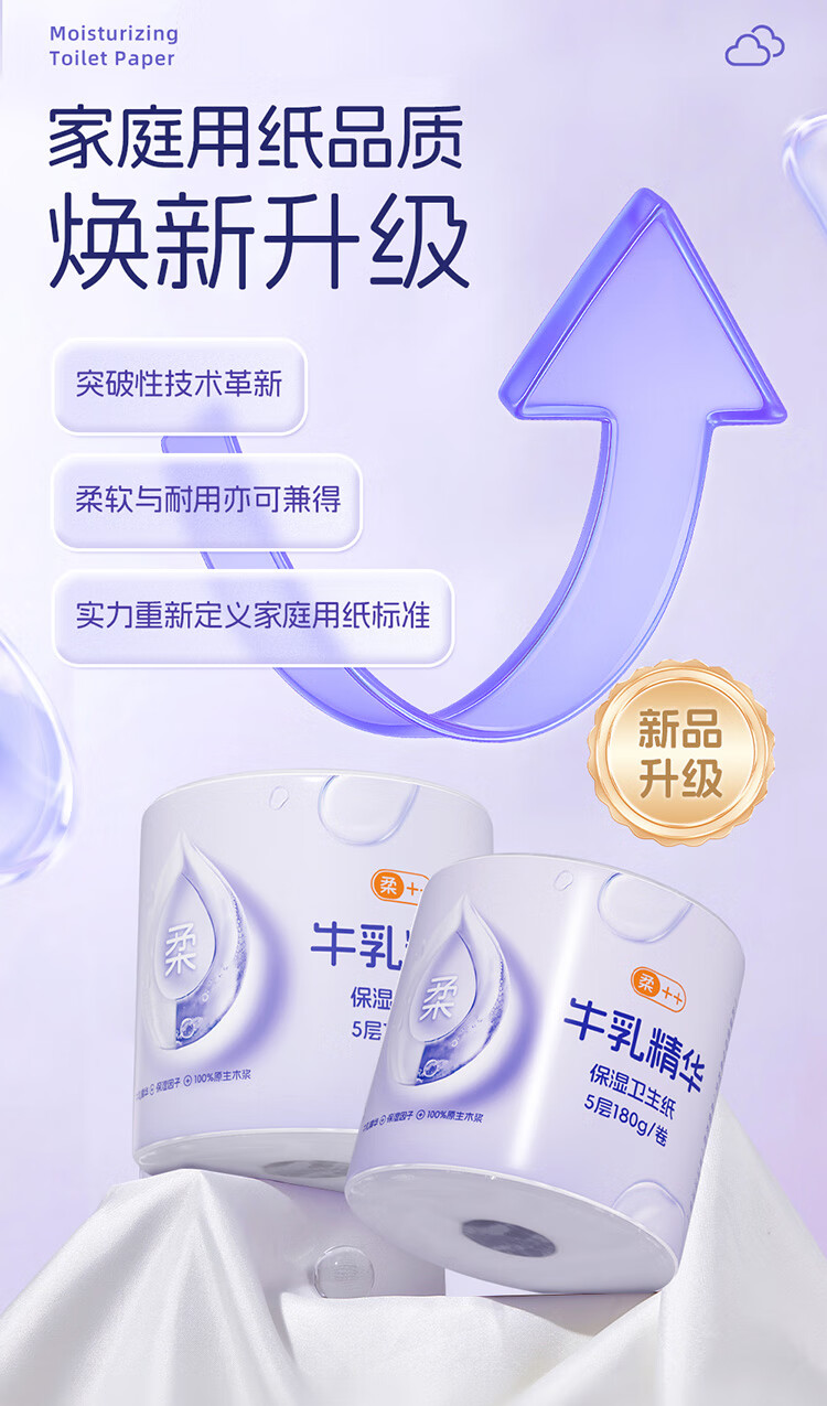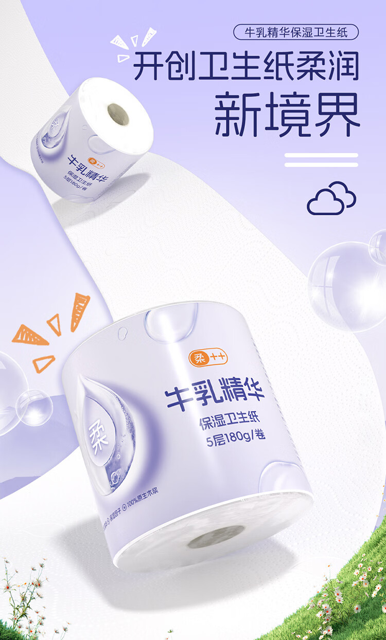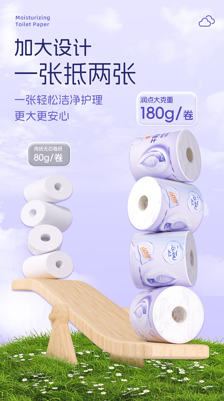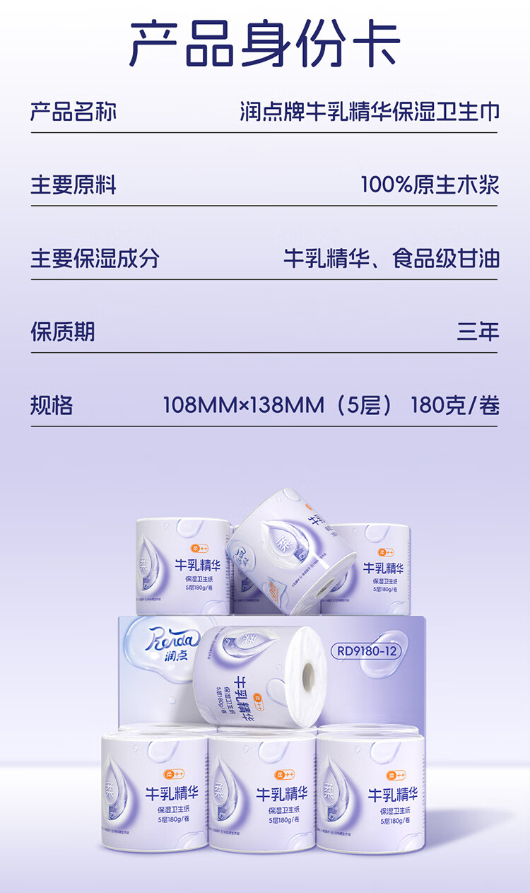 润点母婴有芯卷纸5层180g/卷*12卷 湿纸巾云柔巾卫生纸纸巾婴幼儿适用