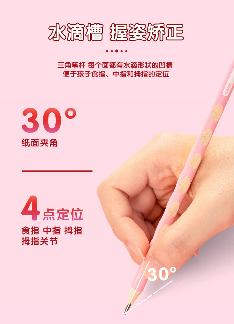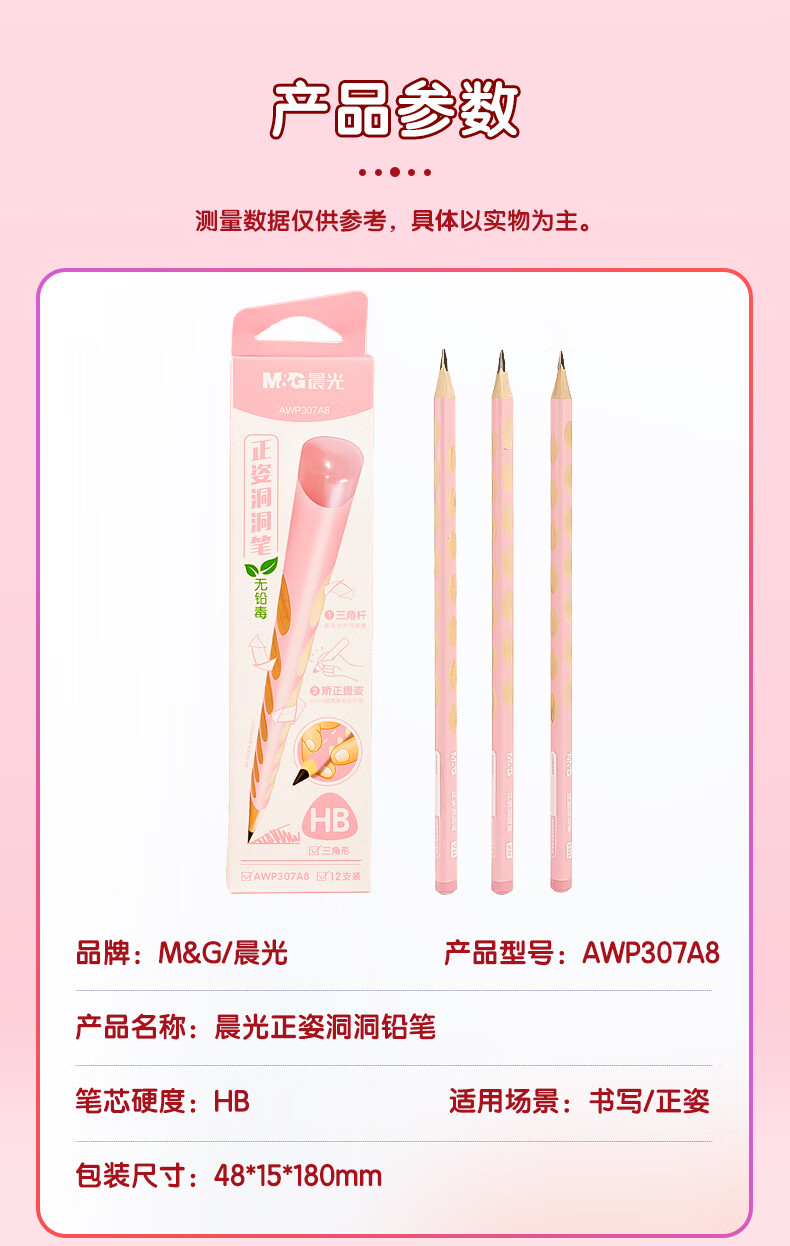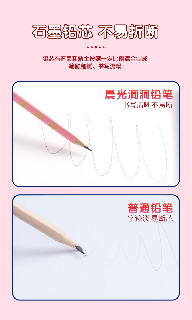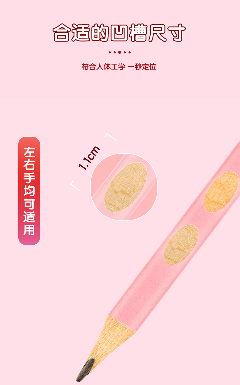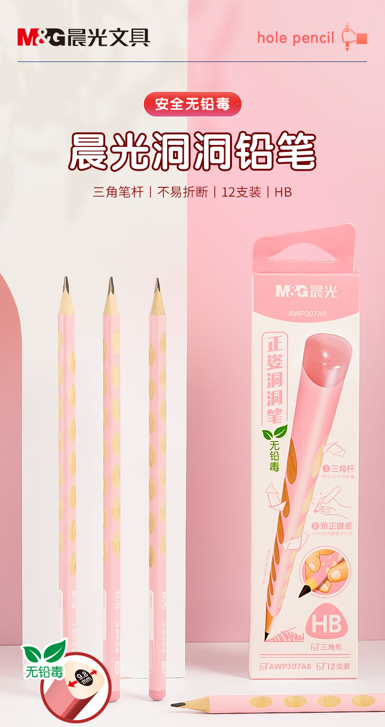 晨光(M&G)文具 HB洞洞铅笔12支 儿童正姿矫姿铅笔学生练字笔 易握不易断无铅毒笔 粉色款AWP307A8开学