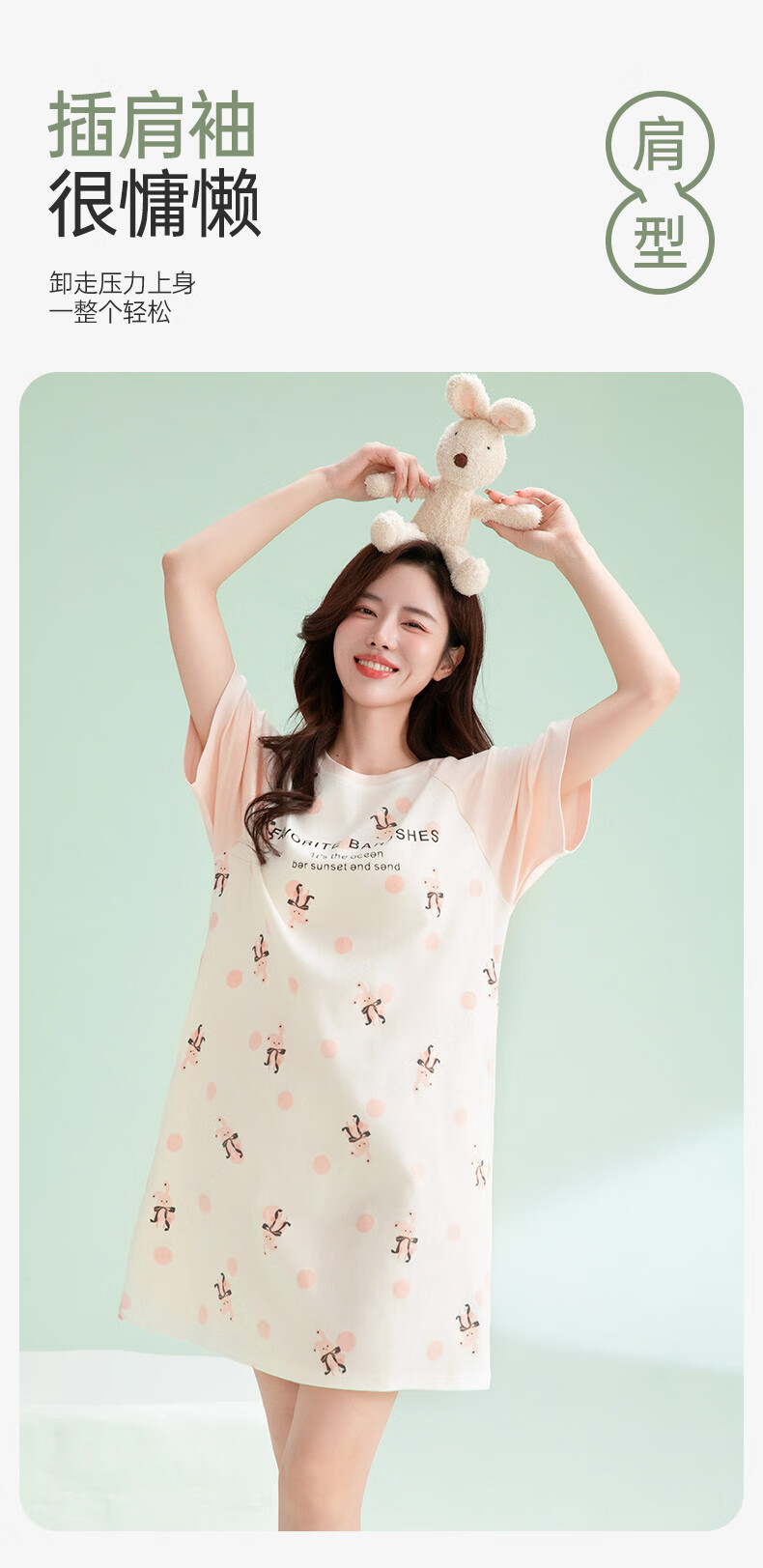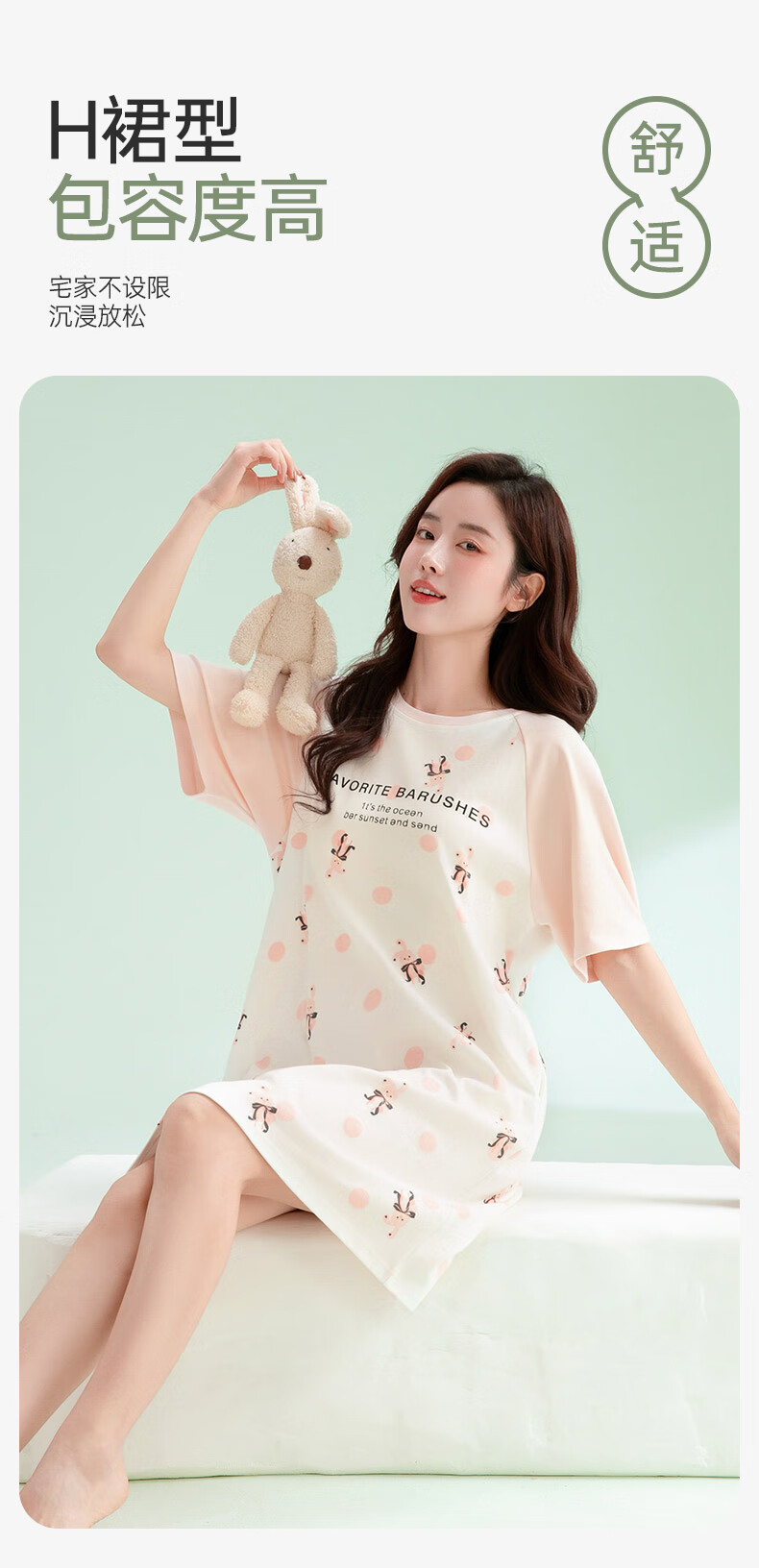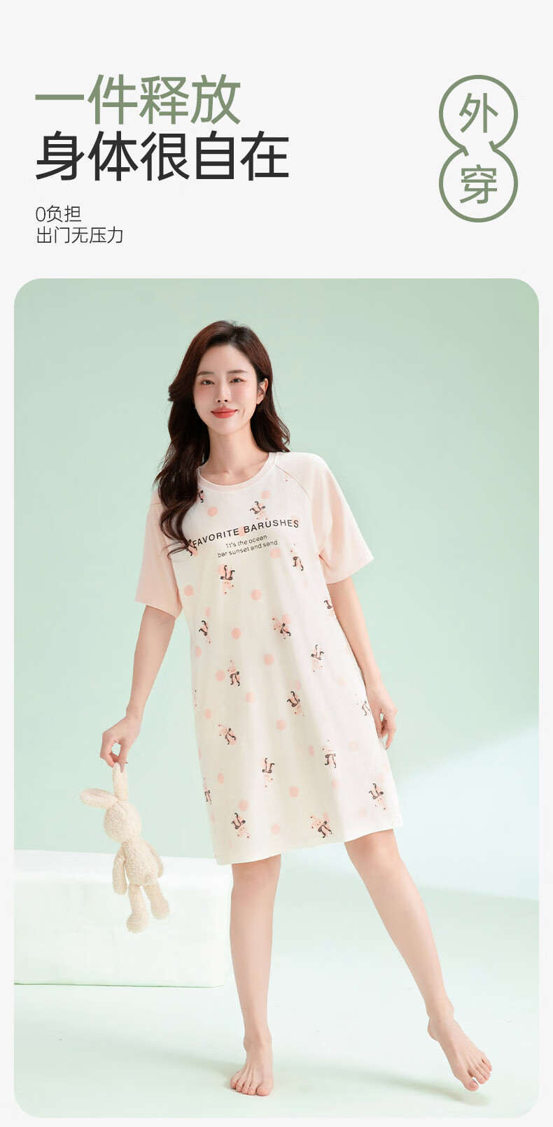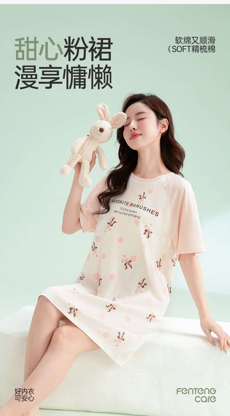 芬腾可安睡裙女【100%纯棉】2025新款圆领短袖休闲短裙女士家居服卡通少女 粉色 L
