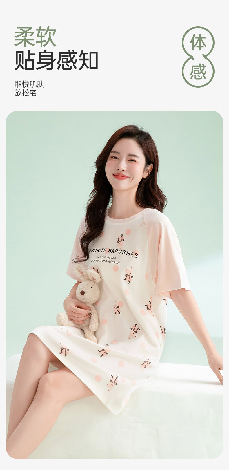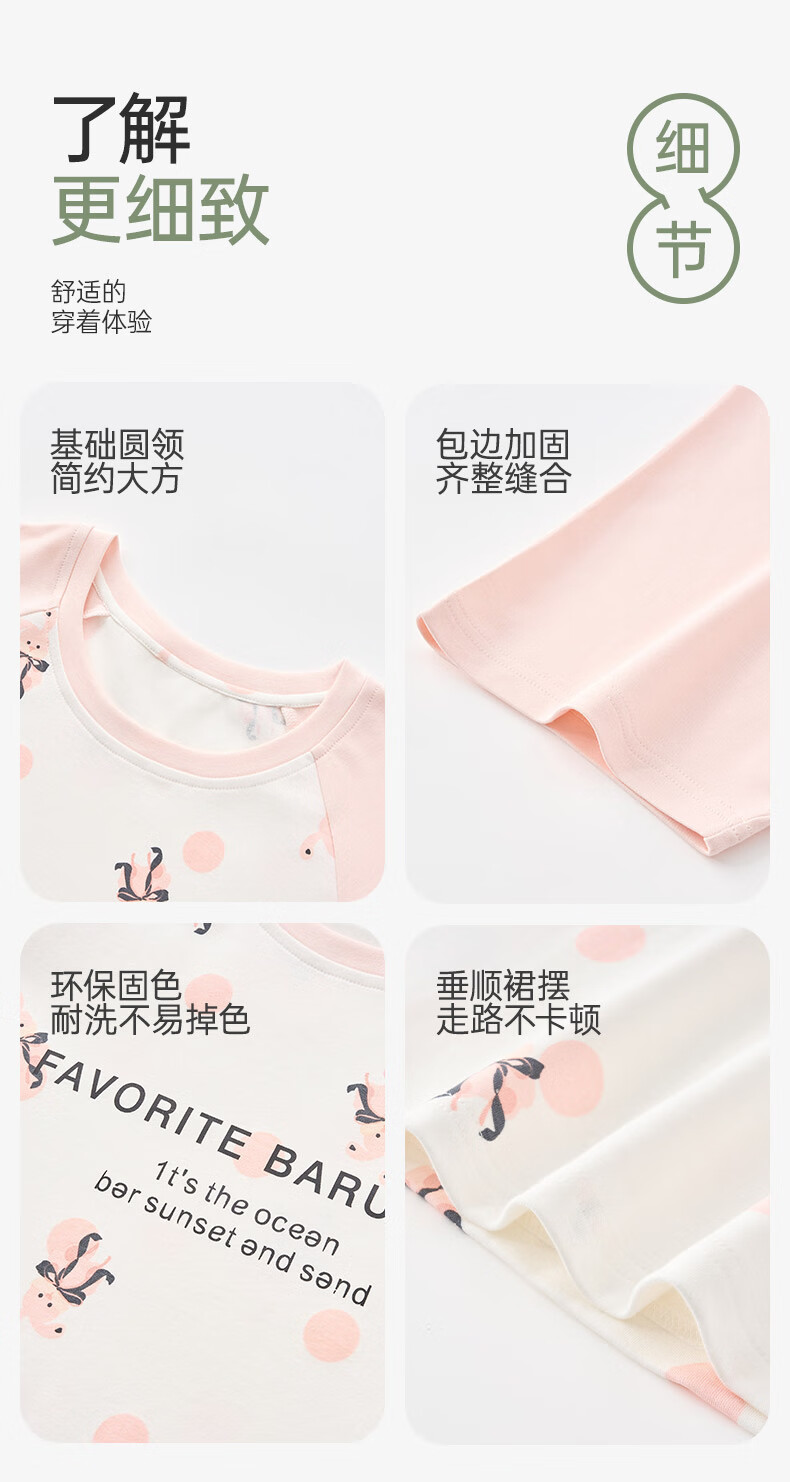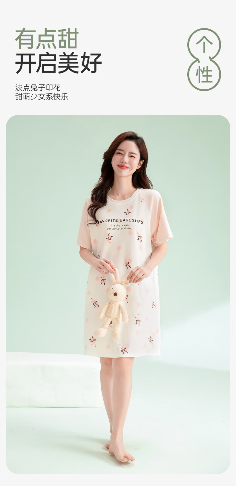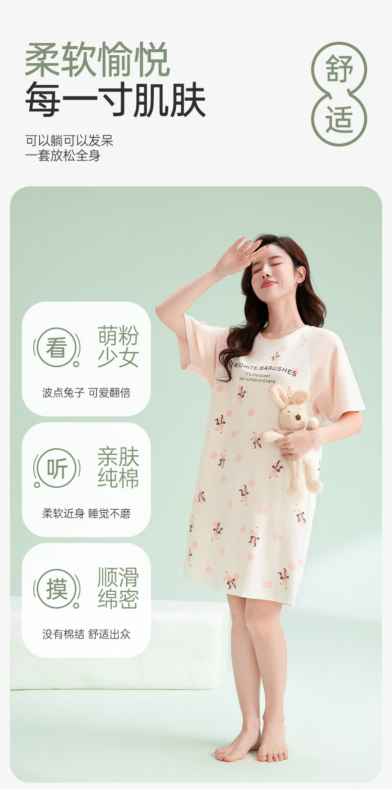 芬腾可安睡裙女【100%纯棉】2025新款圆领短袖休闲短裙女士家居服卡通少女 粉色 L