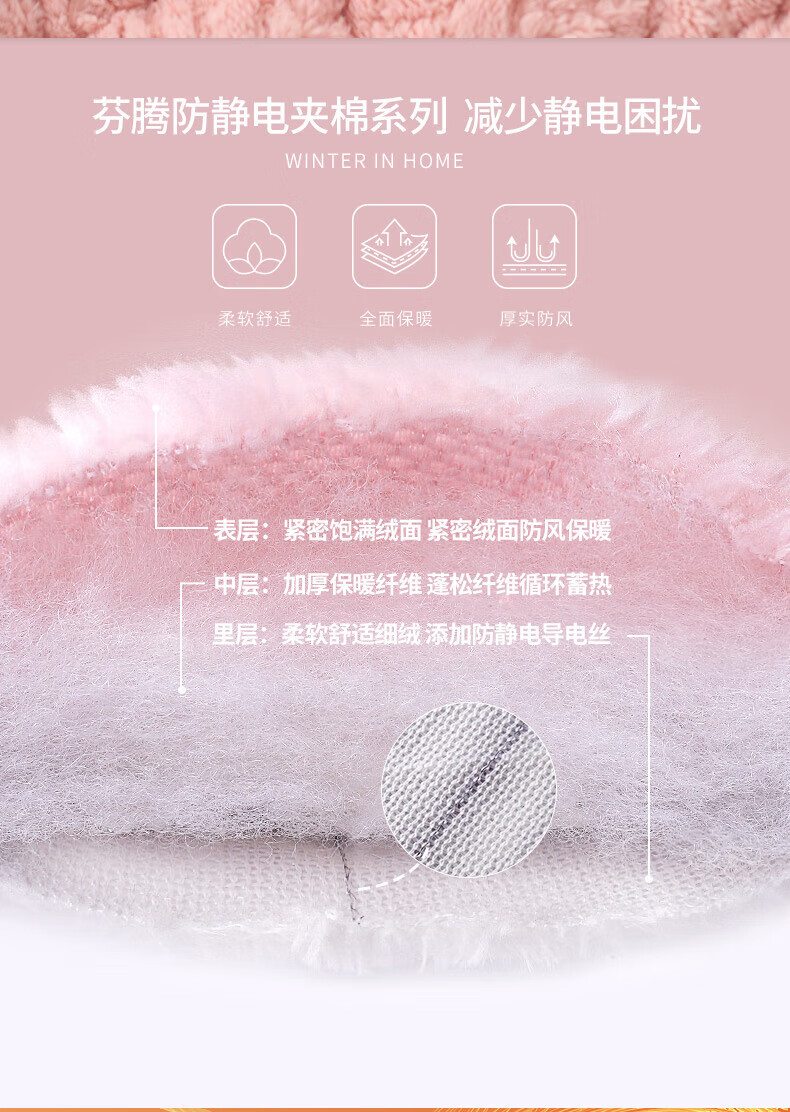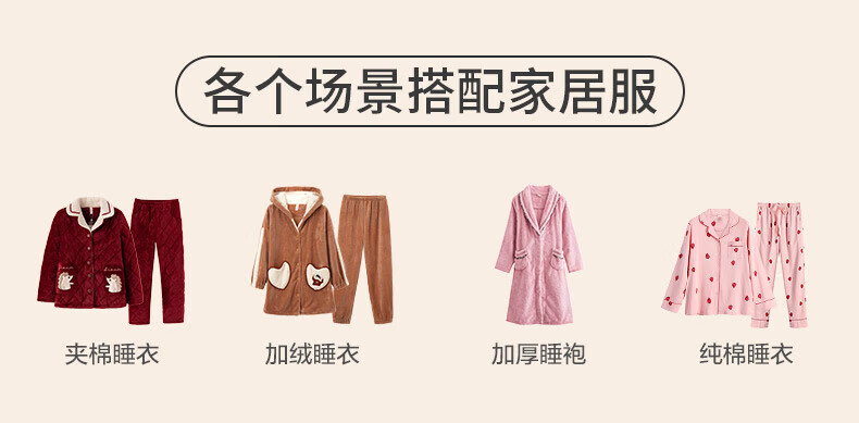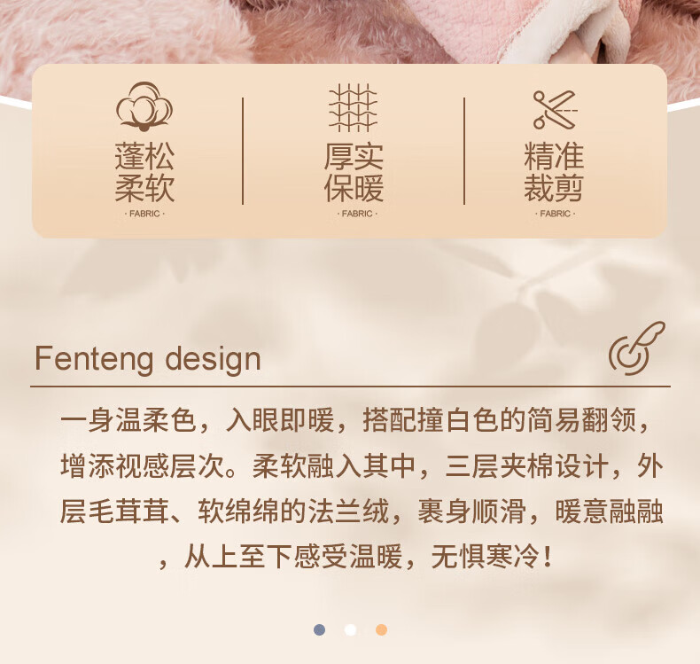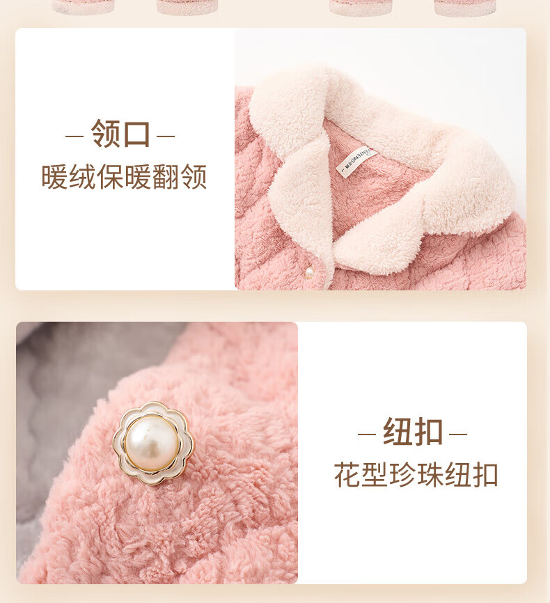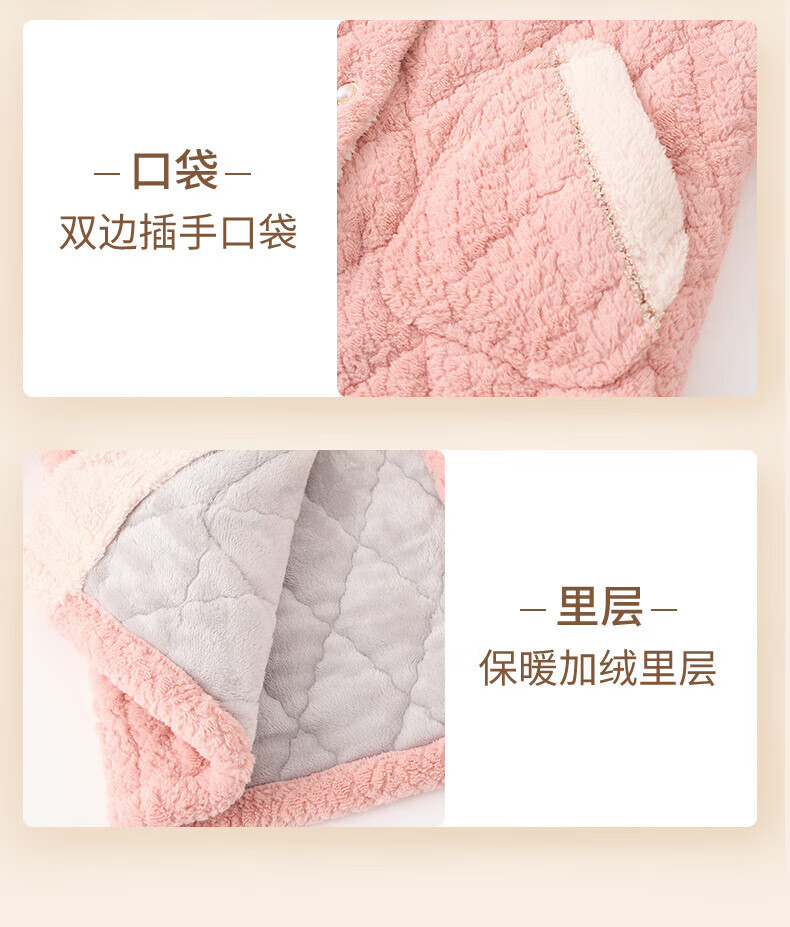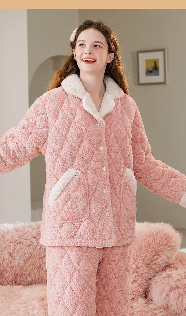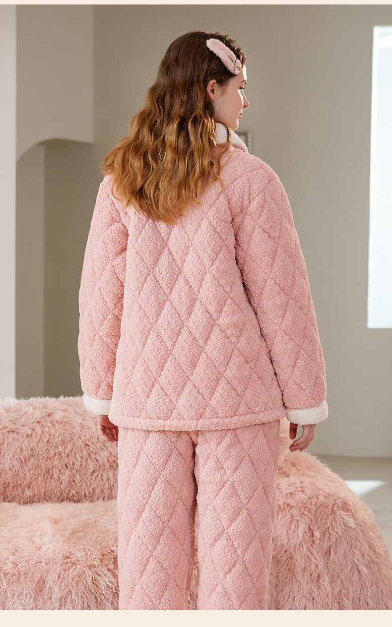 芬腾睡衣女冬季长袖新款三层夹棉加厚珊瑚绒翻领家居服套装 樱花粉 S