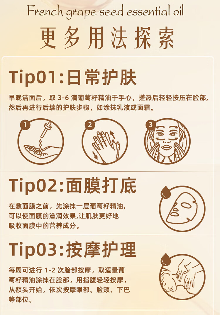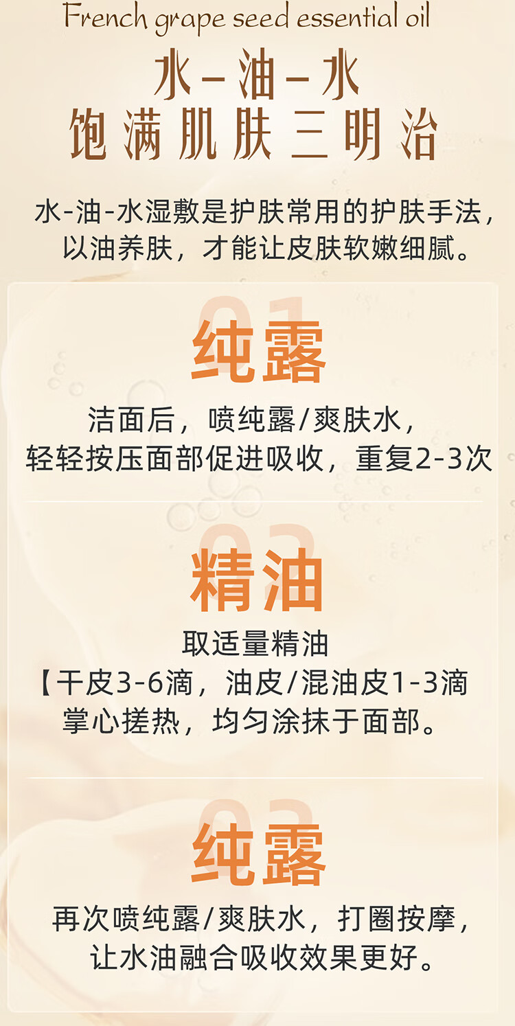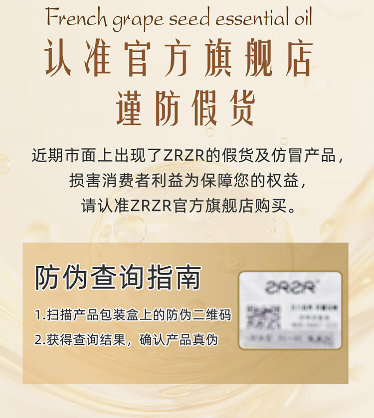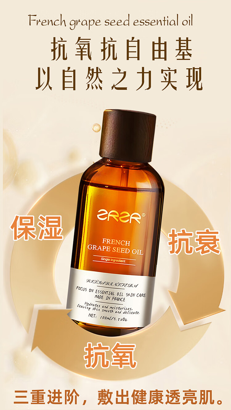 ZRZR法国葡萄籽精油50ml面部保湿抗皱紧致脸部护肤精华油以油养肤 50ml*1赠调配瓶*1+美容板*1