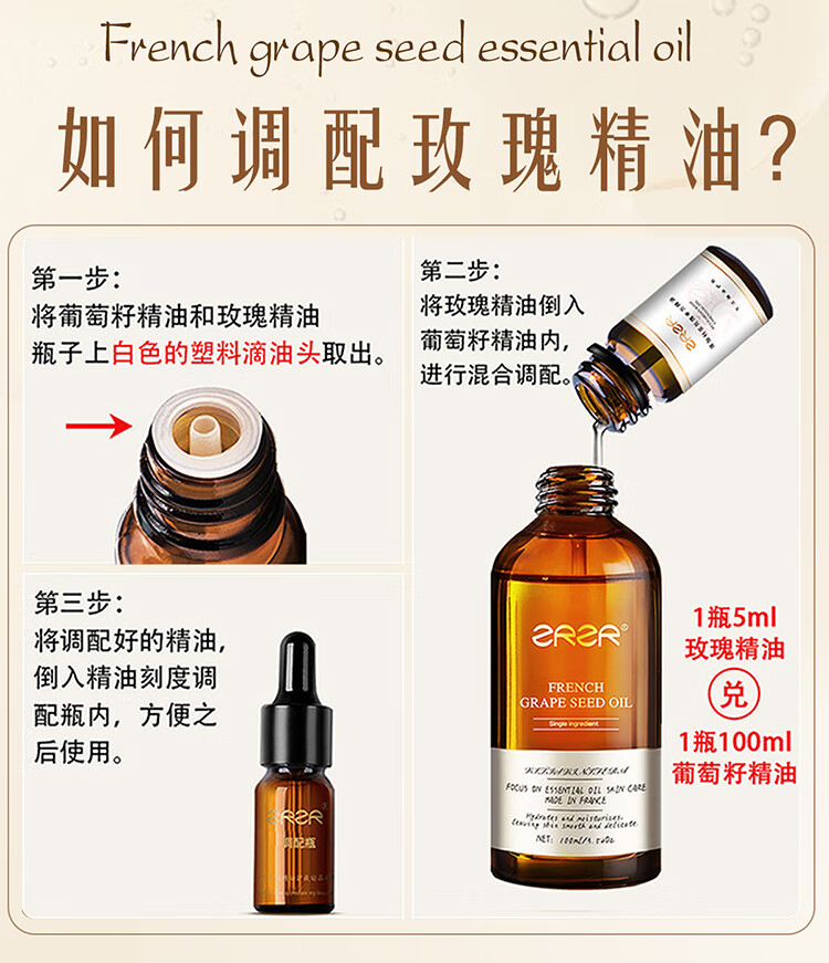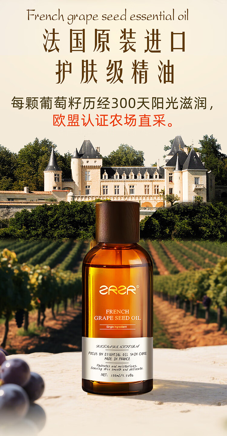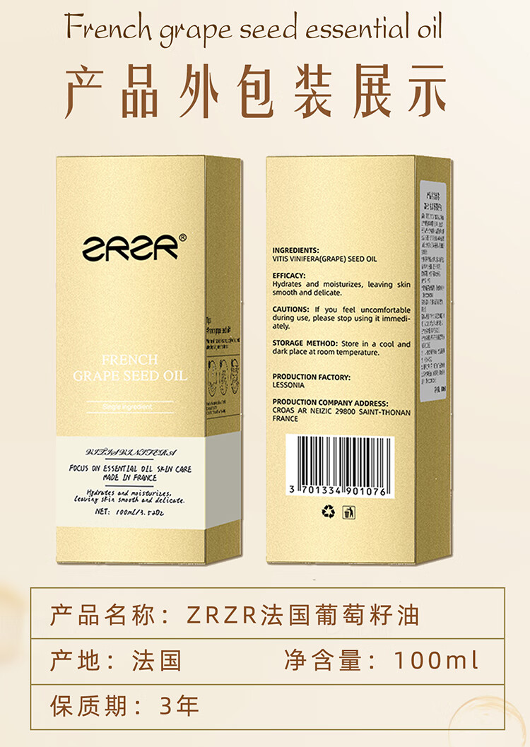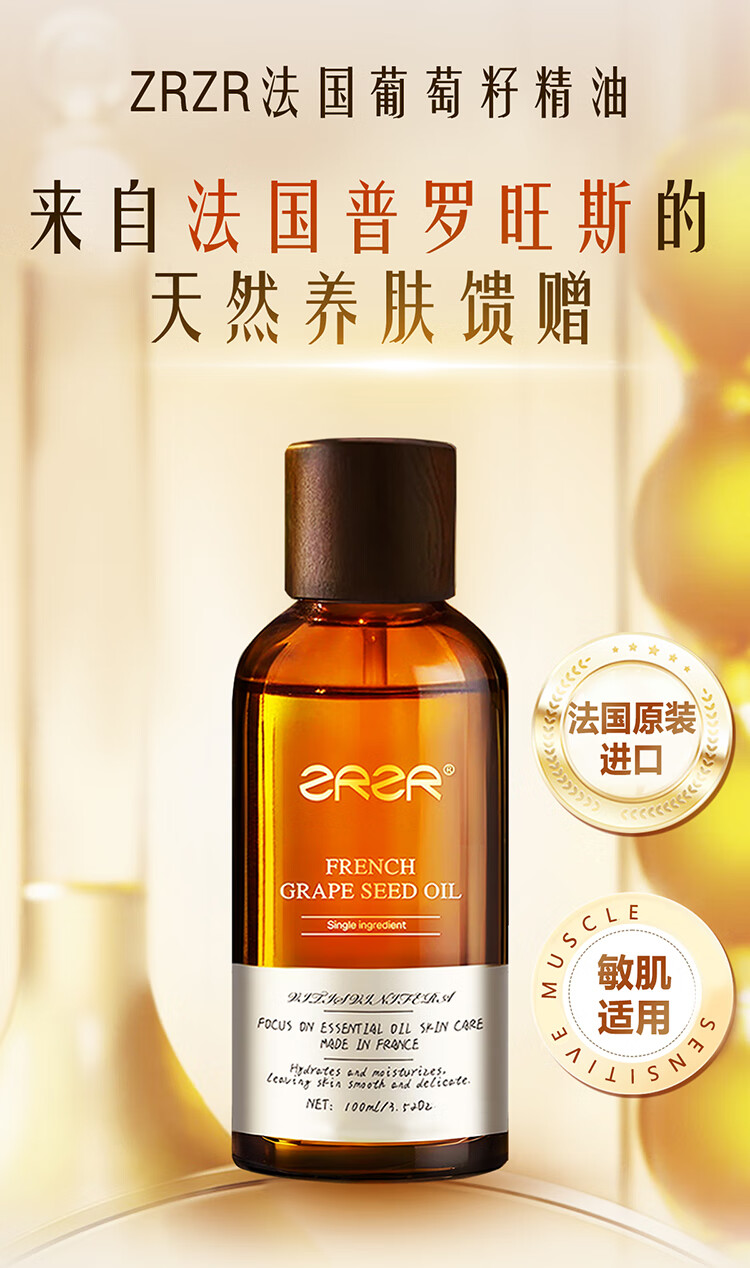 ZRZR法国葡萄籽精油面部保湿抗皱紧致脸部按摩护肤精华油以油养肤 100ml*2+50ml*1【赠调配瓶*1】