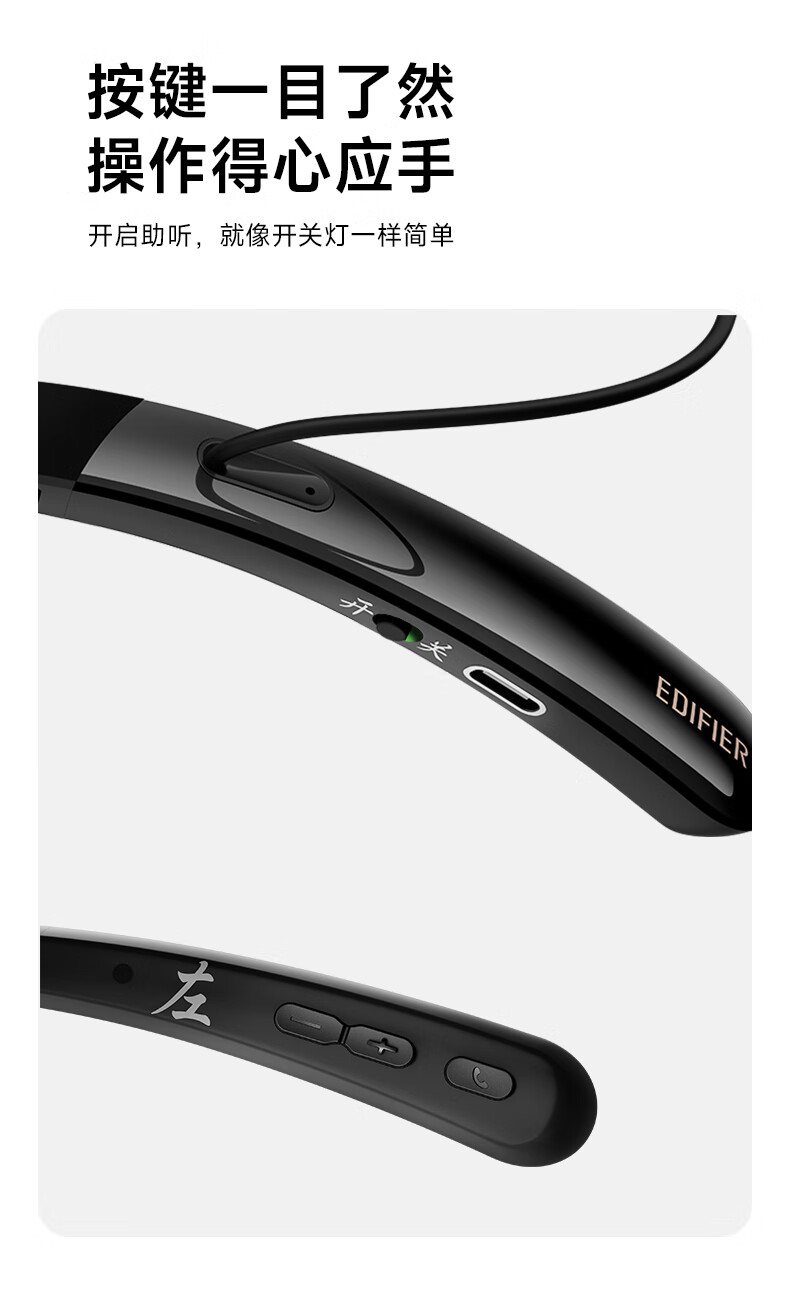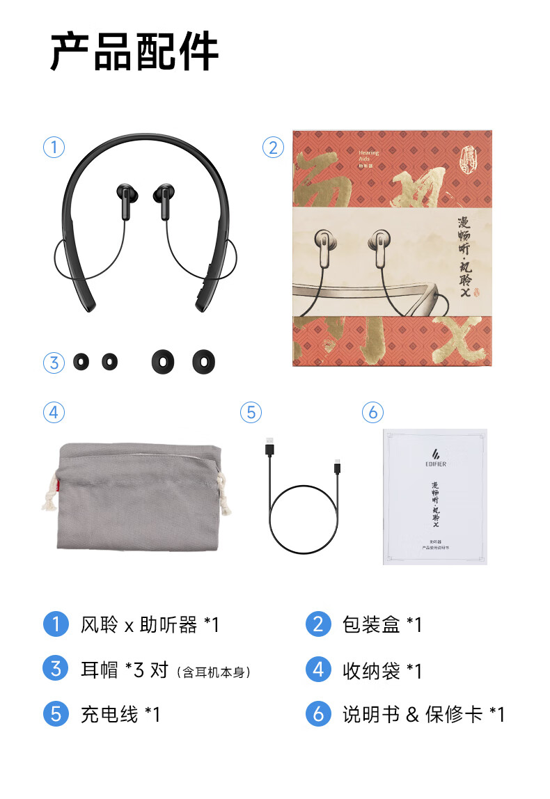 漫步者(EDIFIER)耳内式老年人专用中重度听损耳聋耳背隐形降噪助听器风聆X墨玉黑