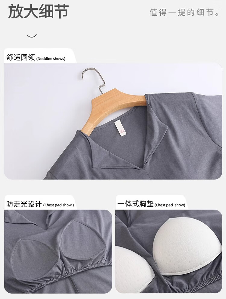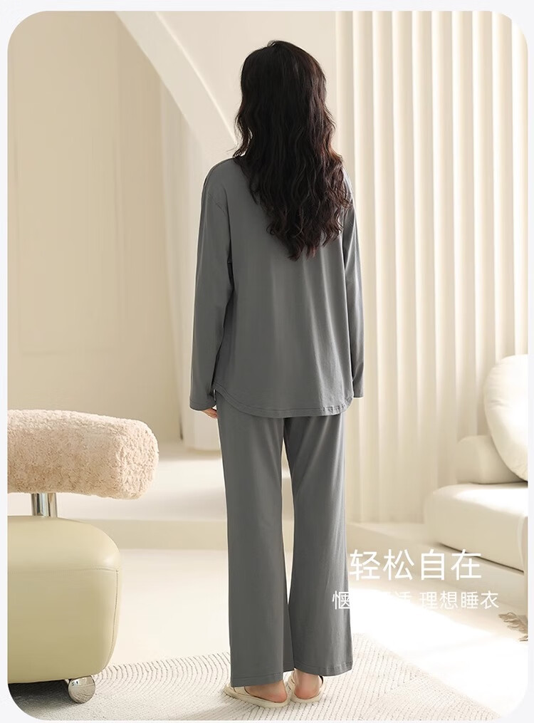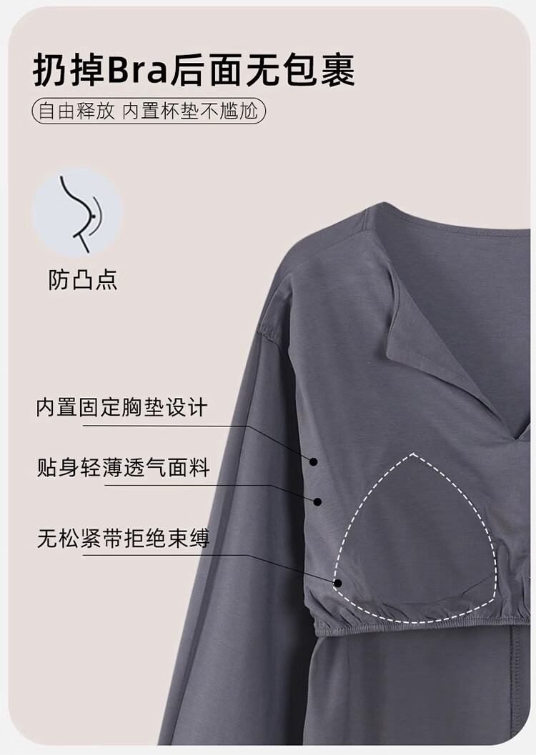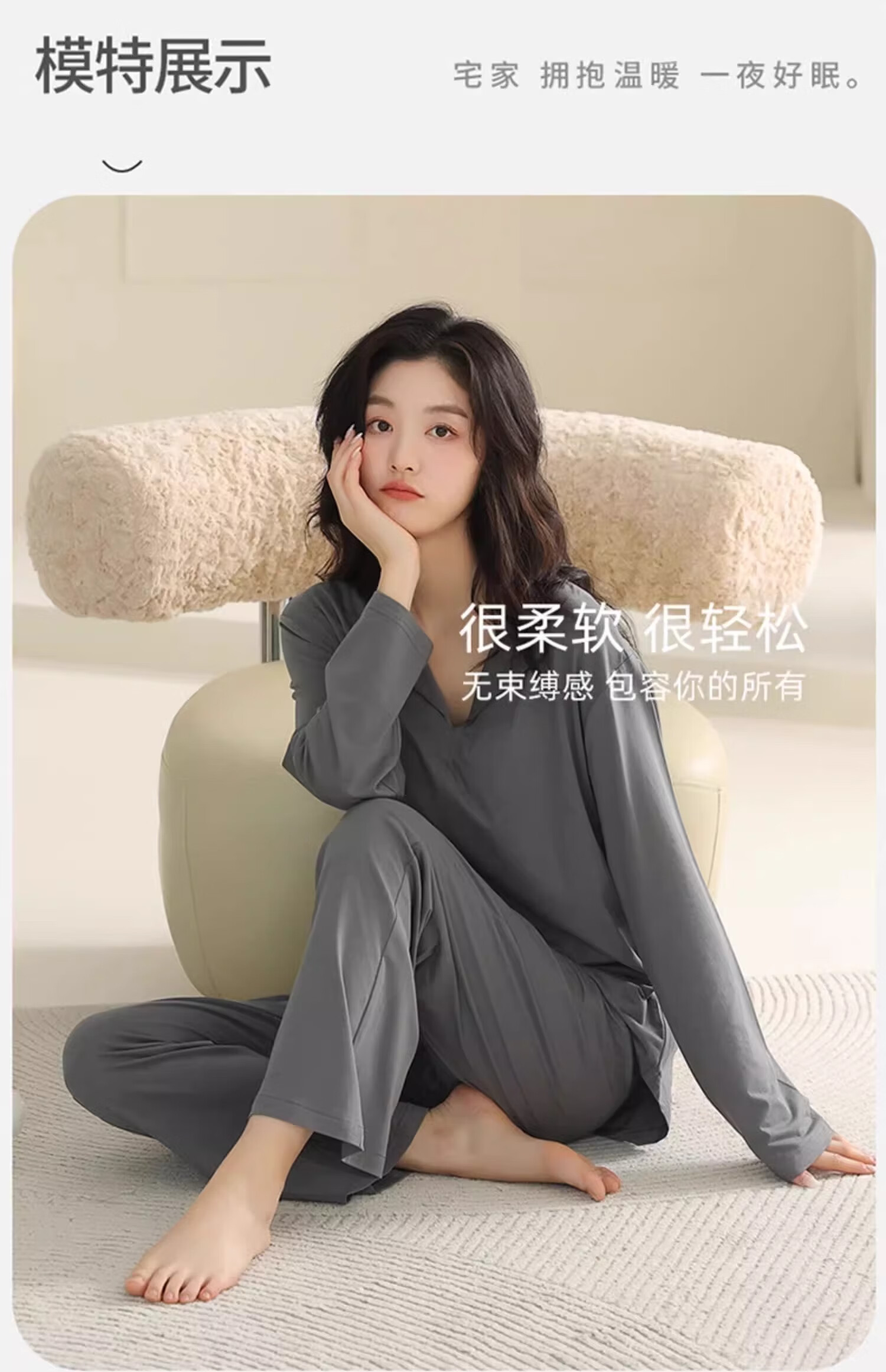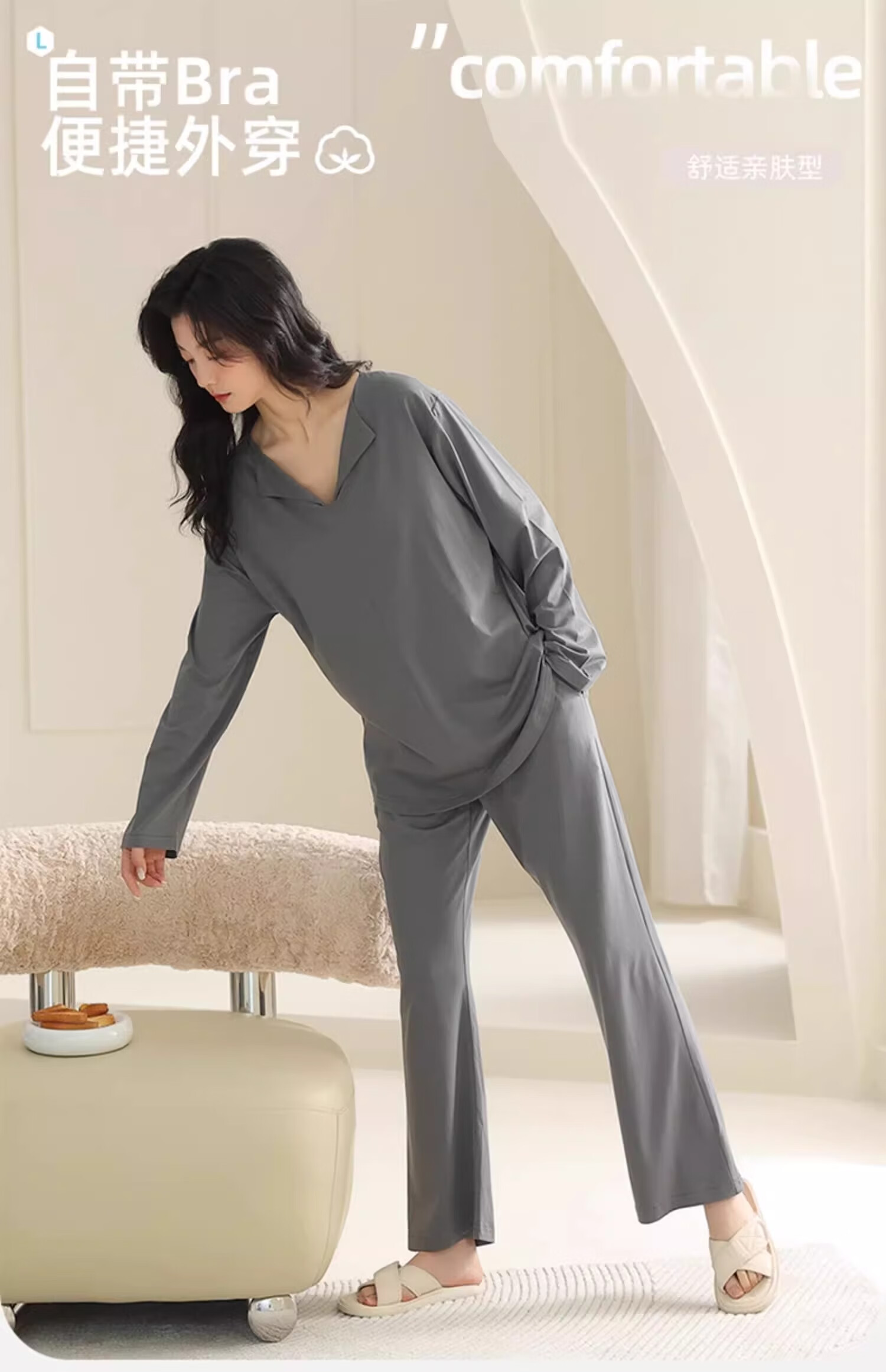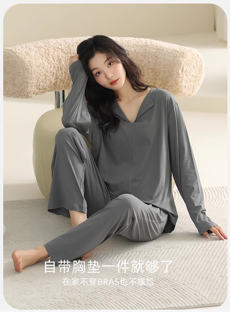 都市丽人都市丽人夏季睡衣女莫代尔薄款长袖女士春秋带胸垫一体家居服套装