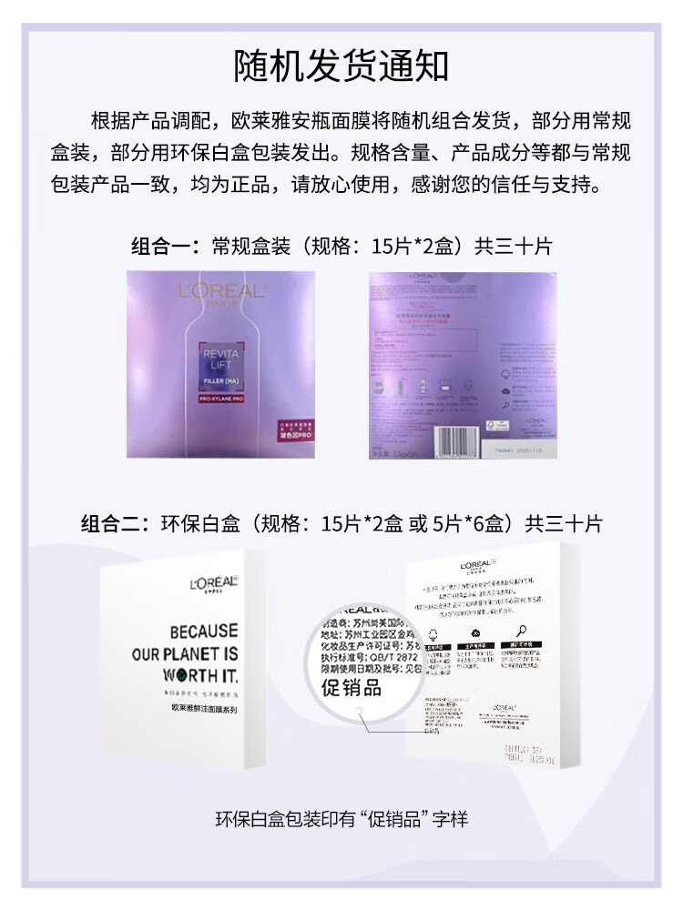 欧莱雅(LOREAL)玻尿酸水光充盈导入安瓶鲜注玻色因面膜5片*6盒(共30片) 保湿