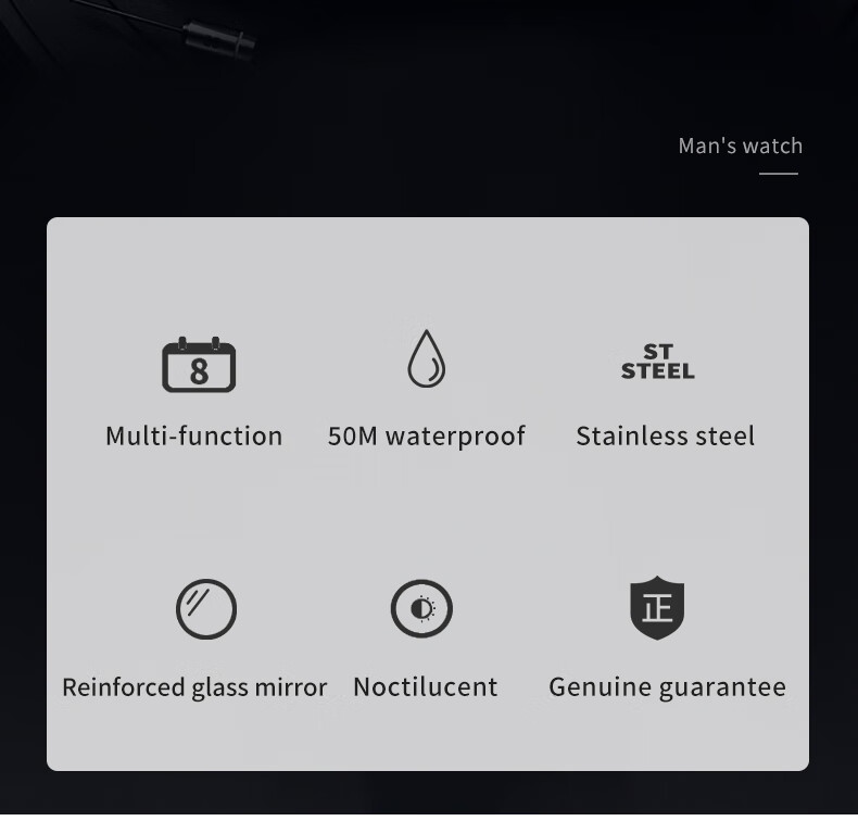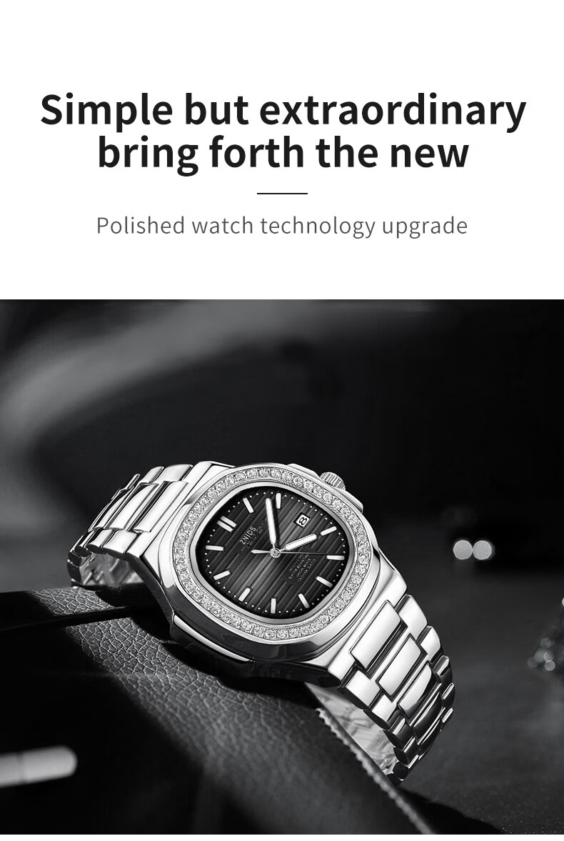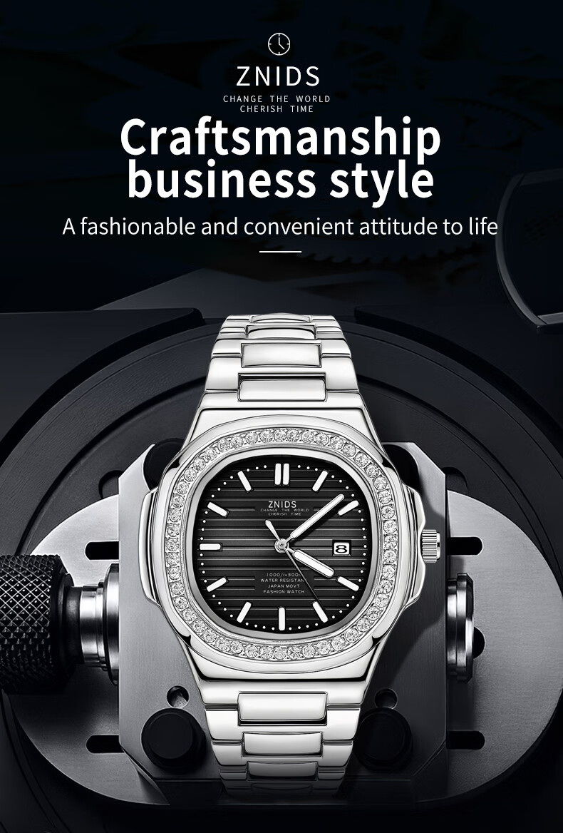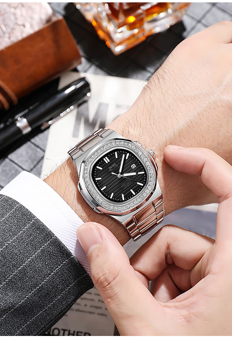 ZNIDS手表男学生鹦鹉系列韩版简约时尚防水夜光石英表 白钢黑面 41mm
