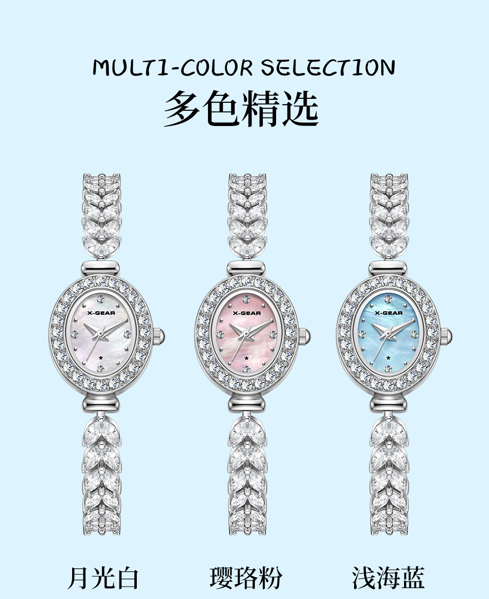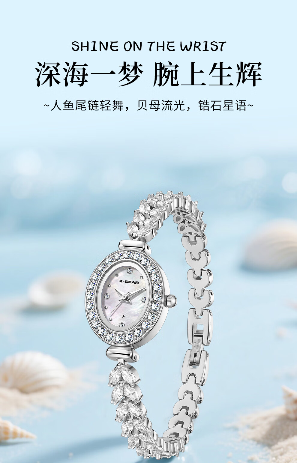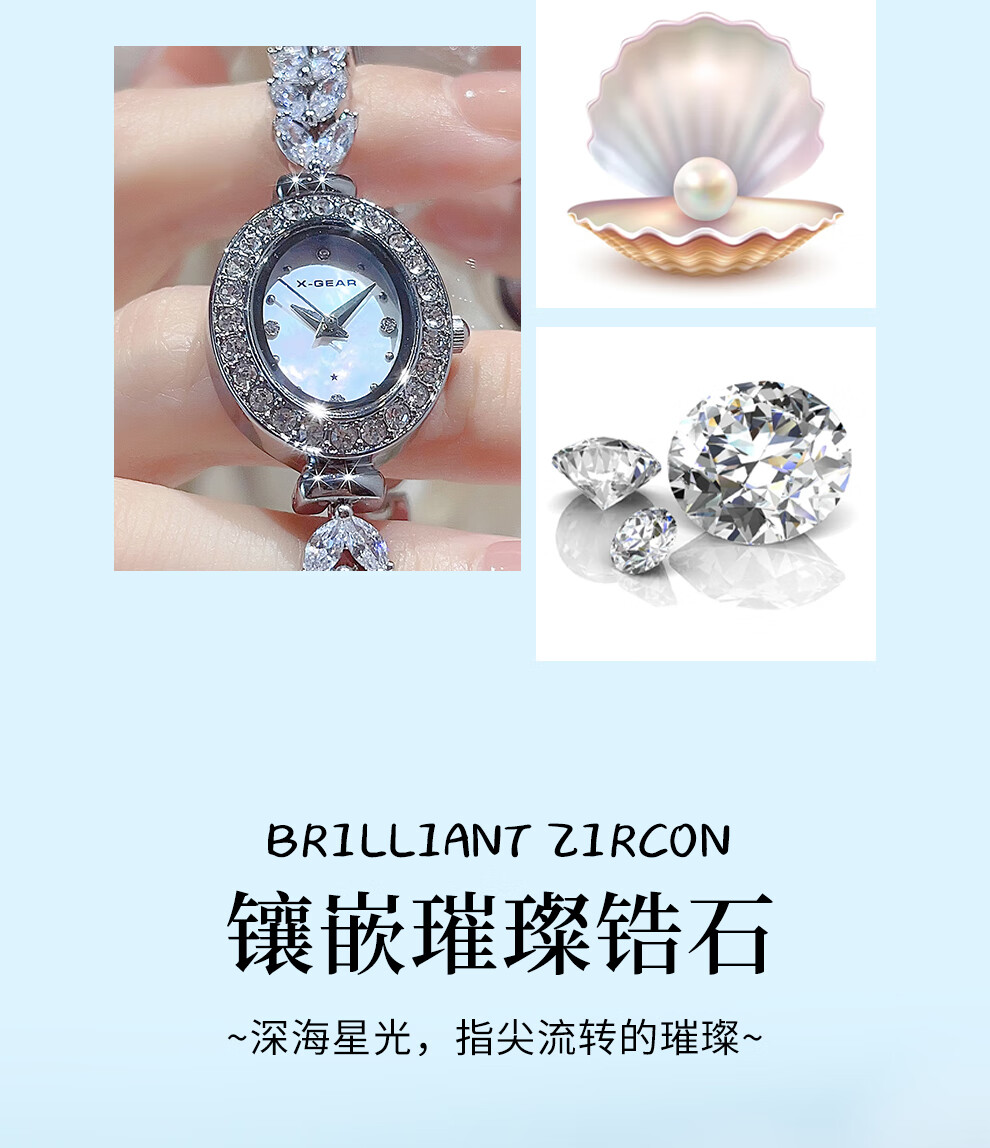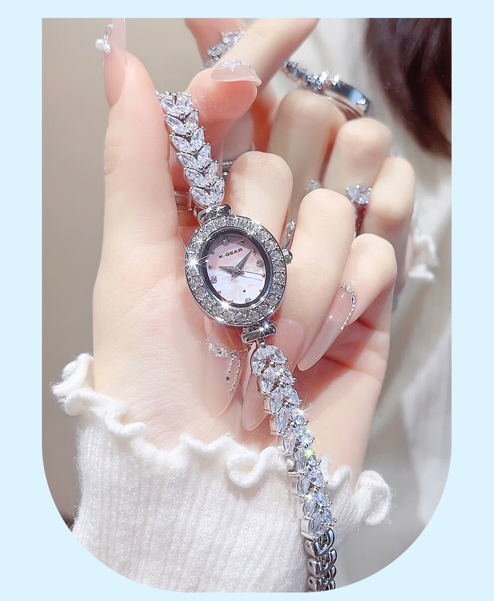 X-GEAR美人鱼系列手链手表小表盘椭圆镶钻女表贝母表盘优雅轻奢女士腕表