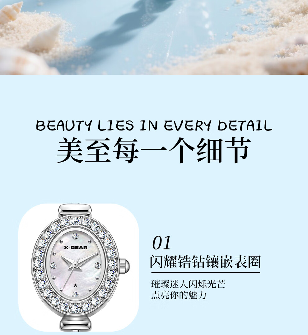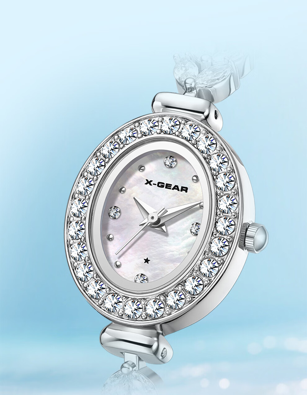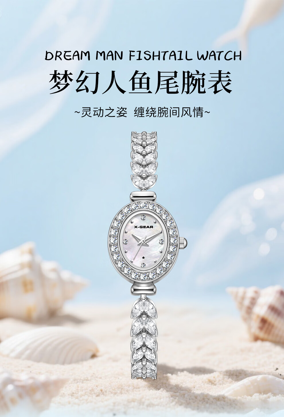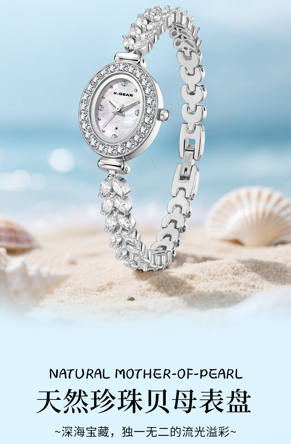 X-GEAR美人鱼系列手链手表小表盘椭圆镶钻女表贝母表盘优雅轻奢女士腕表