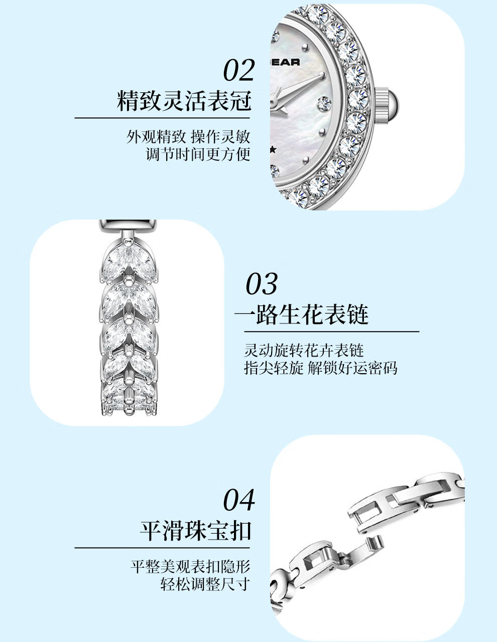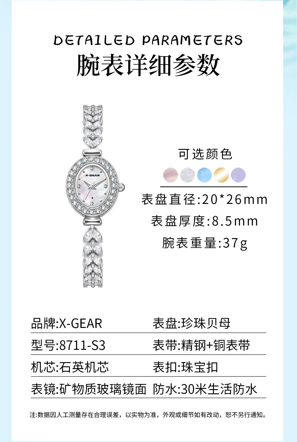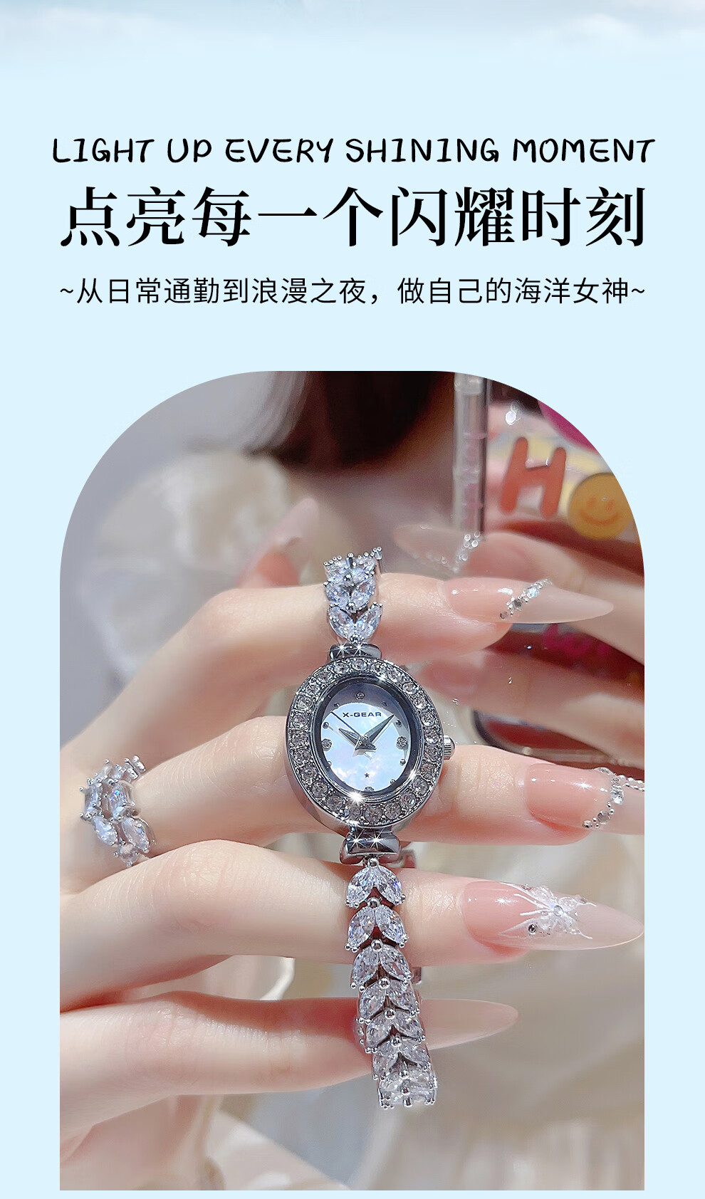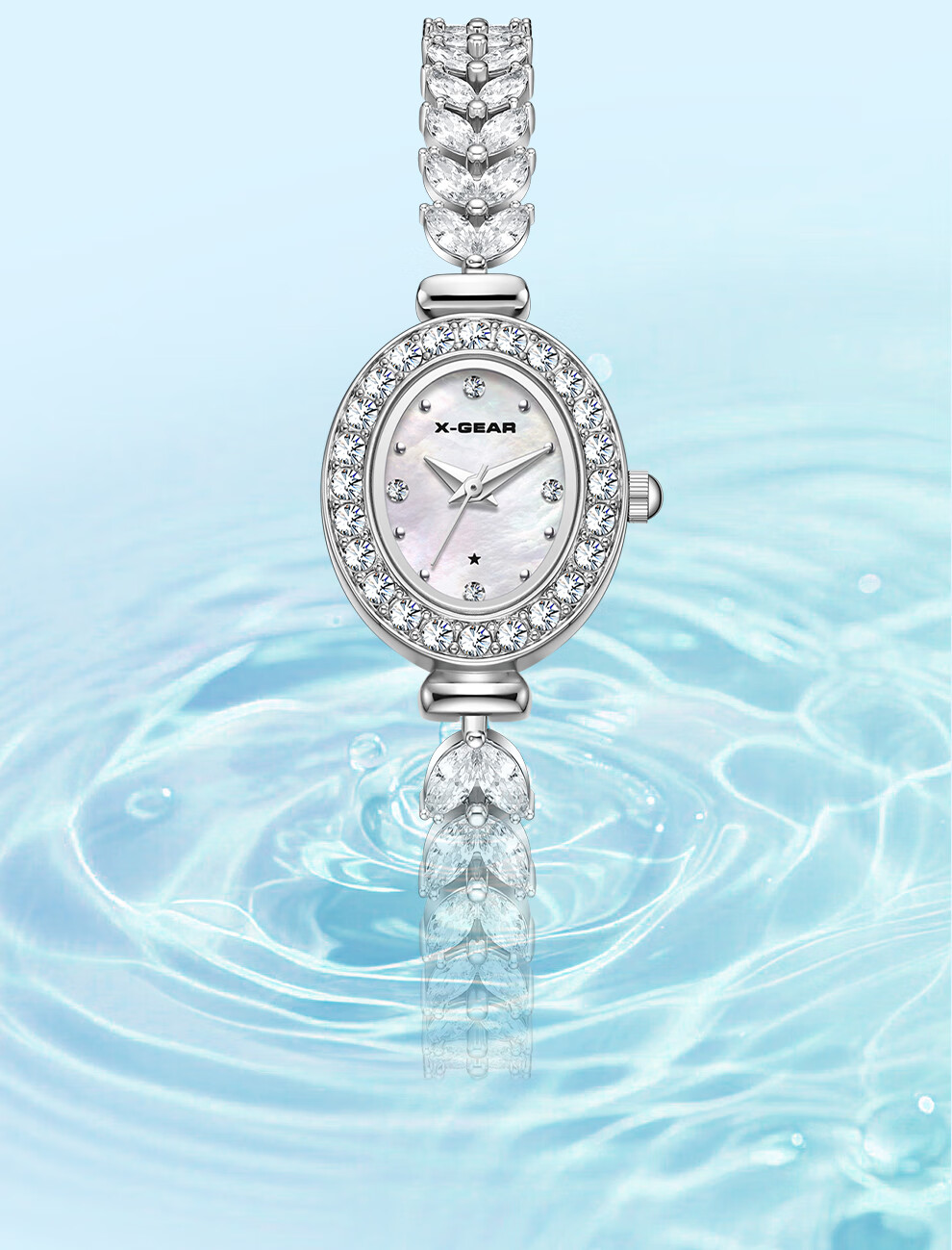 X-GEAR美人鱼系列手链手表小表盘椭圆镶钻女表贝母表盘优雅轻奢女士腕表