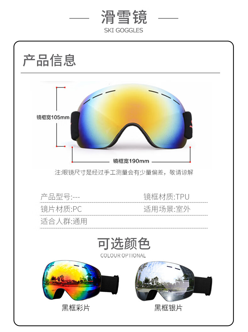 LOVECRAFT滑雪镜防雾-银片护目镜登山骑行眼镜近视可戴眼镜户外运动防风镜