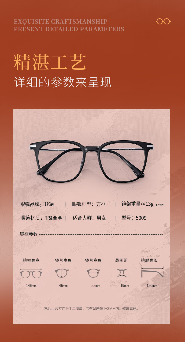 JFJN超轻防蓝光眼镜素颜大框女款近视眼镜男款眼镜框专业可配度数5009