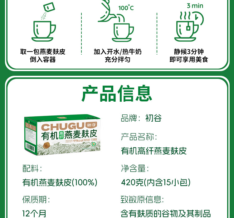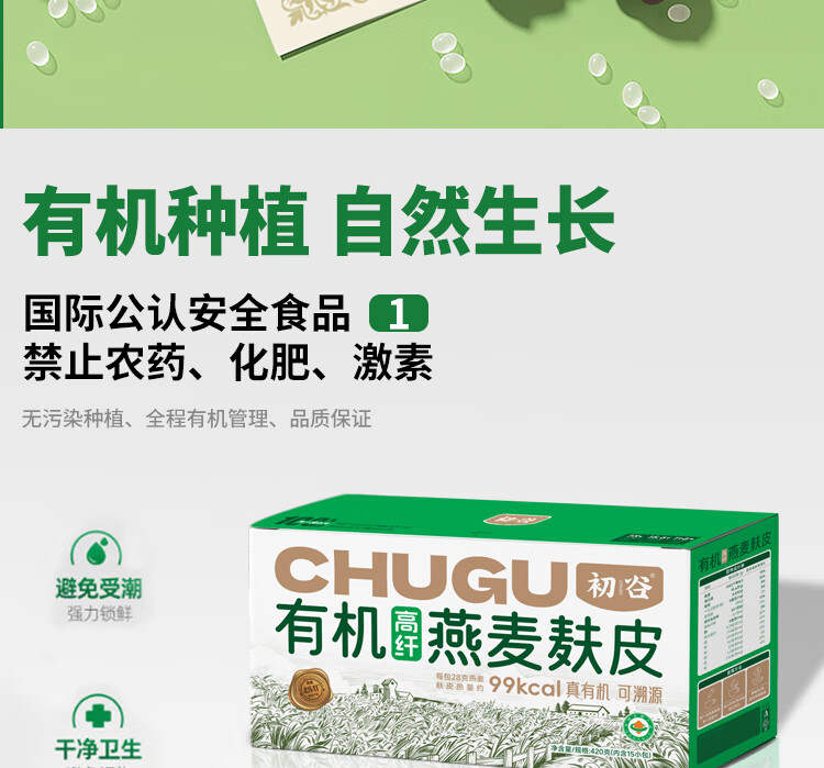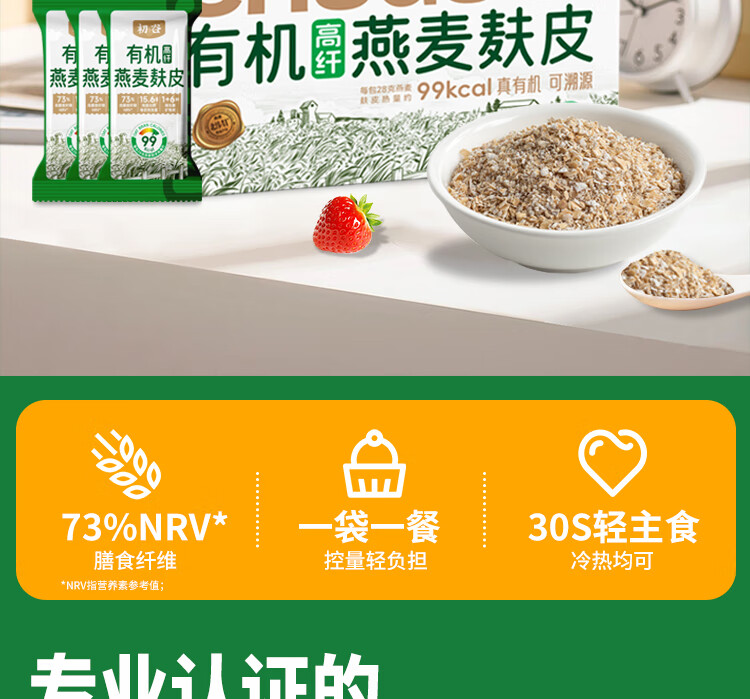 初谷有机燕麦麸皮无添加蔗糖拌酸奶正品高纤维代餐冲泡即食420g