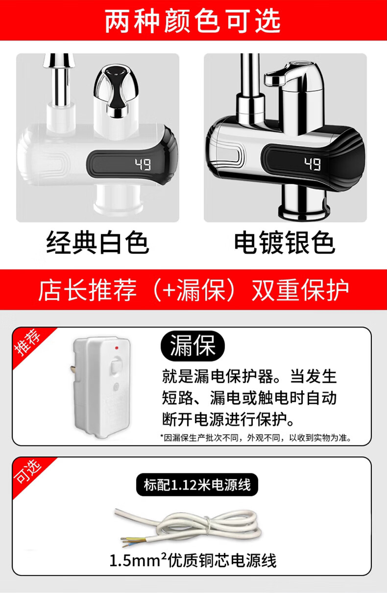 Rosecret【德国】电热水龙头厨房热水智能数显家用快速加热专用即热式水龙头冷热小厨宝下进水速热热水器 电热龙头【漏保+万向头+置物架】侧进水丨白色