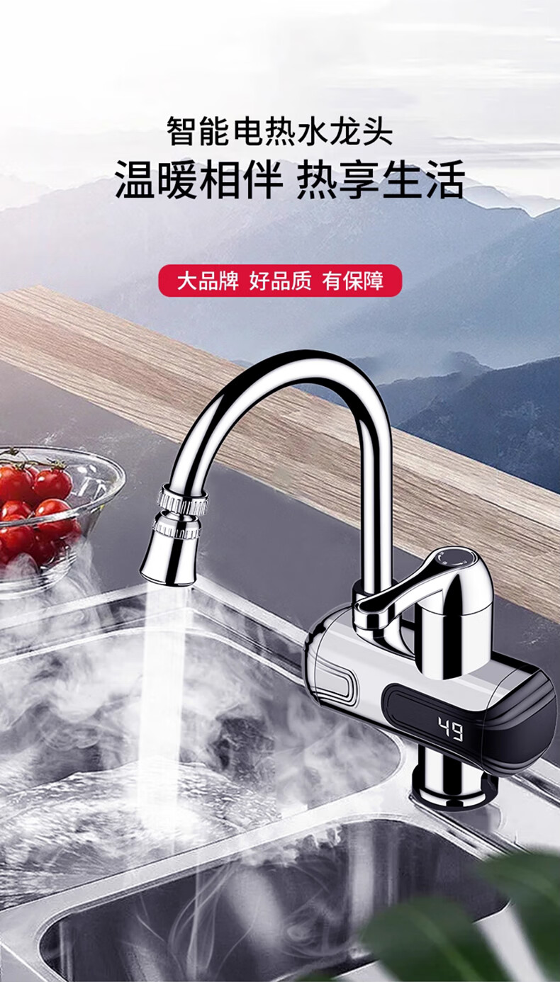 Rosecret【德国】电热水龙头厨房即热式电热水器快速加热水龙头小厨宝家用速热宝冷热二合一数显防漏电龙头 智能数显款【冷热两用+不锈钢管】带漏保插头