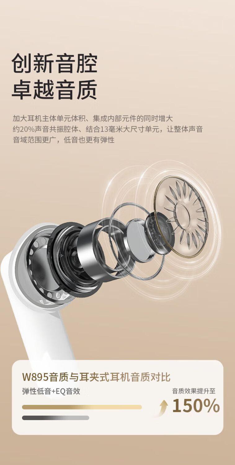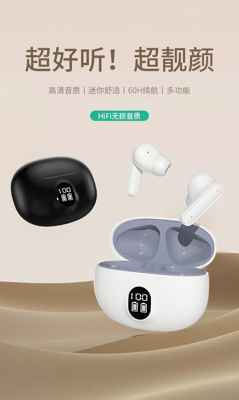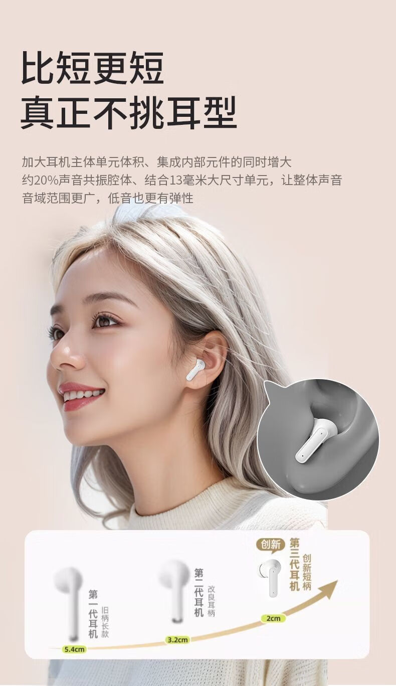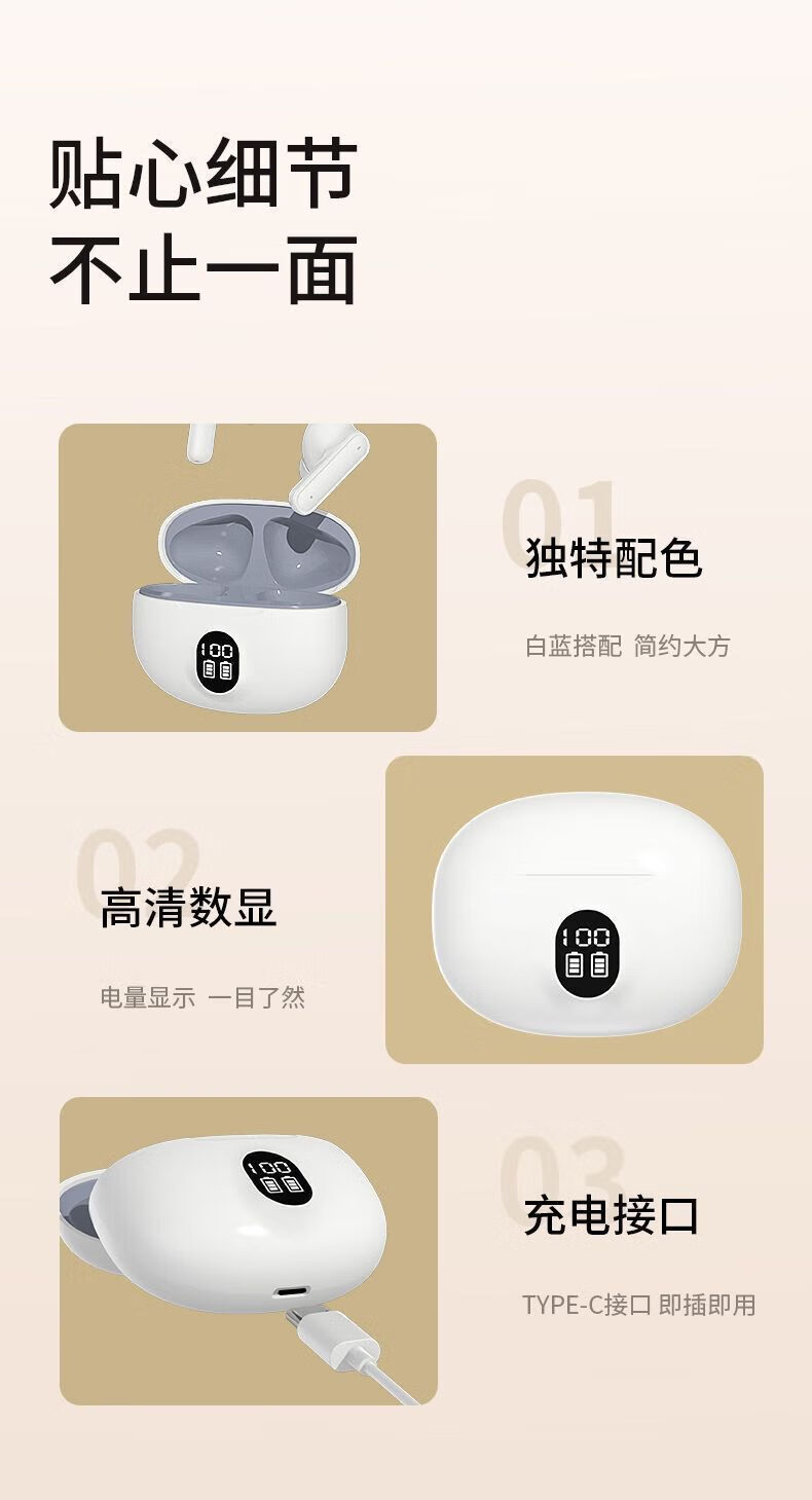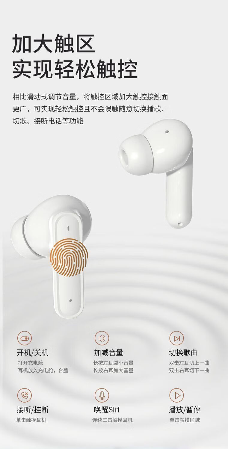 降噪蓝牙耳机入耳式适用华为苹果耳机大馒头战鼓耳机 皓月白
