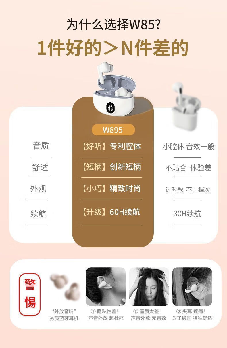 品胜C6睡眠蓝牙耳机超薄无线睡觉专用侧睡躺舒适不压耳降噪助眠隔音耳塞隐形不咯耳长续航 蜜桃粉【舒适佩戴 侧睡不压耳】