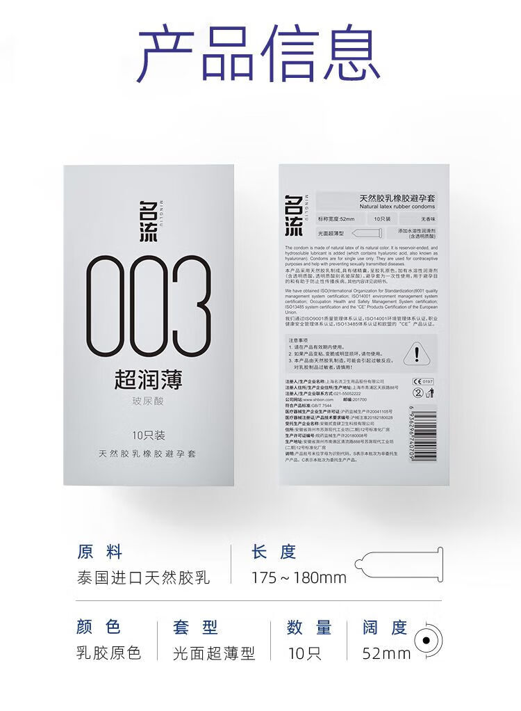 通用003套男性用玻尿酸水润免洗安全套特薄裸入套 润滑[30只]水润清爽 不油腻
