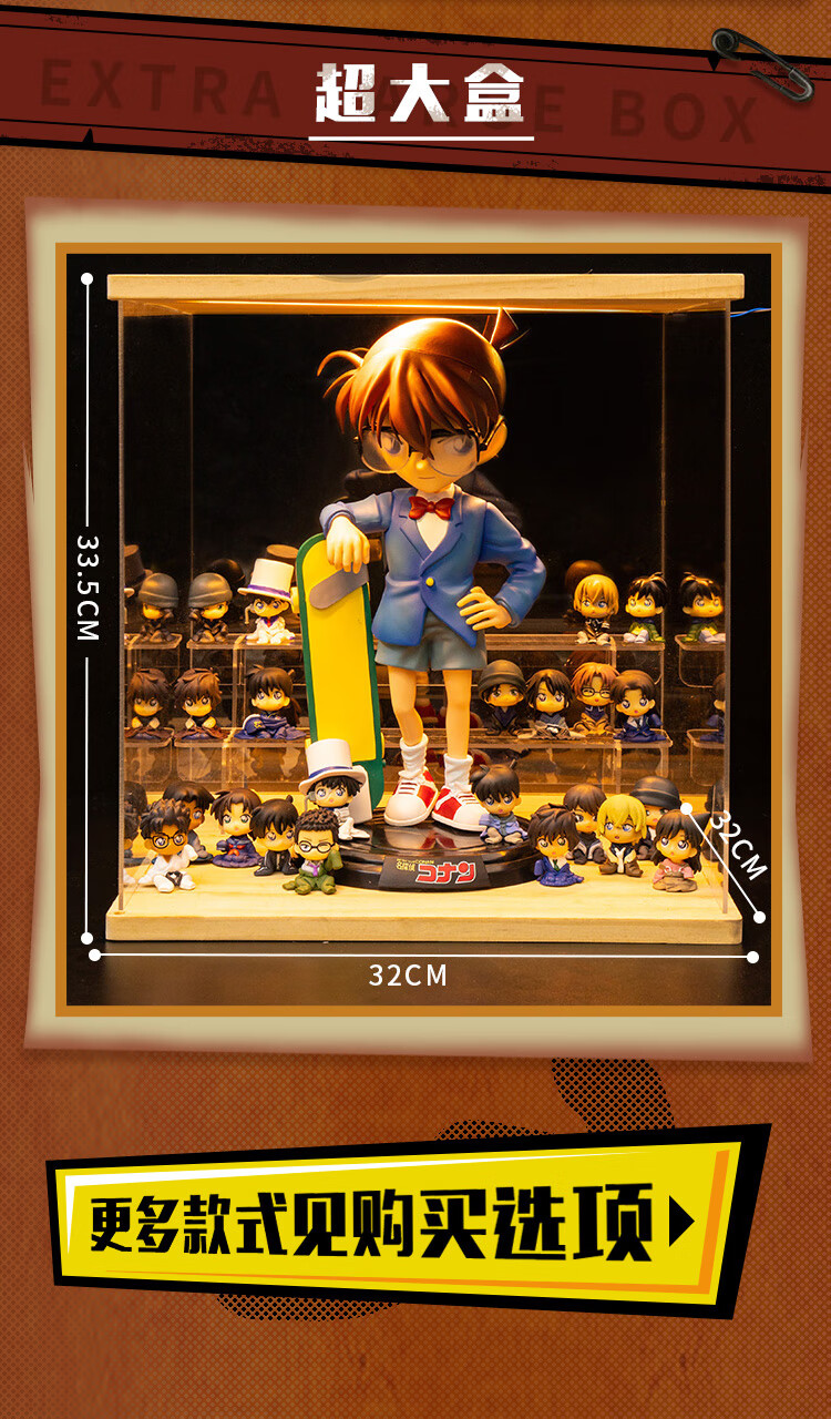 趣球柯南手办生日礼物全套名侦探工藤新一毛利兰灰原哀公仔基德周边 滑板柯南+扭蛋1234弹(新大盒) 公仔+LED展示盒+礼袋