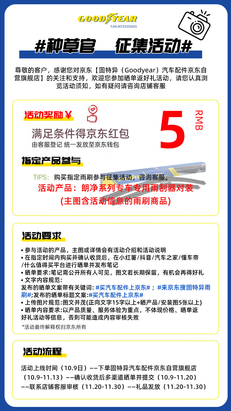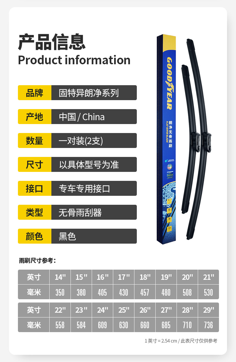 固特异(Goodyear)特斯拉MODEL3雨刮器片Model Y专用无骨胶条TESLA毛豆3新能源1对装