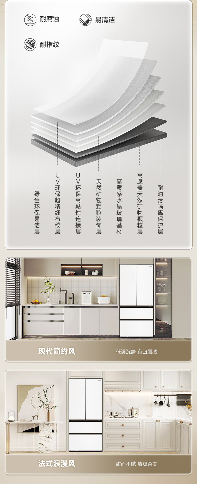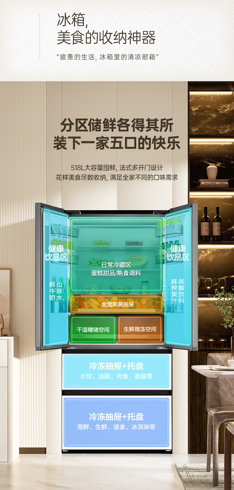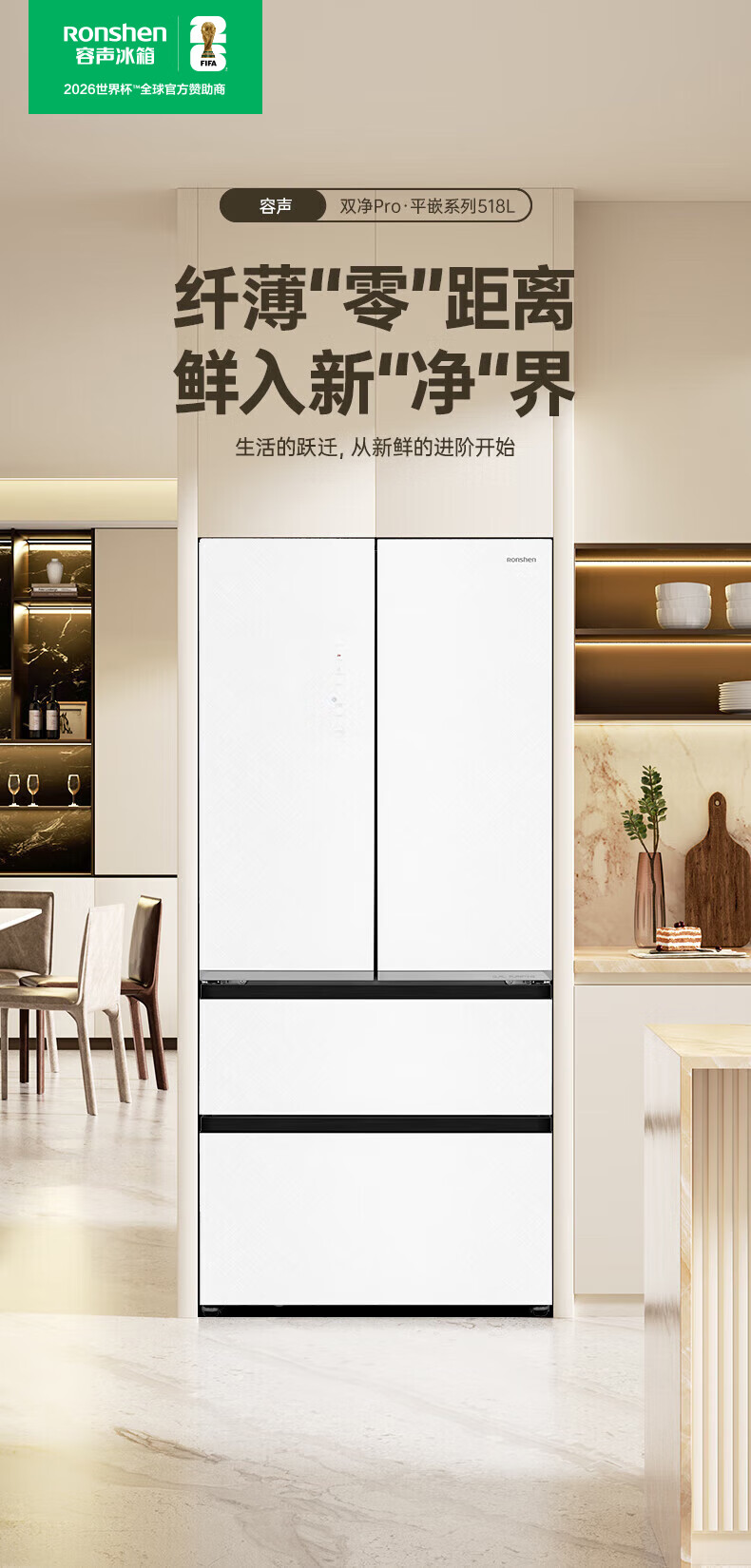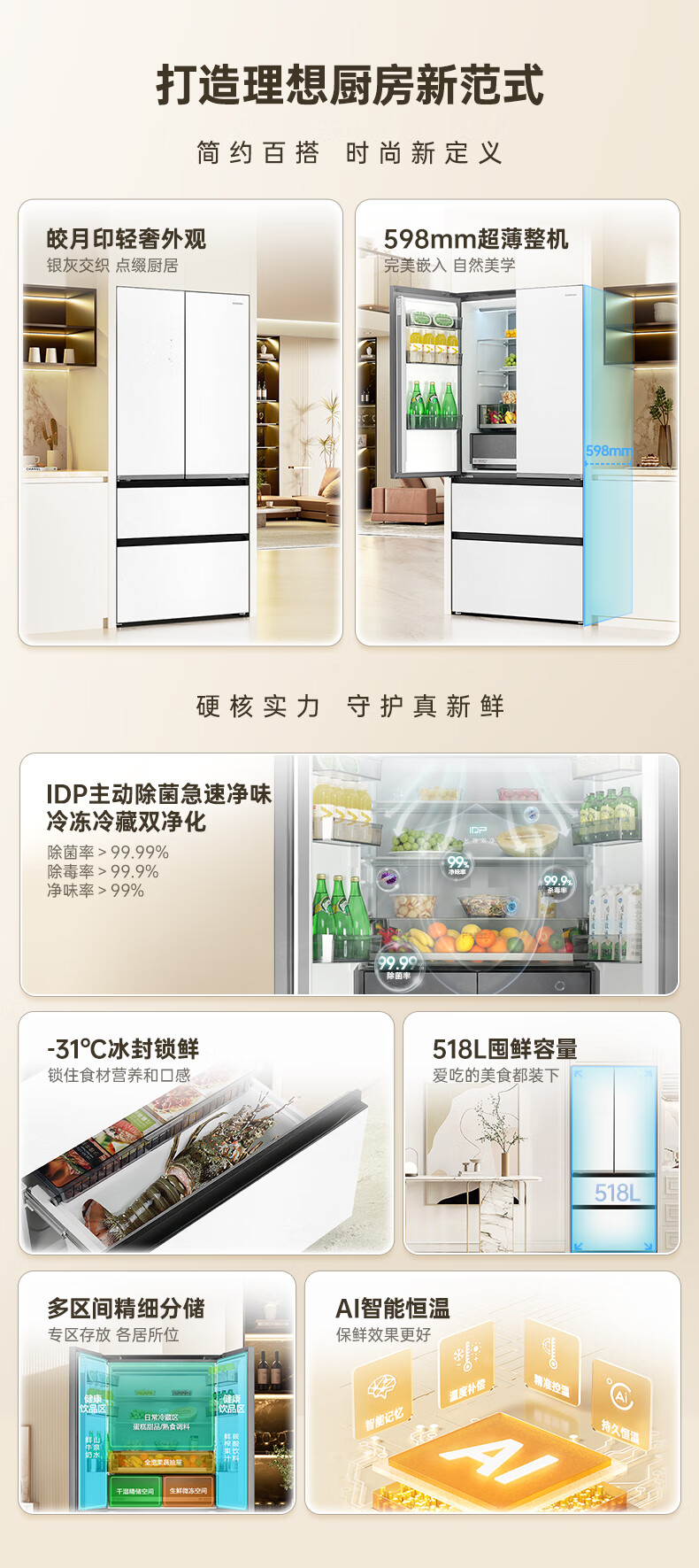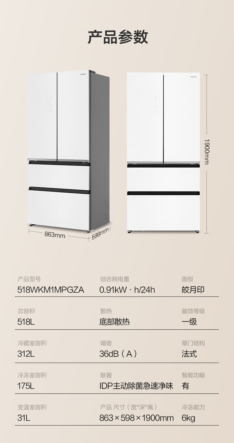 容声518双净法式多门四开门超薄嵌入式玻璃门冰箱家用BCD-518WKM1MPGZA皎月印国家补贴商场同款