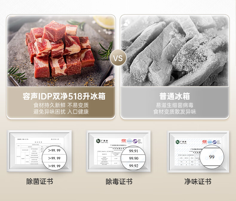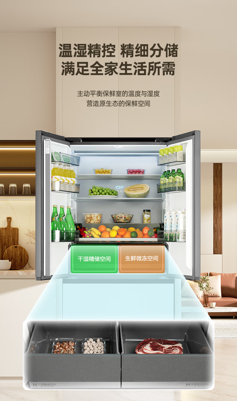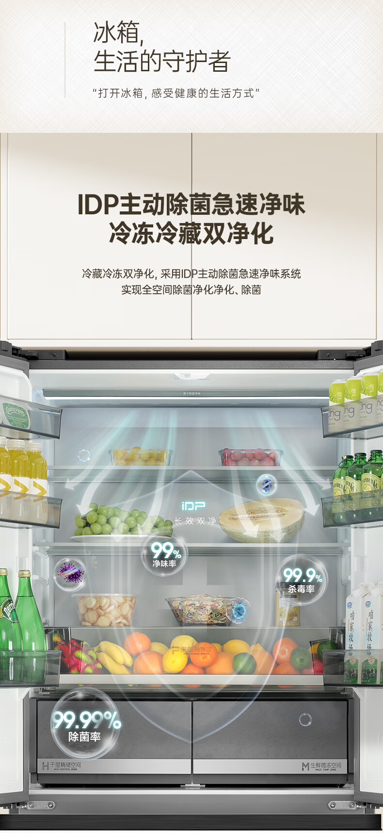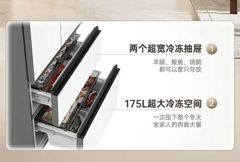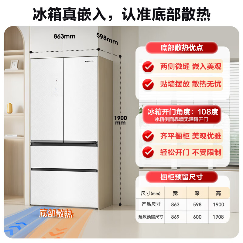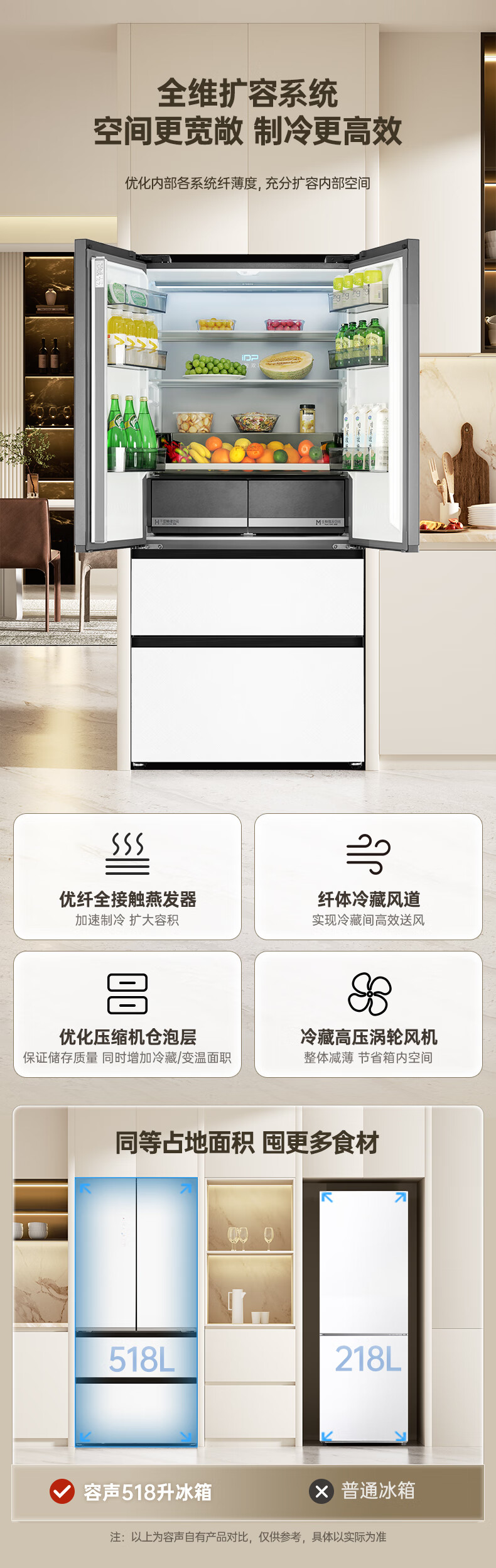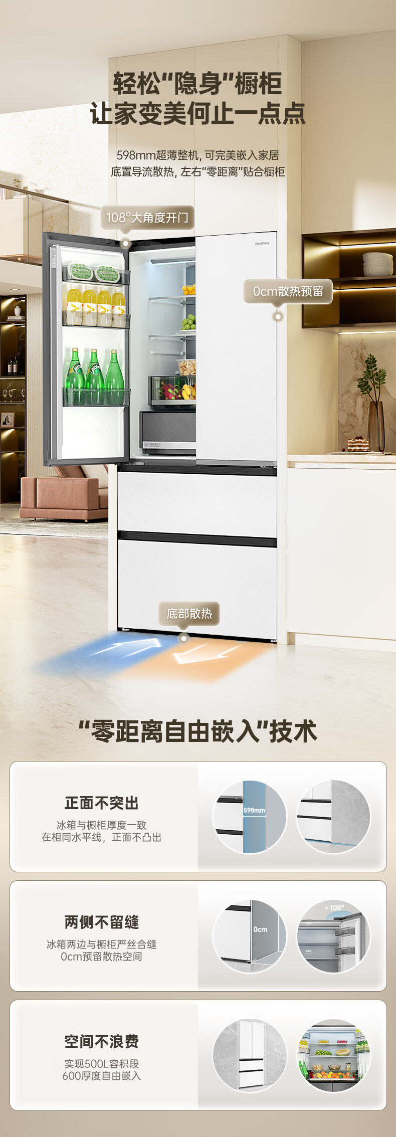 容声518双净法式多门四开门超薄嵌入式玻璃门冰箱家用BCD-518WKM1MPGZA皎月印国家补贴商场同款