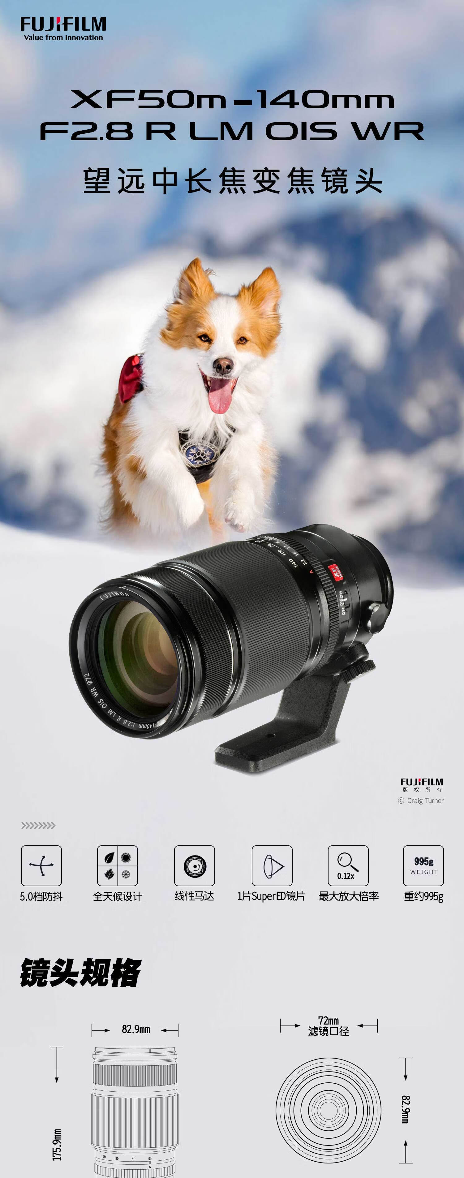 富士(FUJIFILM)XF50-140mm F2.8 R LM OIS WR 旅游变焦镜头 全天候设计 广角长焦都能拍 适用于XT30 XT3