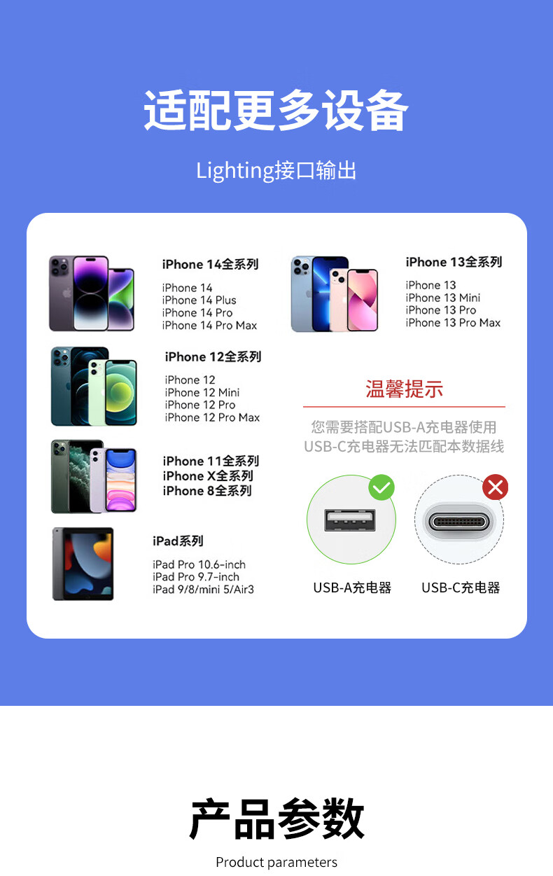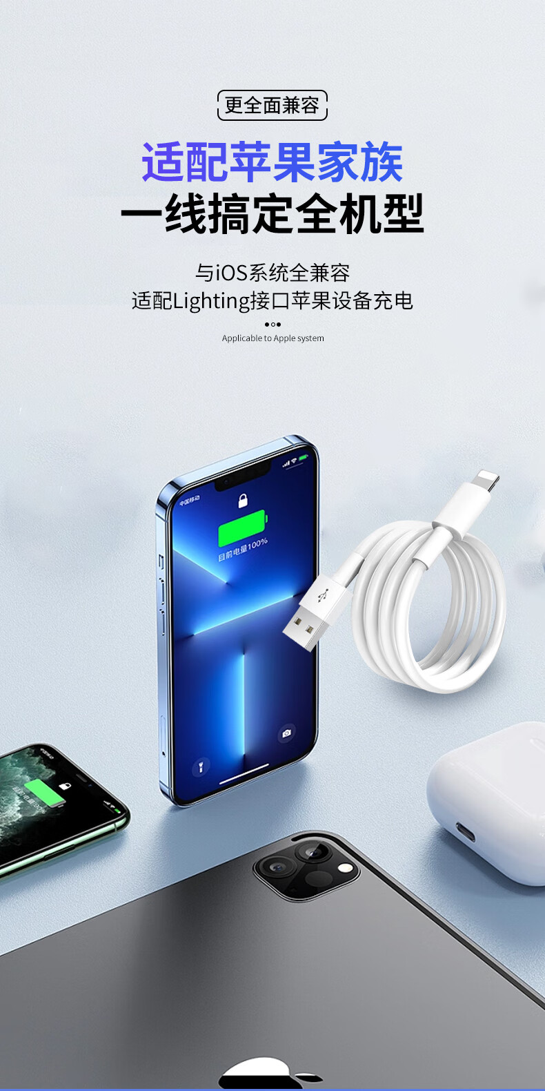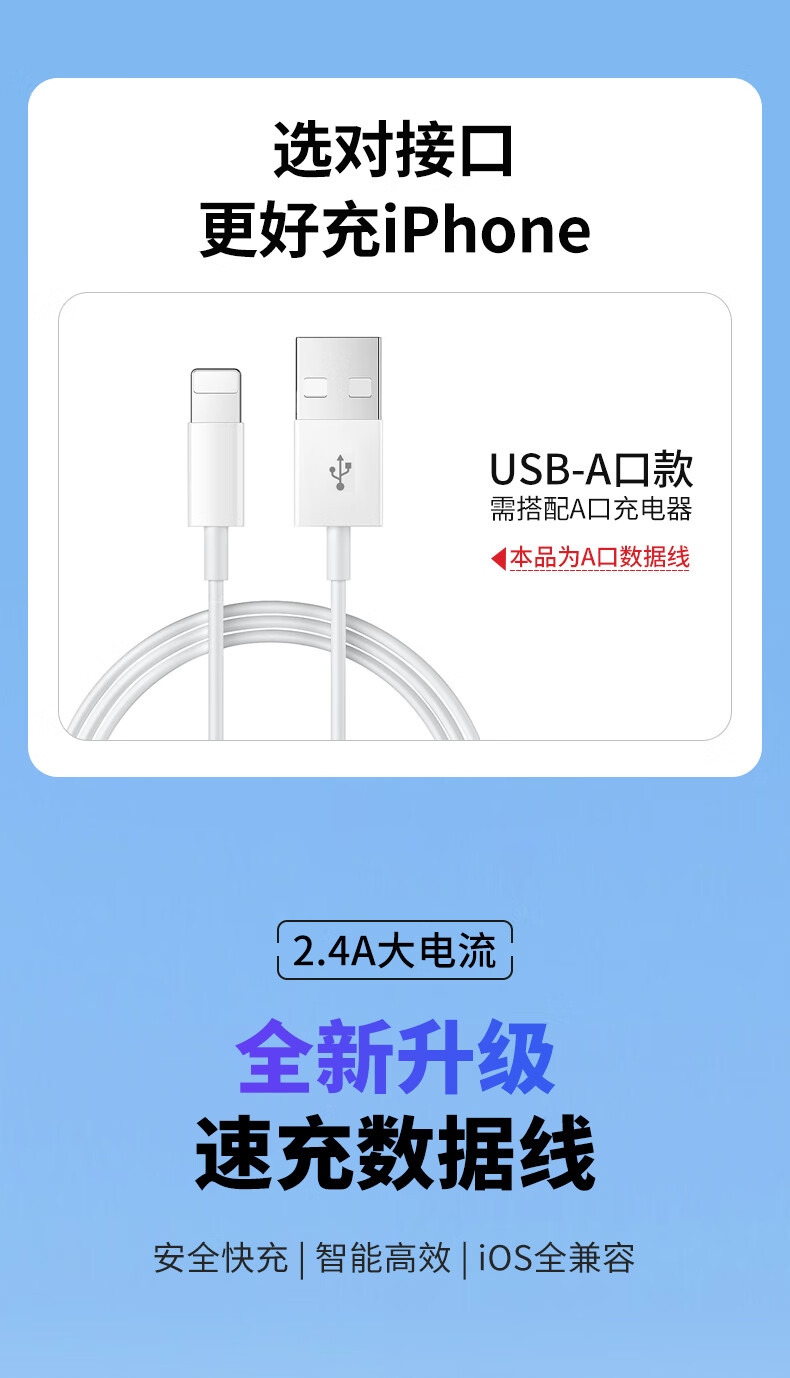 潮范适用苹果数据线快充USB充电线苹果14/13/12/11/x/8/7/6/PLUS手机蓝牙耳机充电器线