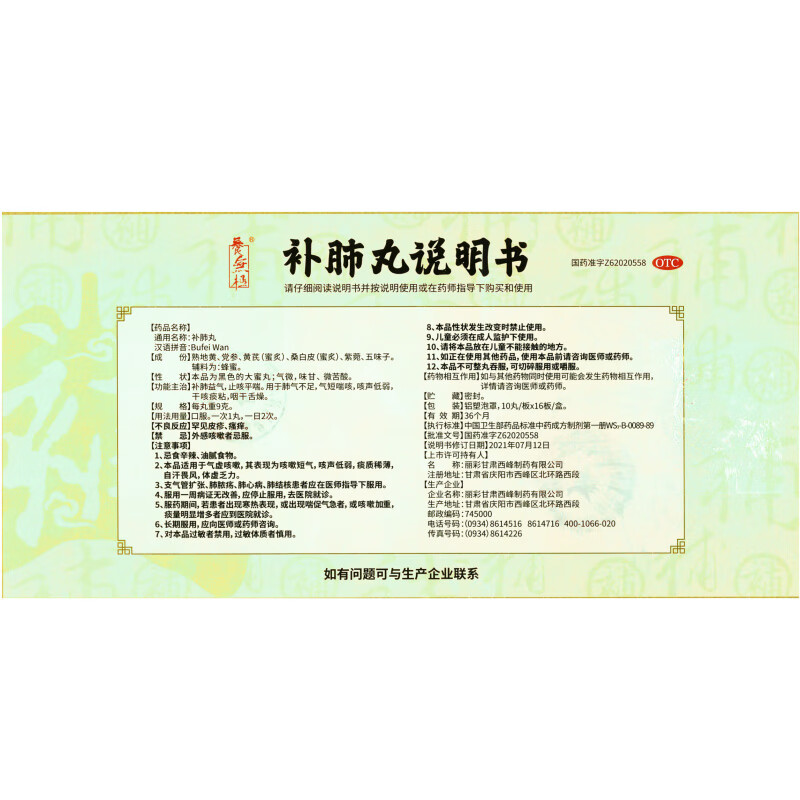 养无极补肺丸 9g*10丸*16板 气短咳喘干咳痰粘益肺止咳中药补肺丸