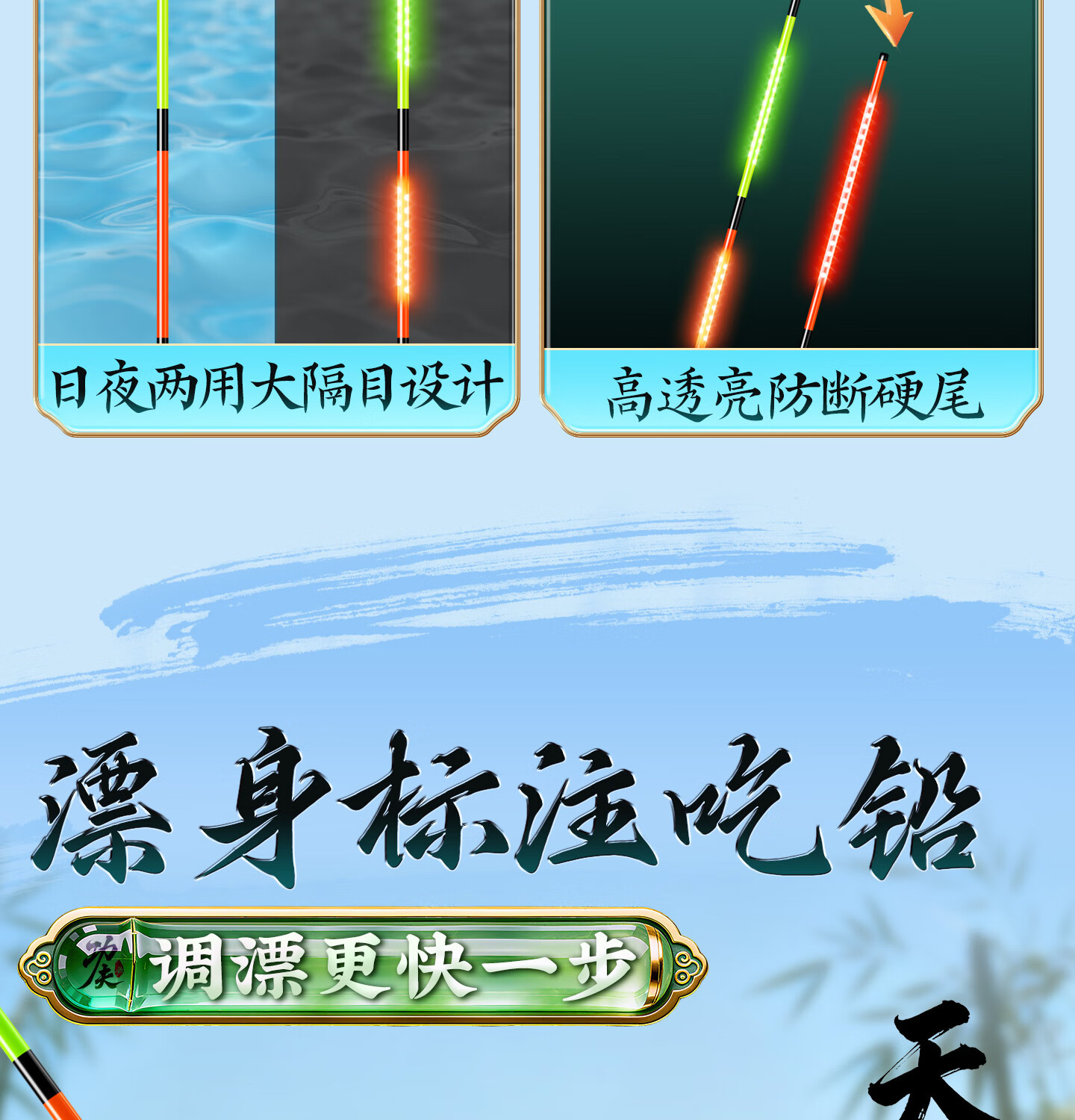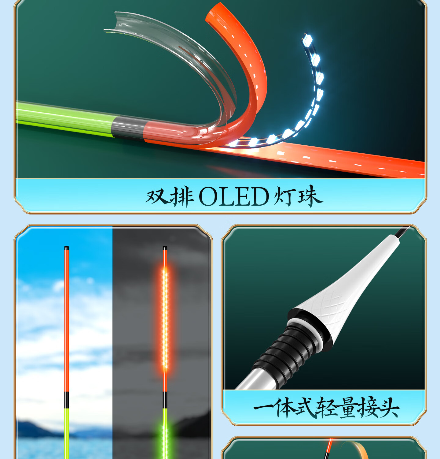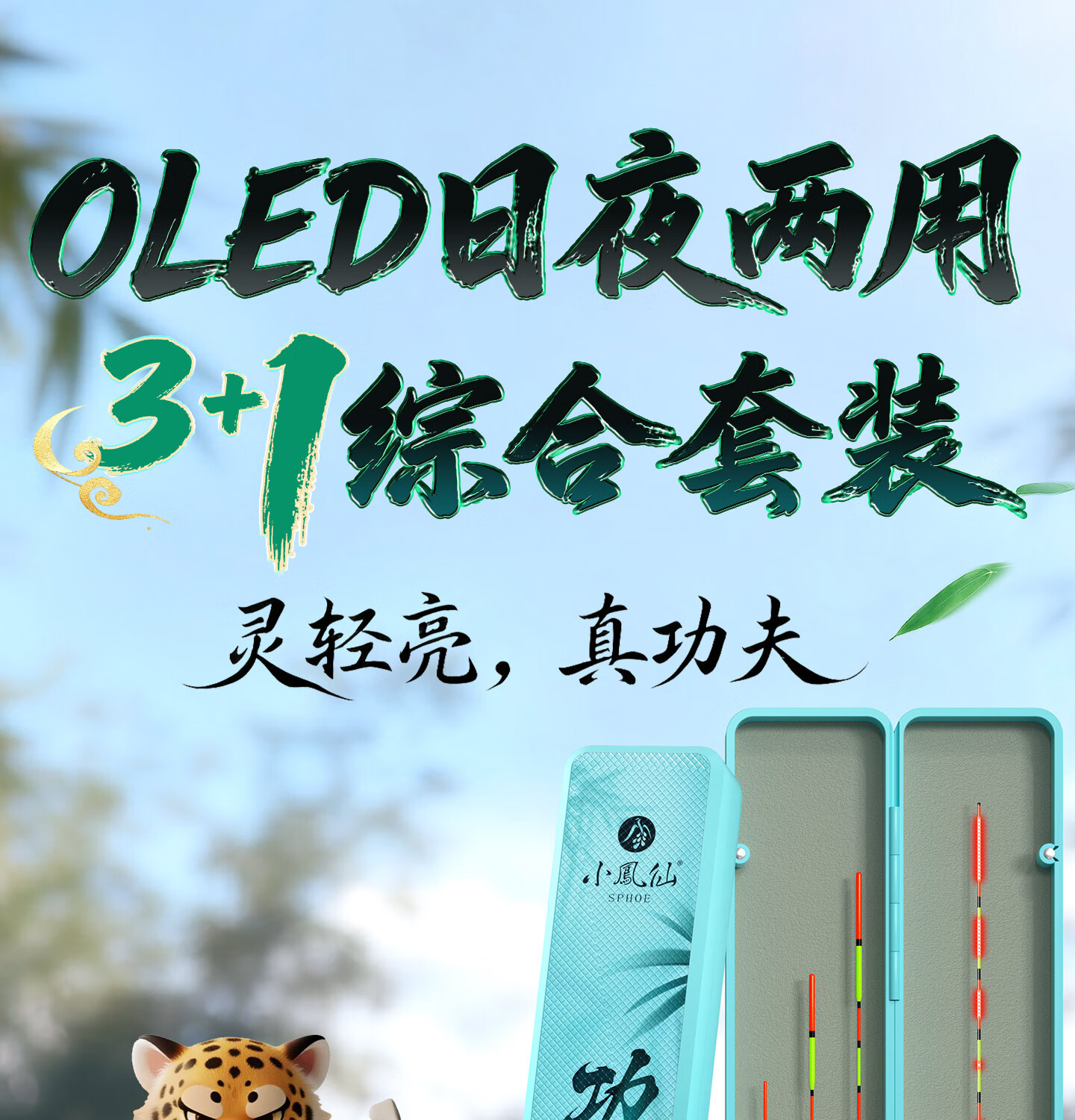 小凤仙OLED综合夜光漂套装全套咬钩变色日夜两用浮漂高灵敏醒目鲫鱼漂 3支白天漂+1支OLED咬钩变色漂 52.5cmABS漂盒+1粒316电池