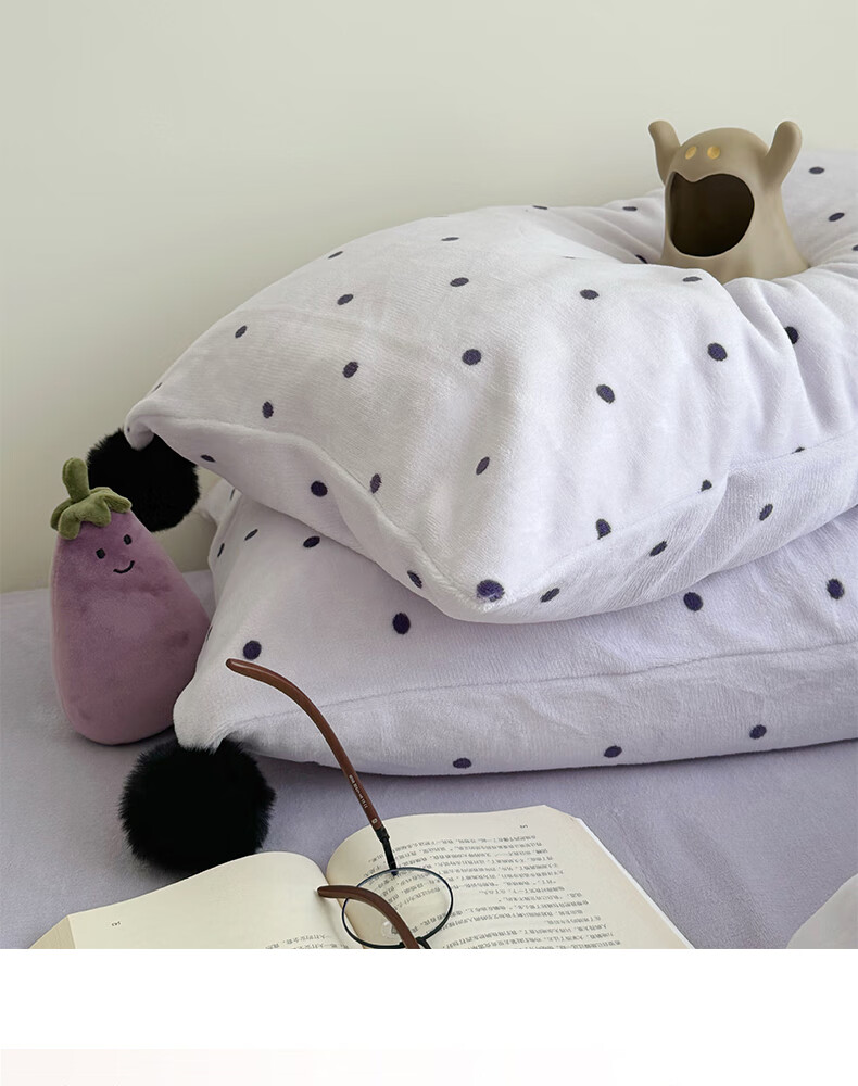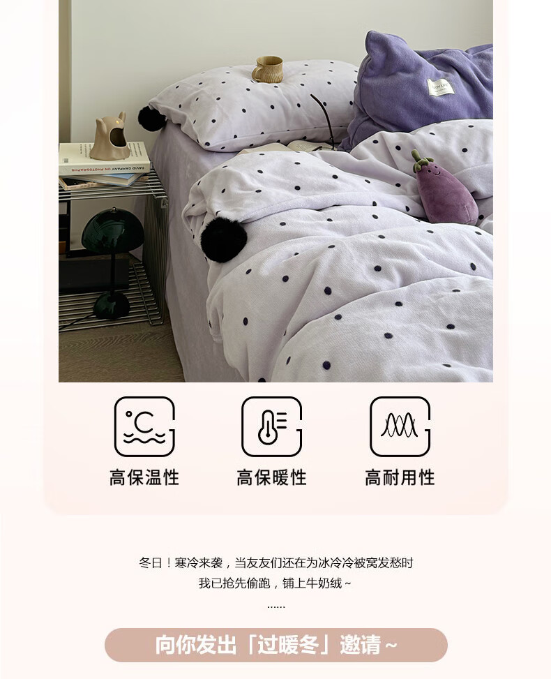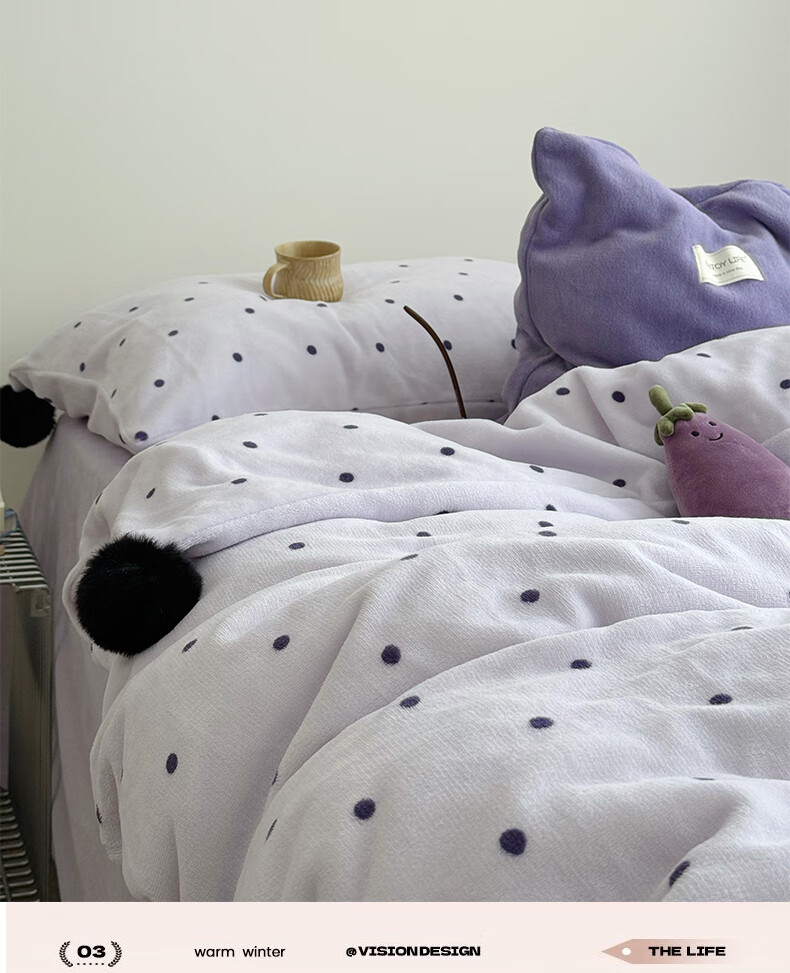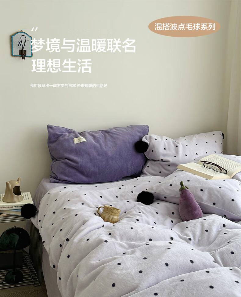 苏萱ins芋泥紫牛奶绒四件套冬天双面加绒珊瑚绒毛球被套床单床上用品4 波点紫-枕套混搭 2.0m 床单款 四件套-被套220x240cm